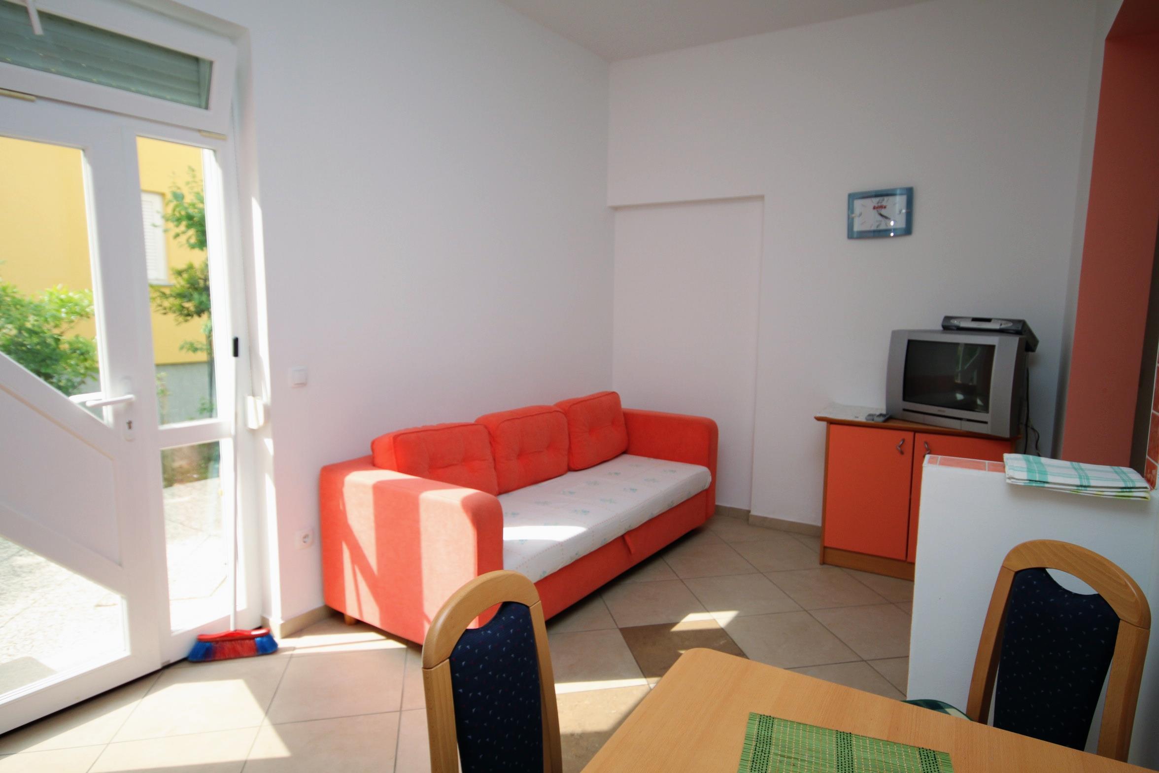 Studio flat can accommodate 3 guests. Beds are situated in 1 sleeping rooms, but also in the living room, within 29m2. Food can be prepared using barbecue which is shared with other guests too. This accommodation unit welcomes pets at an additional charge. There is no balcony or terrace in the reserved accommodation unit.