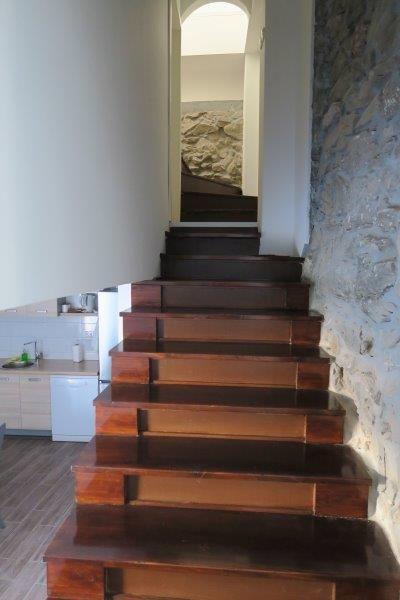 The three-storey house provides 95m² of living space, with each floor around 35m². The ground floor has an open kitchen, fully-equipped with a stove, oven, fridge, microwave, dishwasher and kettle. It has a nice counter with four modern bar stools, where you can enjoy meals. The kitchen has an adjoining living room with a flatscreen TV, stereo system and double sofa bed. The sofa measures 90 x 200cm and 180 x 200cm when pulled out. The ground floor also has a bathroom with a shower, WC, hairdryer and washbasin with a cupboard underneath and small secon bathroom is on the first floor. The second floor has a bedroom with a double bed (180 x 200cm) and up on the third floor there are two further little bedrooms, each with a bed measuring 140 x 200cm. All the rooms in the house have air conditioning. Internet access is available.