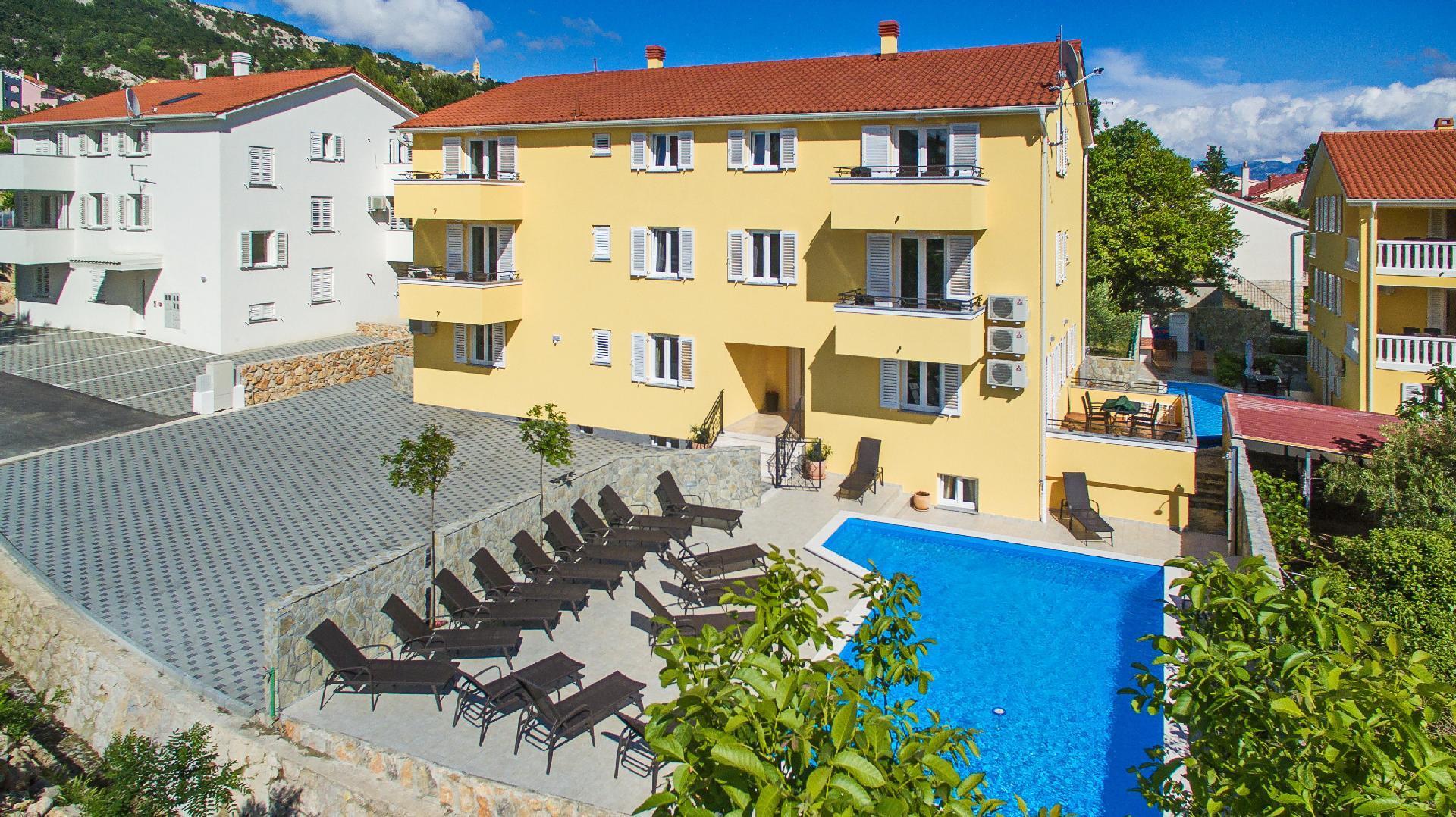 The cozy and modern apartment Flora 2 for up to 4 persons, is located in an apartment house near the beautiful beach and the center of Baska. It is located on the ground floor of the building and consists of a living room with a sofa bed, a bedroom with a double bed, a spacious bathroom with shower and toilet, a fully equipped kitchen with a dining area and a private terrace. The apartment is equipped with satellite TV, air conditioning, WiFi. In the shared garden there is a communal swimming pool, which is available to all guests.