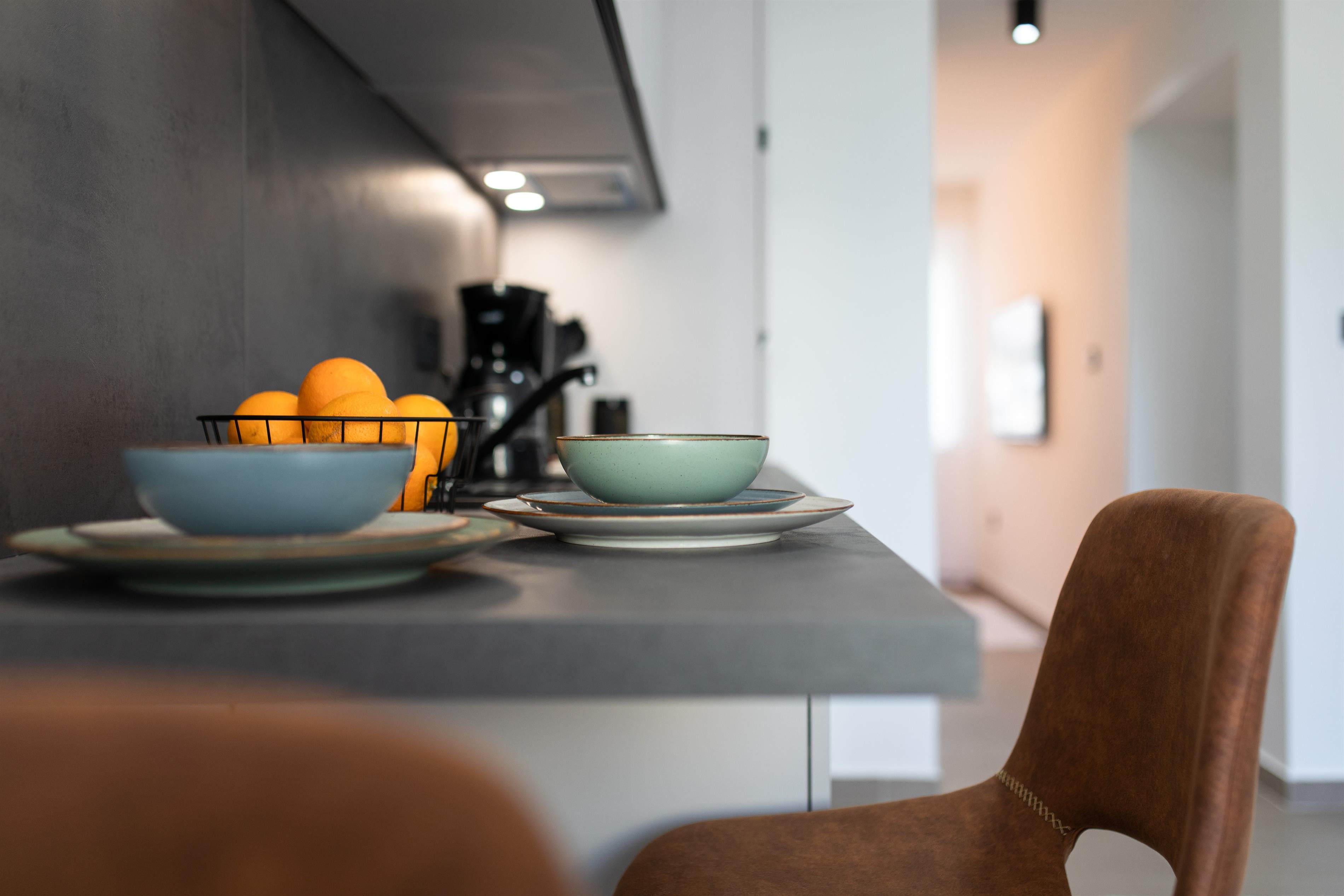 Kitchen (5 m2): Standard equipment: Refrigerator, Stove, Sink, Additional equipment: Dishwasher, Oven, On request: Water kettle, Coffee machine