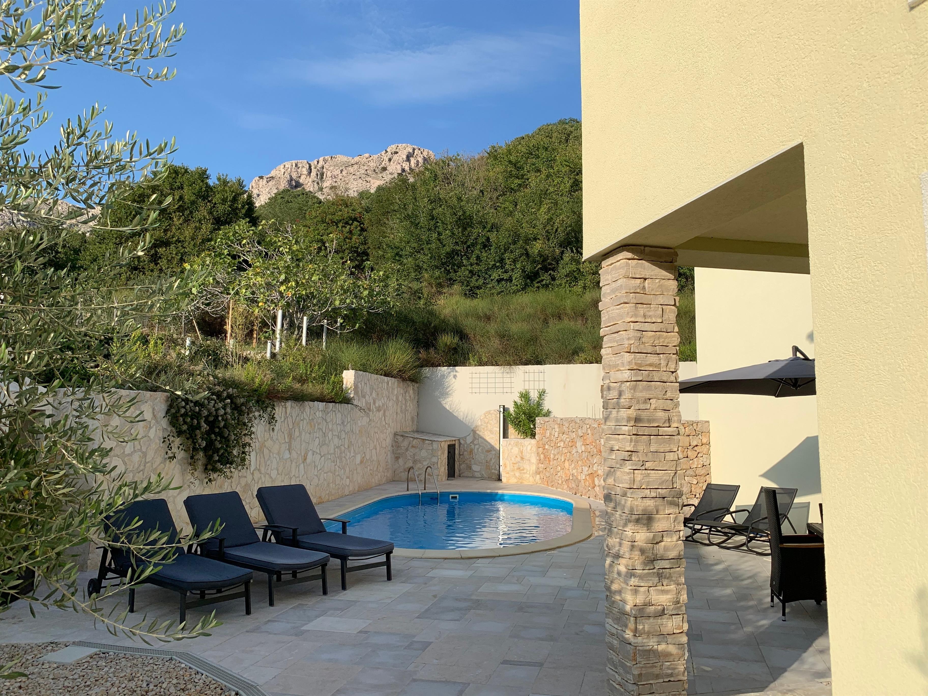 Das schöne, moderne und gemütliche Ferienhaus Baška Hills Summer House in dem Ort Baška/Jurandvor bietet Ihnen ein geräumiges sonnendurchflutetes Wohnzimmer mit offener Küche und Essbereich, 3 Schlafzimmer, 2 Bäder sowie ein Gäste WC. Der sichtgeschützte Garten bietet Ihnen viel Privatsphäre, bestens geeignet zum ungestörten Relaxen oder um sich im privaten großen Pool erfrischen zu können. Das Haus befindet sich in einer sehr ruhigen Lage am Ende einer Sackgasse, abseits von Hektik und Lärm.