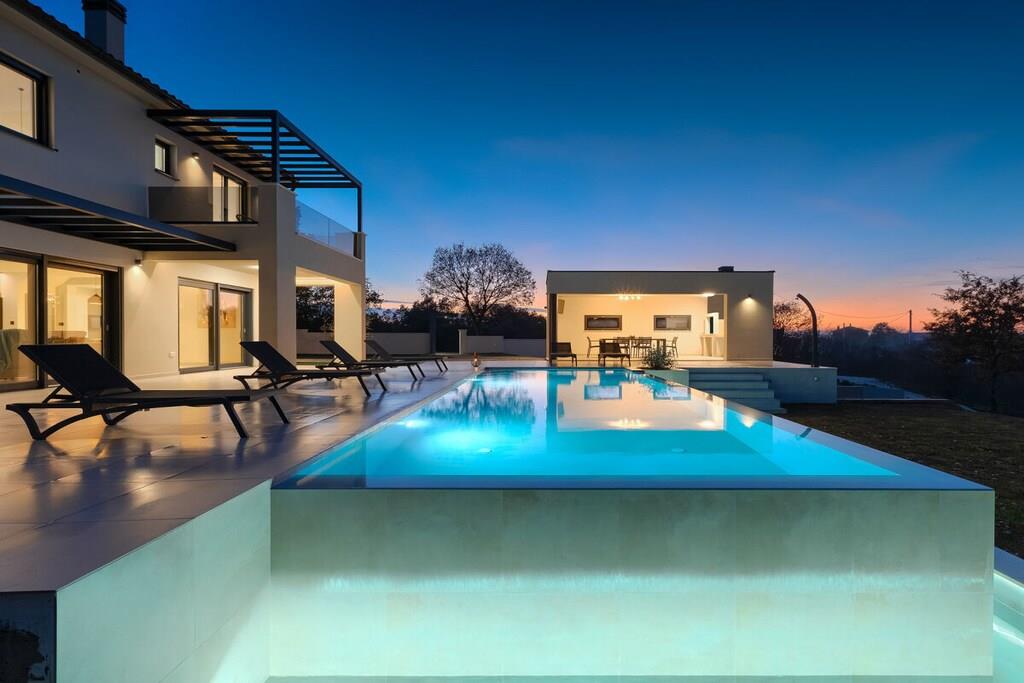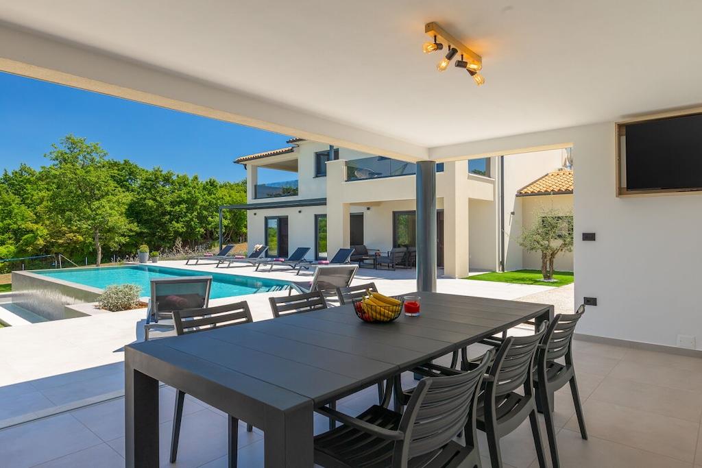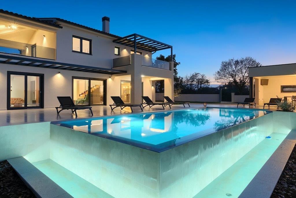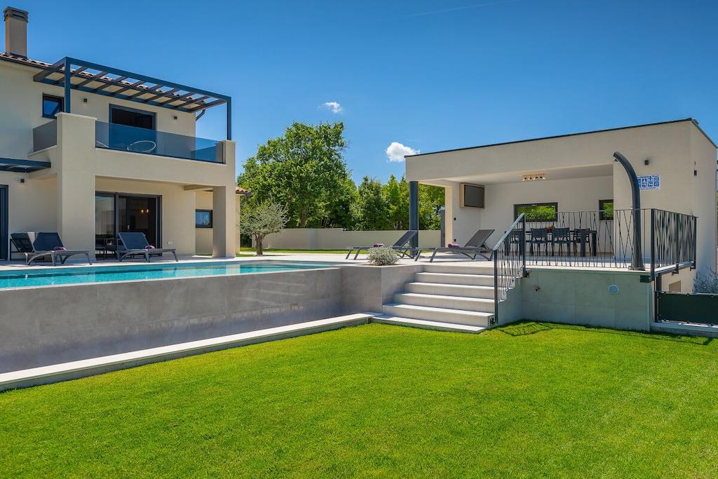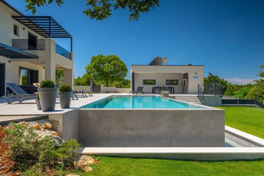 Die schöne neu erbaute Villa Duplich befindet sich in der ruhigen Stadt Šajini. Die Lage der Villa wird Ihnen völlige Ruhe und das Gefühl eines echten Urlaubs vermitteln. Es ist von Natur umgeben und nur 13 km vom Meer entfernt. Die Villa ist komplett mit Stil eingerichtet. Der Hof des Hauses ist mit einem großen Infinity-Pool (35 m2) dekoriert, der von einem weitläufigen Strand umgeben ist, einer Außenküche und einem Esszimmer sowie einem Ort zum Entspannen auf bequemen Liegestühlen, ideal, um den ersten Morgenkaffee am Pool zu trinken. Treten Sie ein in das wunderschön dekorierte Interieur, wo Sie alles finden, was Sie für einen makellosen Urlaub brauchen. Im Erdgeschoss der Villa befindet sich ein offenes Wohnzimmer, ein Esszimmer, eine voll ausgestattete Küche mit Bar, eine Toilette und ein Schlafzimmer mit Badezimmer. Im Obergeschoss befinden sich zwei komfortable Schlafzimmer und en-suite Badezimmer. Jedes Zimmer hat Zugang zu einer eigenen Terrasse, auf der Sie den Tag sicherlich lieber beginnen oder ausklingen lassen werden, wenn Sie die Harmonie der Natur genießen. Das Haus und der Garten sind mit Wi-Fi abgedeckt. Neben dem Haus befindet sich ein eingezäunter Parkplatz.