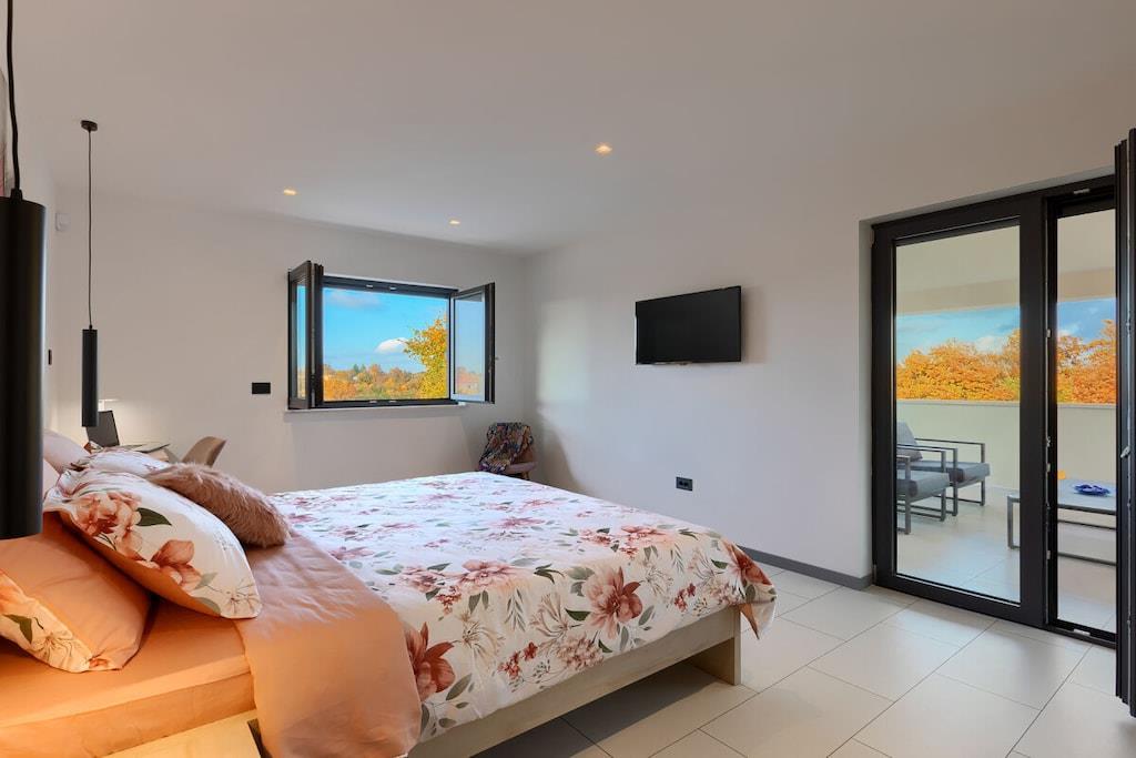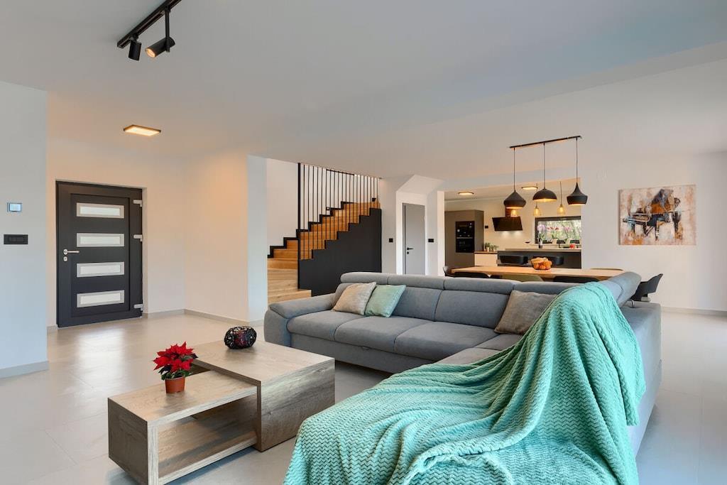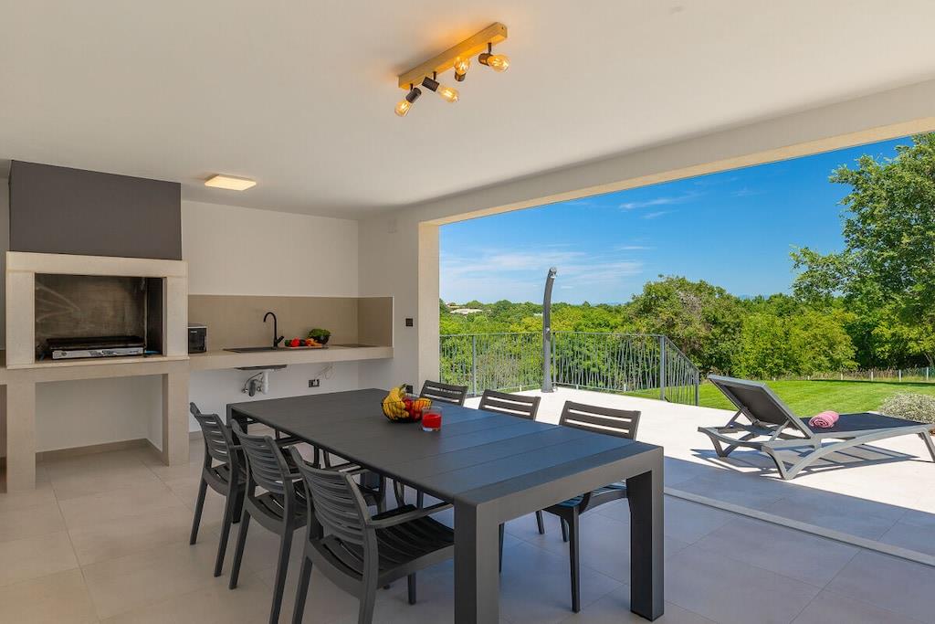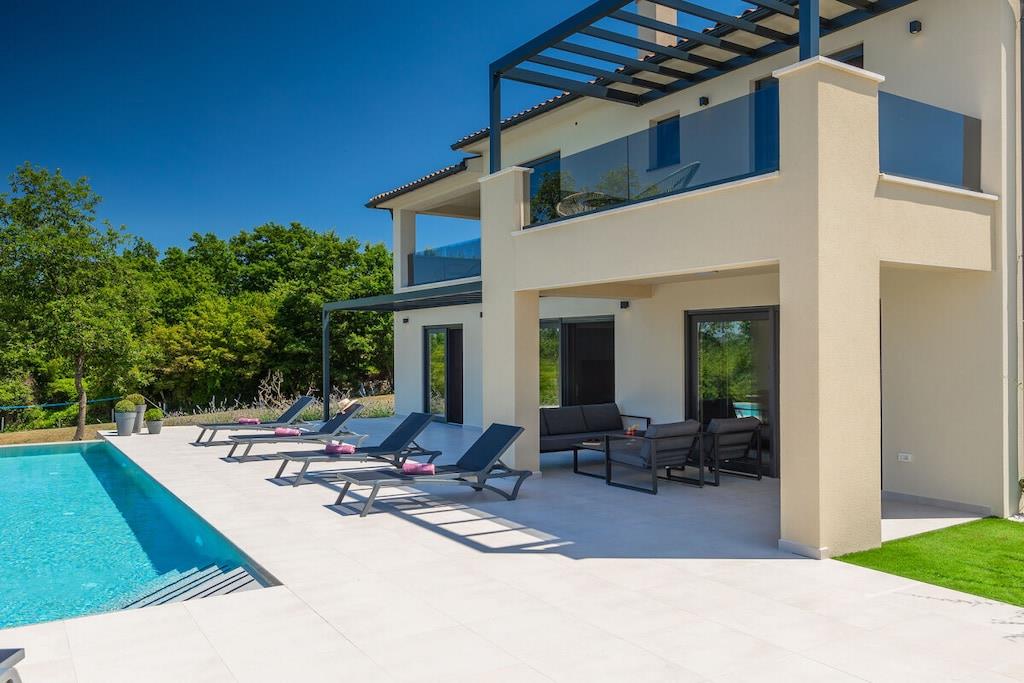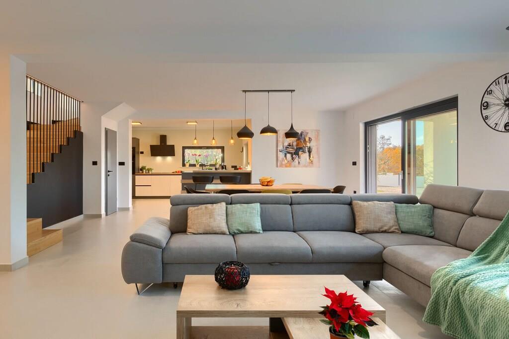 Die schöne neu erbaute Villa Duplich befindet sich in der ruhigen Stadt Šajini. Die Lage der Villa wird Ihnen völlige Ruhe und das Gefühl eines echten Urlaubs vermitteln. Es ist von Natur umgeben und nur 13 km vom Meer entfernt. Die Villa ist komplett mit Stil eingerichtet. Der Hof des Hauses ist mit einem großen Infinity-Pool (35 m2) dekoriert, der von einem weitläufigen Strand umgeben ist, einer Außenküche und einem Esszimmer sowie einem Ort zum Entspannen auf bequemen Liegestühlen, ideal, um den ersten Morgenkaffee am Pool zu trinken. Treten Sie ein in das wunderschön dekorierte Interieur, wo Sie alles finden, was Sie für einen makellosen Urlaub brauchen. Im Erdgeschoss der Villa befindet sich ein offenes Wohnzimmer, ein Esszimmer, eine voll ausgestattete Küche mit Bar, eine Toilette und ein Schlafzimmer mit Badezimmer. Im Obergeschoss befinden sich zwei komfortable Schlafzimmer und en-suite Badezimmer. Jedes Zimmer hat Zugang zu einer eigenen Terrasse, auf der Sie den Tag sicherlich lieber beginnen oder ausklingen lassen werden, wenn Sie die Harmonie der Natur genießen. Das Haus und der Garten sind mit Wi-Fi abgedeckt. Neben dem Haus befindet sich ein eingezäunter Parkplatz.