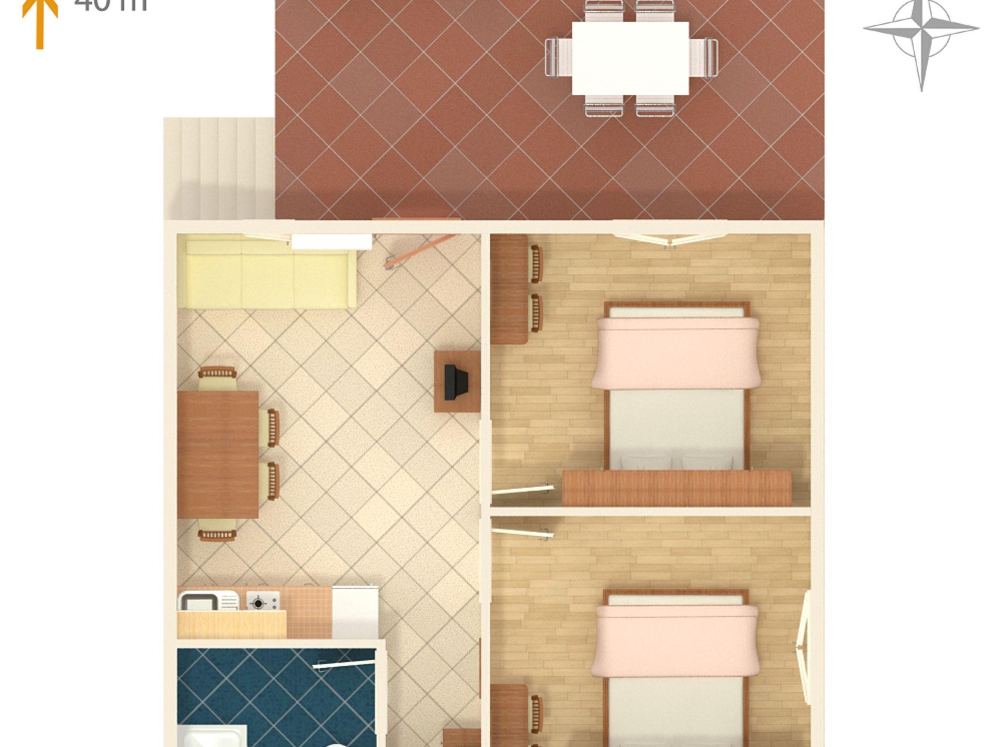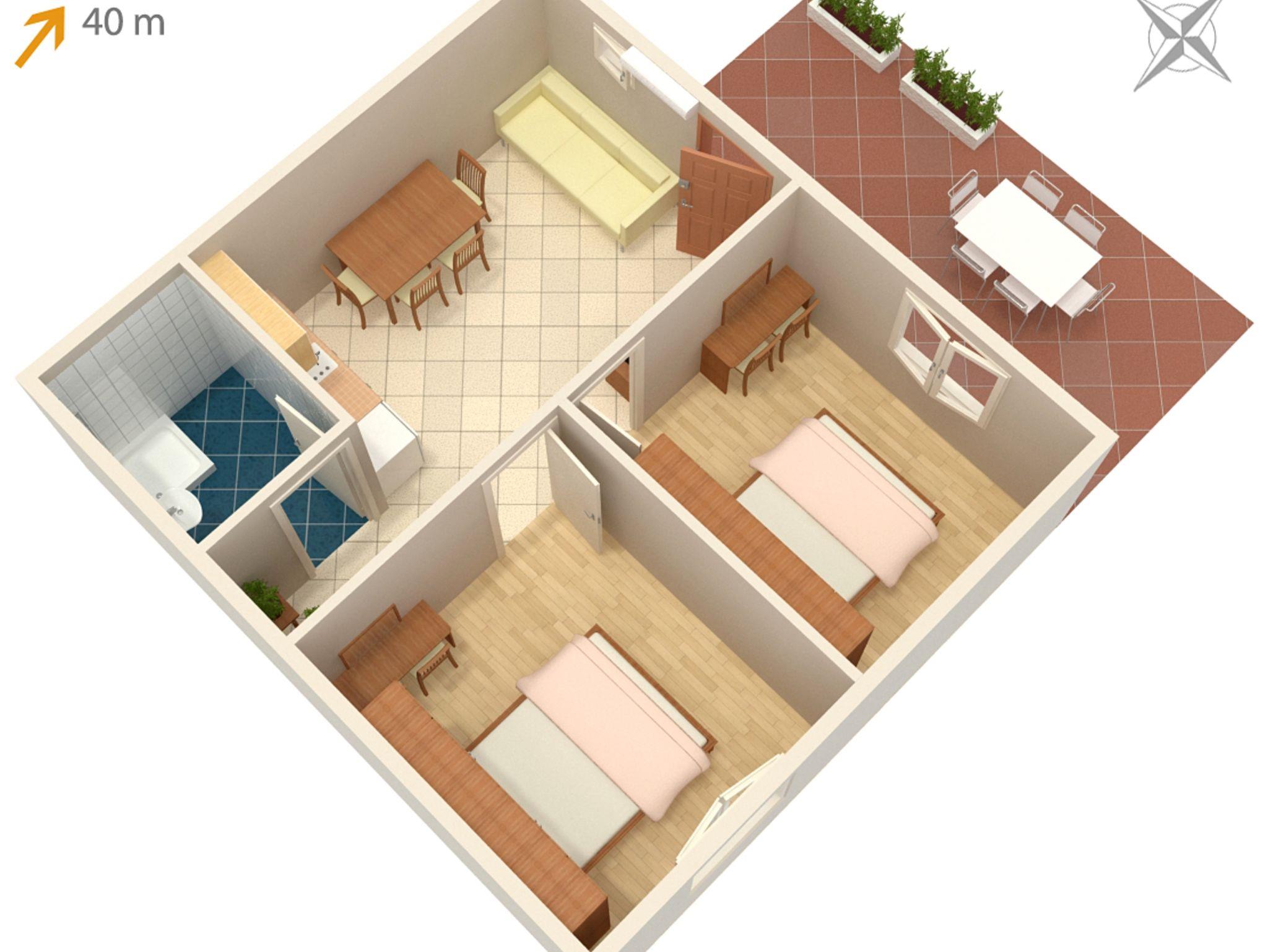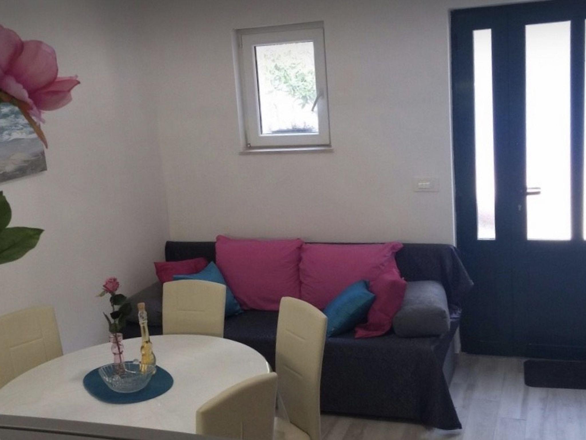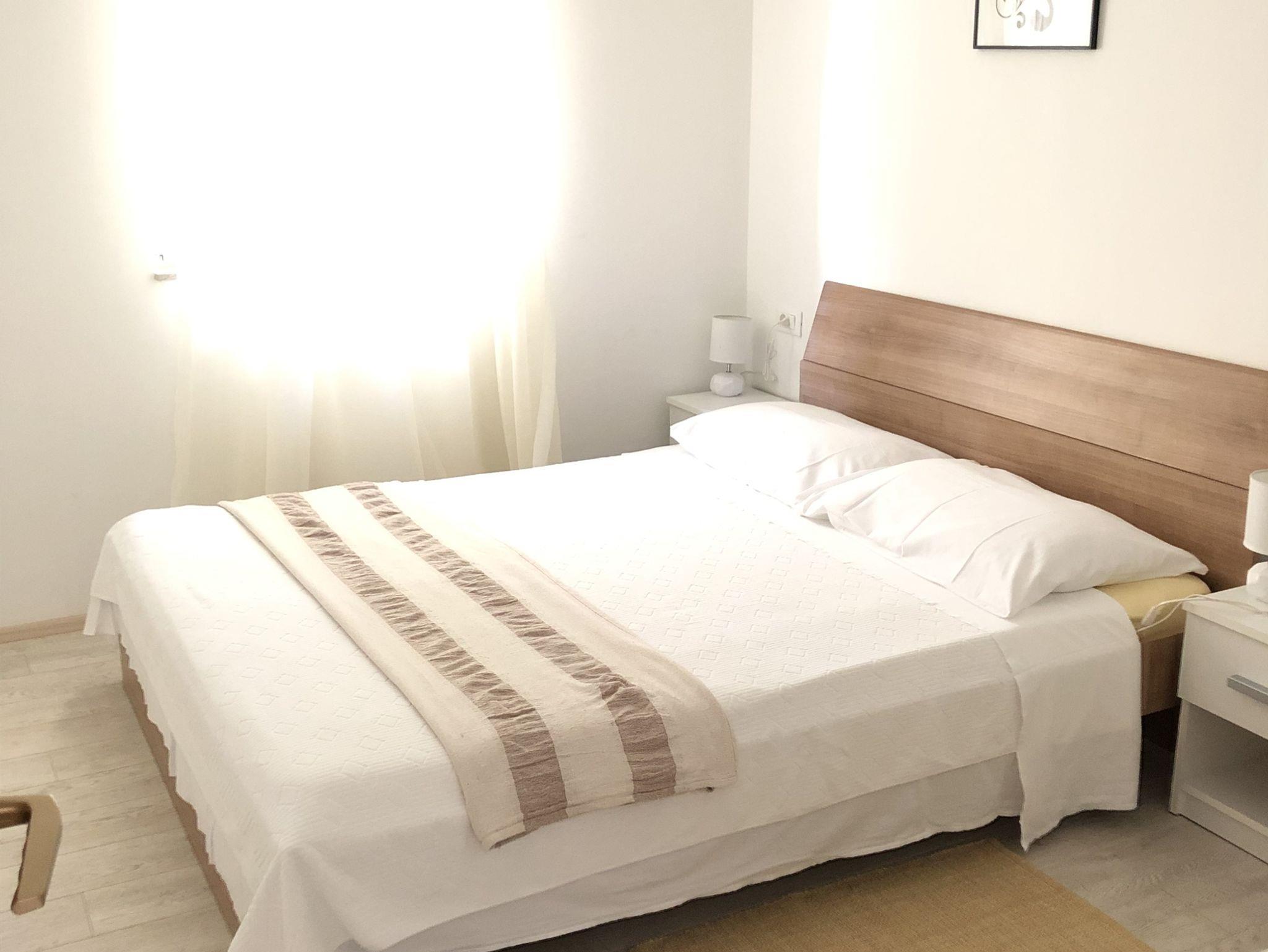 Ferienwohnung bietet Platz für 4 Gäste. Die Betten sind in Schlafzimmern, die es 2 gibt, innerhalb einer Gesamtfläche von 41m2, angeordnet. Die Gäste haben eine eigene Terrasse zur Verfügung, auf der sie in warmen Sommernächten genießen können. Das Apartment bietet Meerblick. Es ist erlaubt, Speisen auf dem Gemeinschafts-Grill vorzubereiten. IM PREIS INBEGRIFFEN: Kurtaxe, Endreinigung, Klimatisierung, Parkplatz, Internet, Kinderbett, Bügeleisen, Föhn. VERBINDLICHE ZUSÄTZLICHE KOSTEN: Aufzahlung für Kurzaufenthalte (prozentualer Zuschlag pro Nächtigungsanzahl: 30% - 1, 20% - 2, 10% - 3). Die Verfügbarkeit zusätzlicher Dienstleistungen in Ihrem reservierten Termin und die Preise derselben (falls nicht aufgeführt) müssen im Voraus überprüft werden. Zusätzliche Dienstleistungen die in der Zahlungsaufforderung nicht aufgeführt sind werden direkt beim Vermieter bezahlt, angenommen der Gast nutzt auch diese.