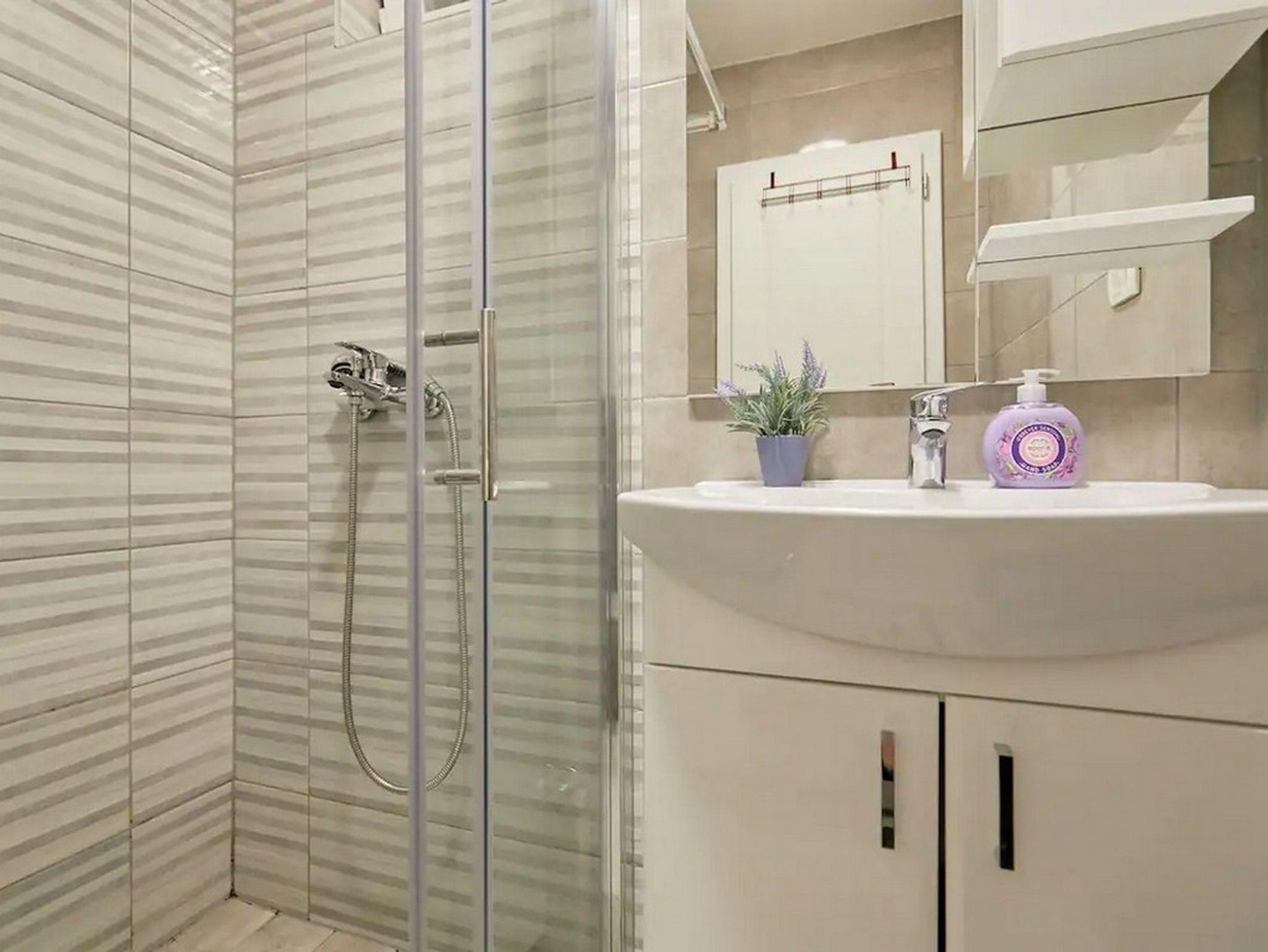 Ferienwohnung bietet Platz für 2 Gäste. Die Betten sind in Schlafzimmern, die es 1 gibt, innerhalb einer Gesamtfläche von 44m2, angeordnet. Die Gäste haben eine eigene Terrasse zur Verfügung, auf der sie in warmen Sommernächten genießen können. Das Apartment bietet Meerblick. Es ist erlaubt, Speisen auf dem Gemeinschafts-Grill vorzubereiten. IM PREIS INBEGRIFFEN: Kurtaxe, Endreinigung, Parkplatz, Internet, Kinderbett, Bügeleisen, Bügelbrett, Föhn. Die Verfügbarkeit zusätzlicher Dienstleistungen in Ihrem reservierten Termin und die Preise derselben (falls nicht aufgeführt) müssen im Voraus überprüft werden. Zusätzliche Dienstleistungen die in der Zahlungsaufforderung nicht aufgeführt sind werden direkt beim Vermieter bezahlt, angenommen der Gast nutzt auch diese.