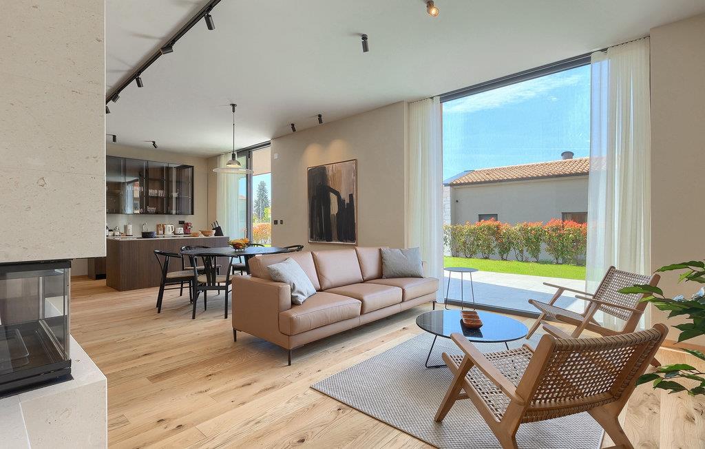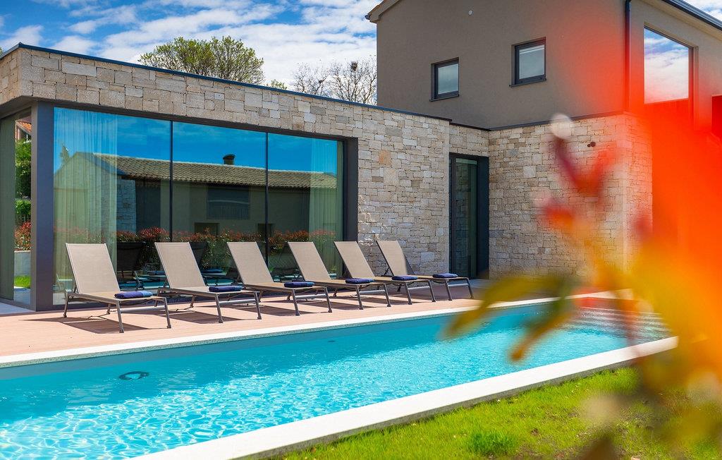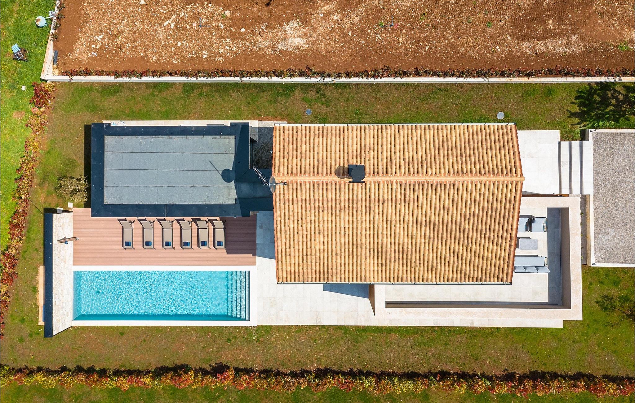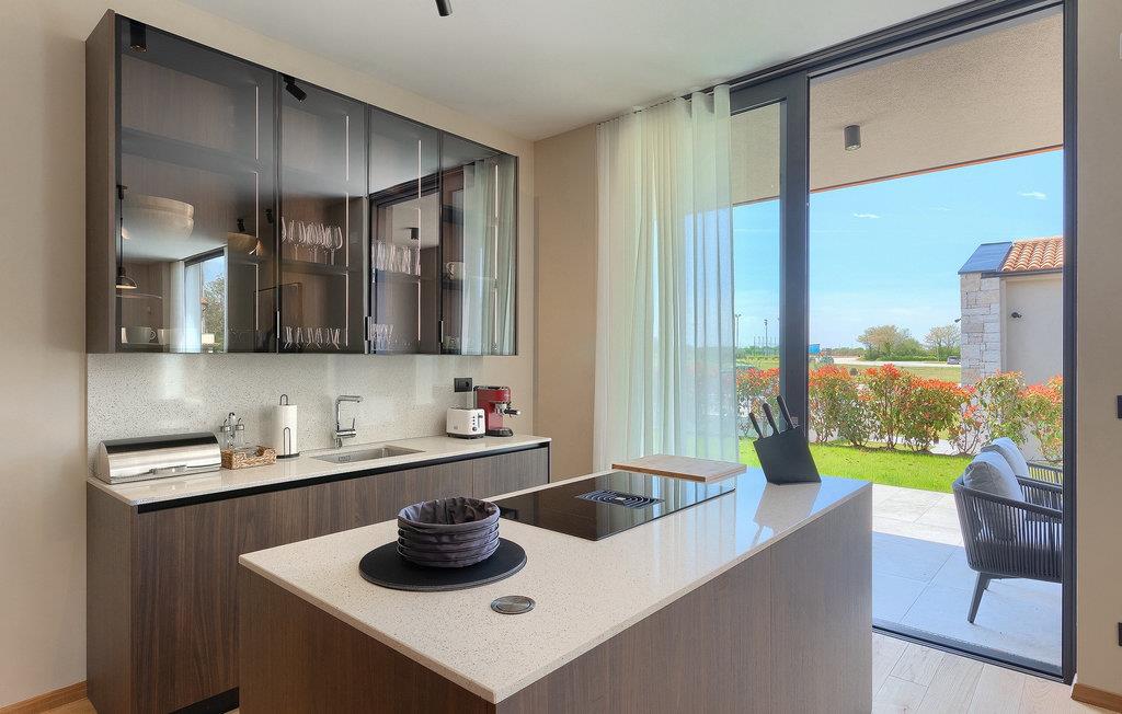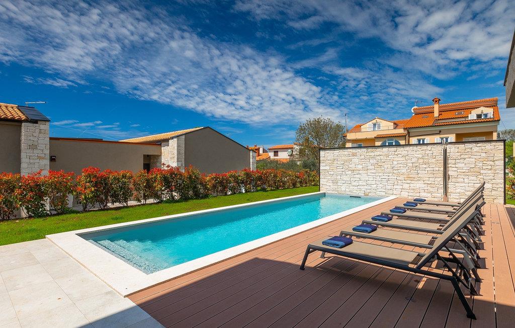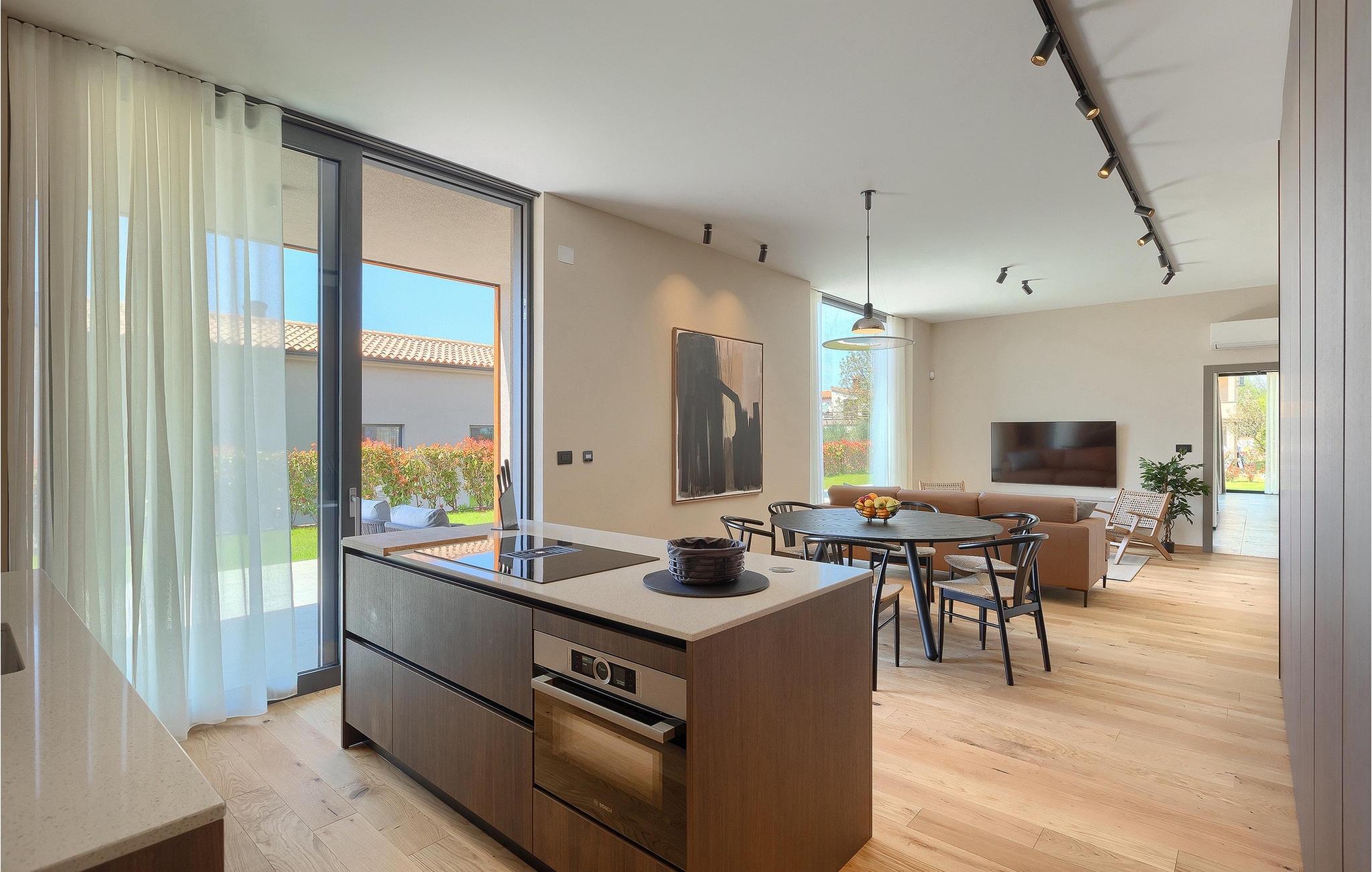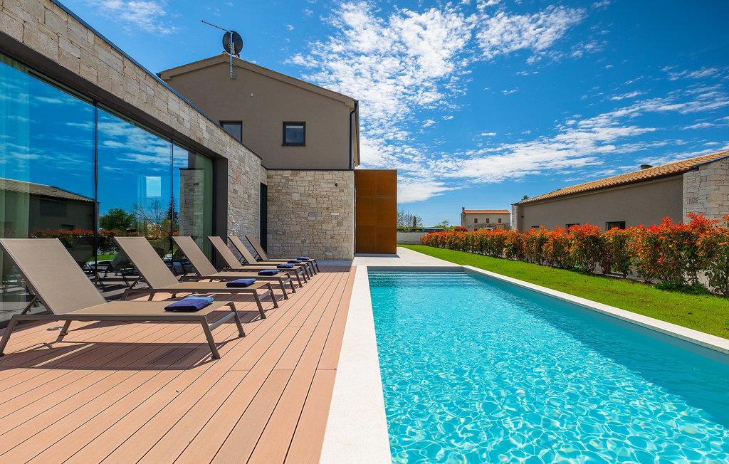 Wenn Sie von einem ruhigen Familienurlaub in der istrischen Landschaft unweit der Küste träumen, dann ist die Villa Palmeta die ideale Wahl für Sie! Diese ausgezeichnete moderne Villa befindet sich in Bale in der Nähe von Rovinj und bietet Platz für bis zu 8 Personen. Im Außenbereich steht Ihnen ein privater Pool zur Verfügung, bei dem Sie sonnige Tage mit Ihrem Lieblingsgetränk in der Hand verbringen werden. Um sich vollkommen zu entspannen, stehen neben dem Pool Liegestühle und Sonnenschirme bereit. Wir sind sicher, dass Sie angenehme Sommerabende mit Familie und Freunden auf der überdachten Terrasse genießen werden, wo Ihnen eine Sommerküche mit Esstisch zur Verfügung steht, an der Sie sich entspannen können, während Sie die romantische Kulisse unter dem Sternenhimmel genießen. Das Innere dieser Villa wird Sie sicherlich begeistern. Eine harmonische Kombination aus modernem Design und natürlichen Materialien zieht sich durch den Innenbereich der Villa. Im Erdgeschoss steht Ihnen ein geräumiges Wohnzimmer mit Blick auf die Terrasse und den Pool zur Verfügung, sowie ein Esszimmer und eine voll ausgestattete Küche. Dank der großen Glasscheiben im Wohnzimmer ist der Innenraum wunderbar mit der Umgebung verbunden. Im Erdgeschoss befindet sich außerdem ein Schlafzimmer mit eigenem Bad und im Obergeschoss finden Sie zwei weitere moderne Schlafzimmer mit elegant gestalteten Bädern. Darüber hinaus können Sie sich im Obergeschoss auf der Galerie entspannen oder auf der Terrasse mit Blick auf die wunderschöne Umgebung eine Tasse Morgenkaffee genießen. Bale ist ein kleiner Ort im kontinentalen Teil Istriens in der Nähe von Rovinj. Eine gute Lage für Tagesausflüge entweder in Richtung Küste oder weiter ins Landesinnere. Es gibt viele Möglichkeiten, Strände und Buchten zu erkunden, und von den Städten aus sollten Sie unbedingt Rovinj und Pula besuchen. In Rovinj werden Sie von den farbenfrohen Häusern und der Kirche St. Euphemia an der Spitze der Altstadt begeistert sein. Besuchen Sie in Pula zahlreiche Sehenswürdigkeiten und wenn Sie es schaffen, besuchen Sie unbedingt ein Konzert in der Pula Arena. Im inneren Teil Istriens finden Sie viele Tavernen und Restaurants mit istrischen Köstlichkeiten, und es gibt auch zahlreiche Weingüter, in denen Sie lokale Weine probieren können.