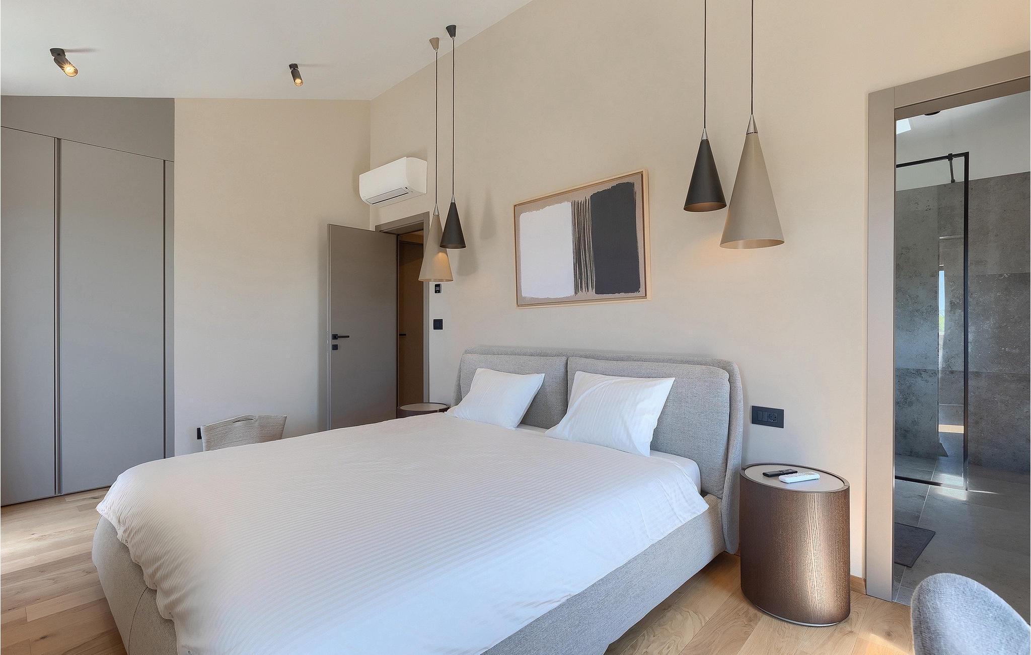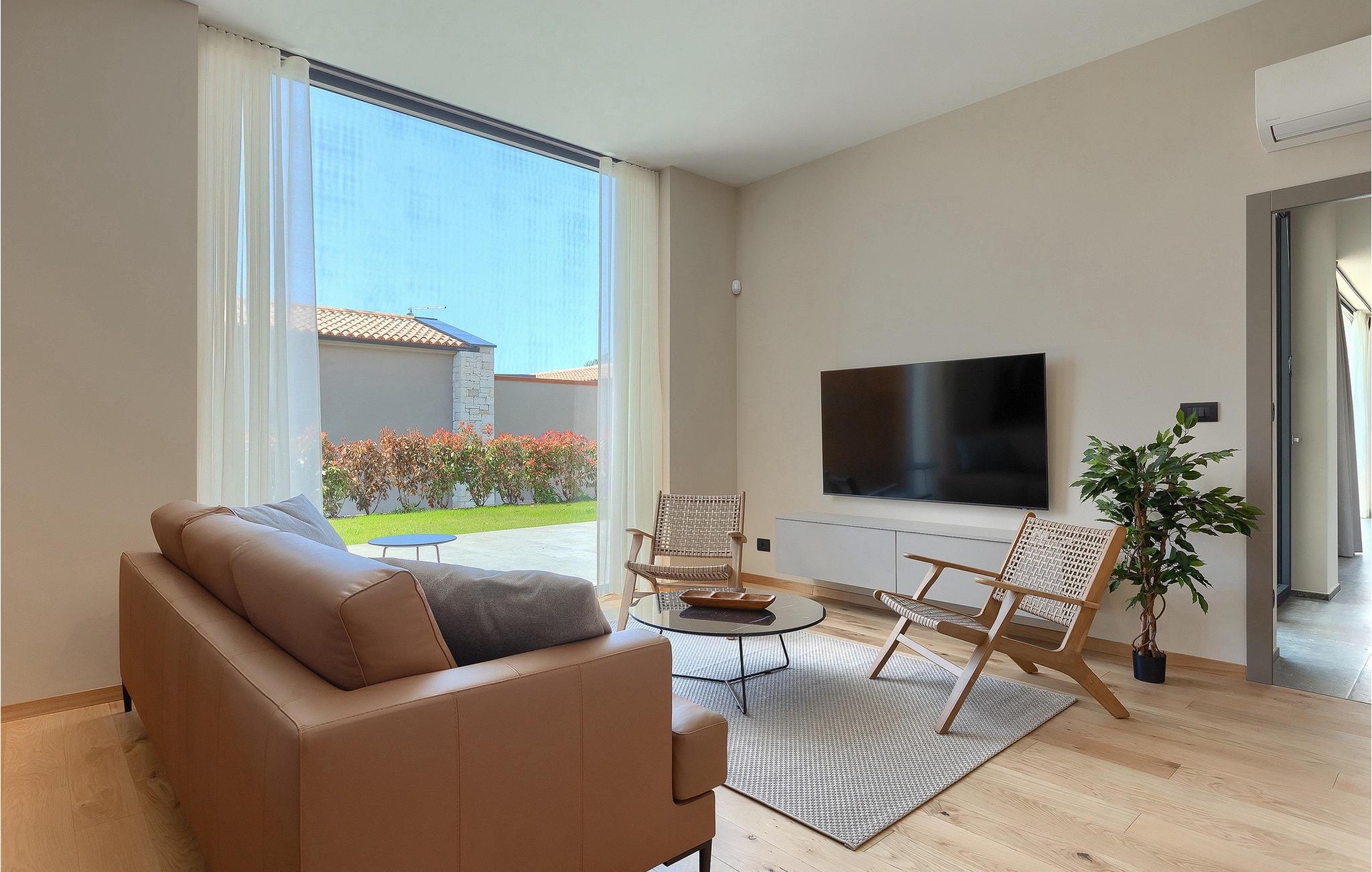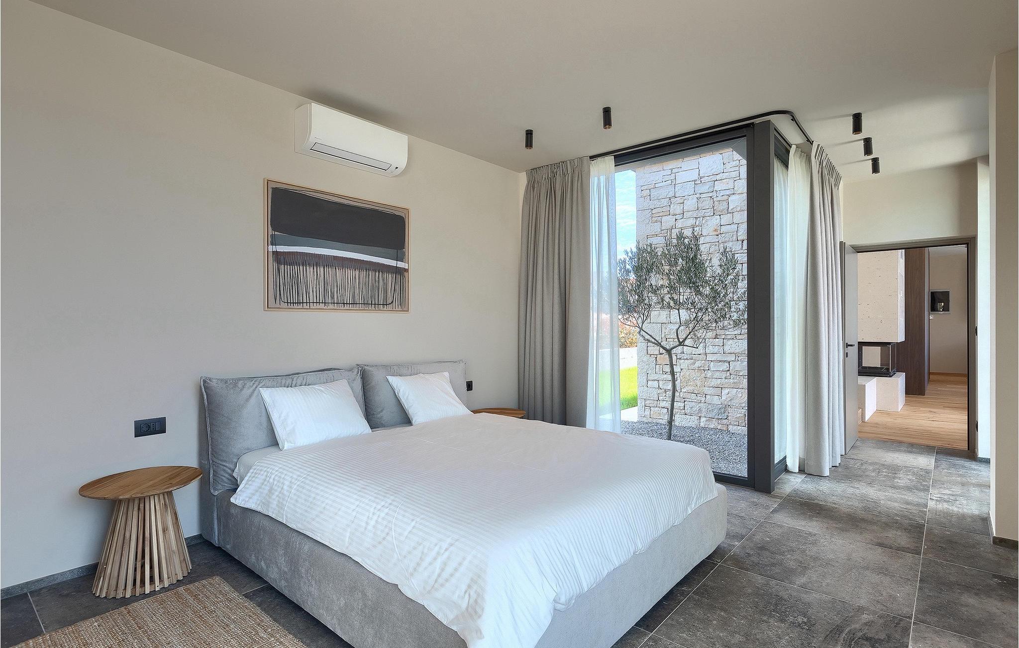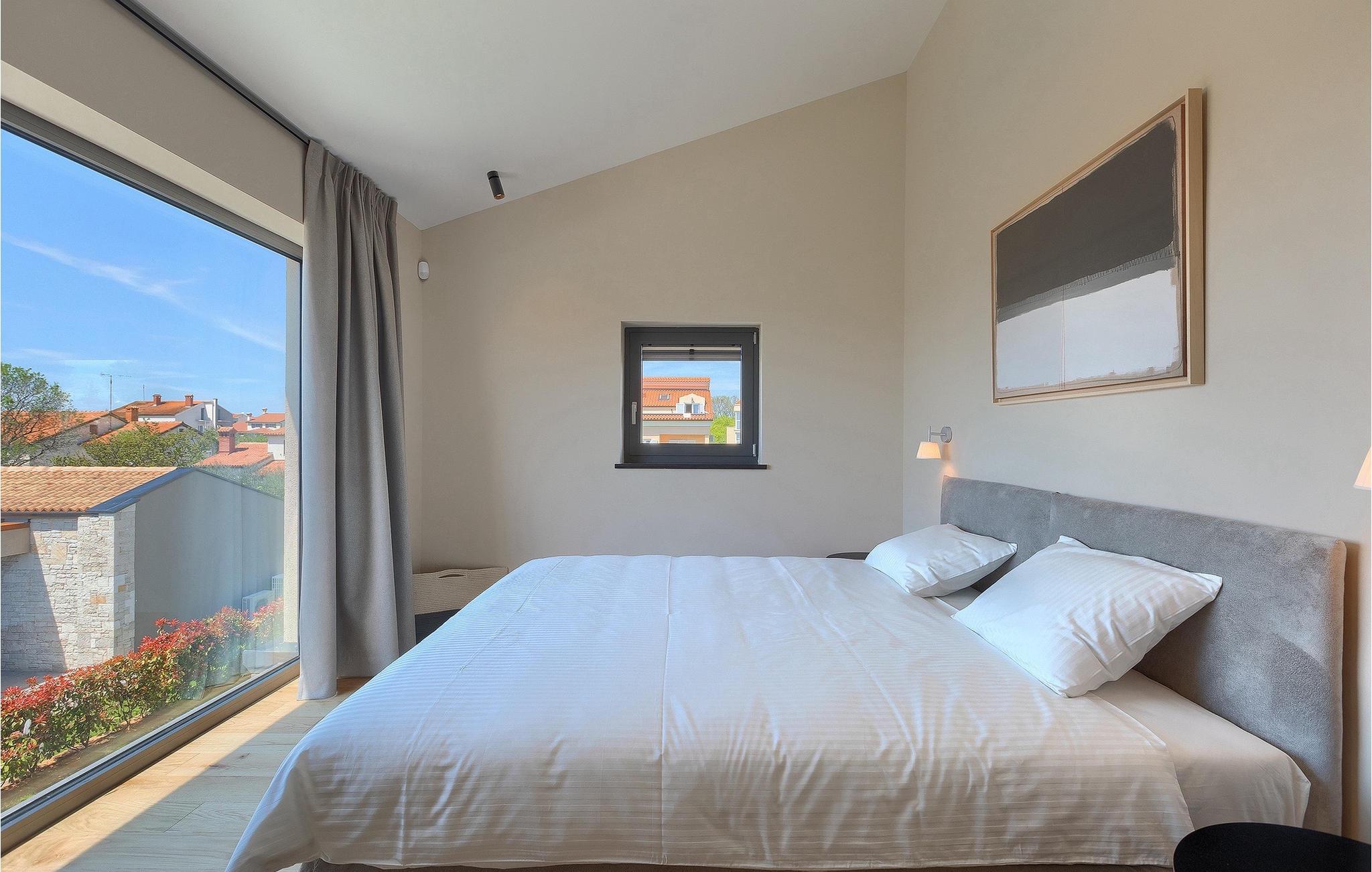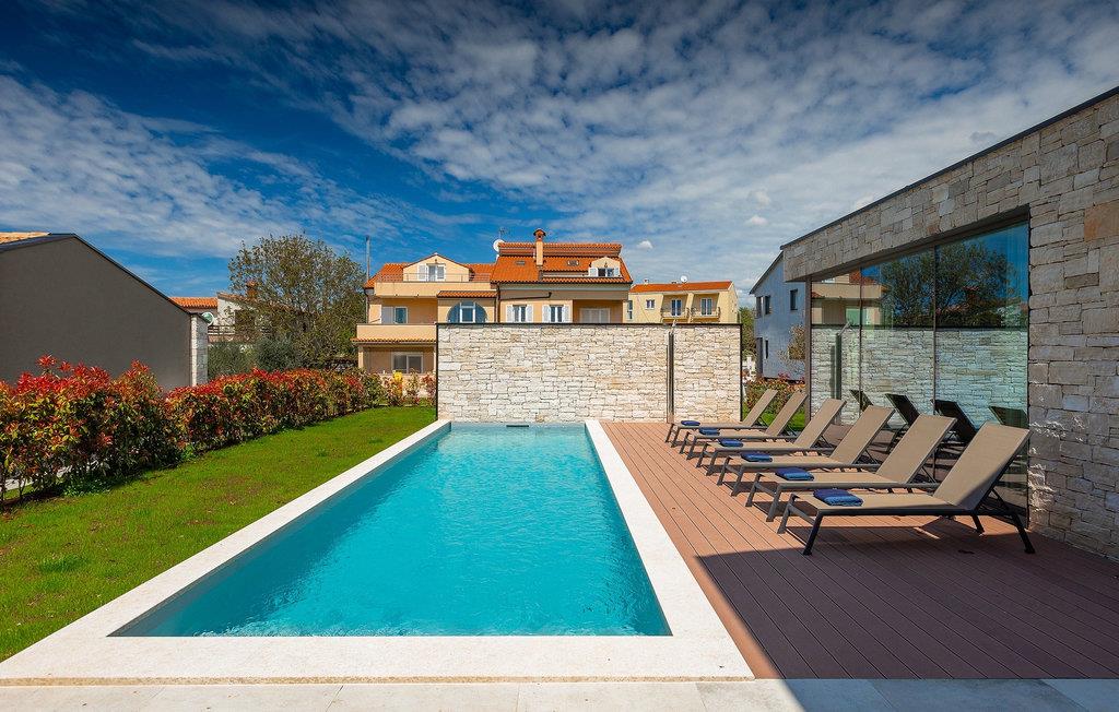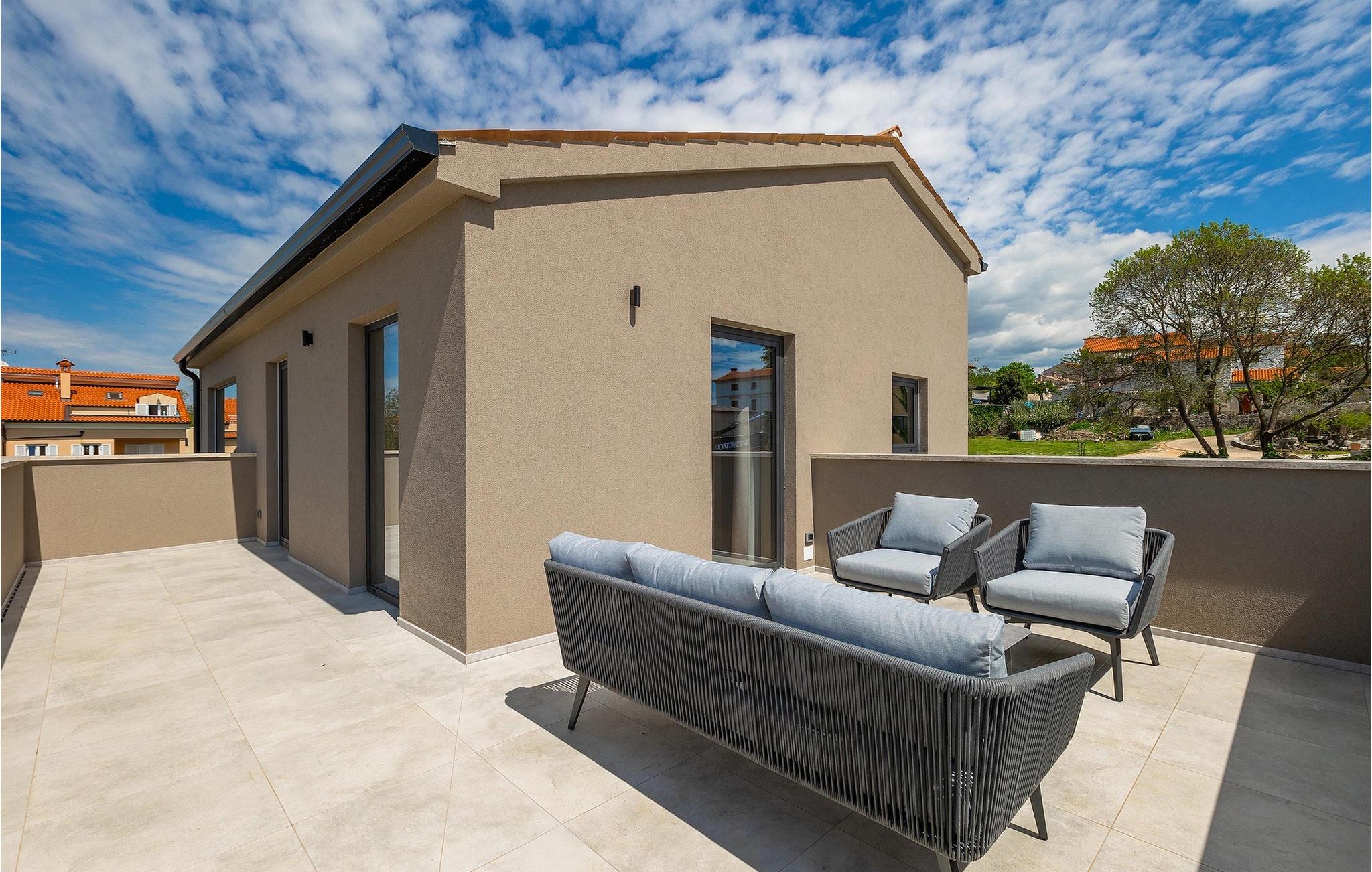Wenn Sie von einem ruhigen Familienurlaub in der istrischen Landschaft unweit der Küste träumen, dann ist die Villa Palmeta die ideale Wahl für Sie! Diese ausgezeichnete moderne Villa befindet sich in Bale in der Nähe von Rovinj und bietet Platz für bis zu 8 Personen. Im Außenbereich steht Ihnen ein privater Pool zur Verfügung, bei dem Sie sonnige Tage mit Ihrem Lieblingsgetränk in der Hand verbringen werden. Um sich vollkommen zu entspannen, stehen neben dem Pool Liegestühle und Sonnenschirme bereit. Wir sind sicher, dass Sie angenehme Sommerabende mit Familie und Freunden auf der überdachten Terrasse genießen werden, wo Ihnen eine Sommerküche mit Esstisch zur Verfügung steht, an der Sie sich entspannen können, während Sie die romantische Kulisse unter dem Sternenhimmel genießen. Das Innere dieser Villa wird Sie sicherlich begeistern. Eine harmonische Kombination aus modernem Design und natürlichen Materialien zieht sich durch den Innenbereich der Villa. Im Erdgeschoss steht Ihnen ein geräumiges Wohnzimmer mit Blick auf die Terrasse und den Pool zur Verfügung, sowie ein Esszimmer und eine voll ausgestattete Küche. Dank der großen Glasscheiben im Wohnzimmer ist der Innenraum wunderbar mit der Umgebung verbunden. Im Erdgeschoss befindet sich außerdem ein Schlafzimmer mit eigenem Bad und im Obergeschoss finden Sie zwei weitere moderne Schlafzimmer mit elegant gestalteten Bädern. Darüber hinaus können Sie sich im Obergeschoss auf der Galerie entspannen oder auf der Terrasse mit Blick auf die wunderschöne Umgebung eine Tasse Morgenkaffee genießen. Bale ist ein kleiner Ort im kontinentalen Teil Istriens in der Nähe von Rovinj. Eine gute Lage für Tagesausflüge entweder in Richtung Küste oder weiter ins Landesinnere. Es gibt viele Möglichkeiten, Strände und Buchten zu erkunden, und von den Städten aus sollten Sie unbedingt Rovinj und Pula besuchen. In Rovinj werden Sie von den farbenfrohen Häusern und der Kirche St. Euphemia an der Spitze der Altstadt begeistert sein. Besuchen Sie in Pula zahlreiche Sehenswürdigkeiten und wenn Sie es schaffen, besuchen Sie unbedingt ein Konzert in der Pula Arena. Im inneren Teil Istriens finden Sie viele Tavernen und Restaurants mit istrischen Köstlichkeiten, und es gibt auch zahlreiche Weingüter, in denen Sie lokale Weine probieren können.