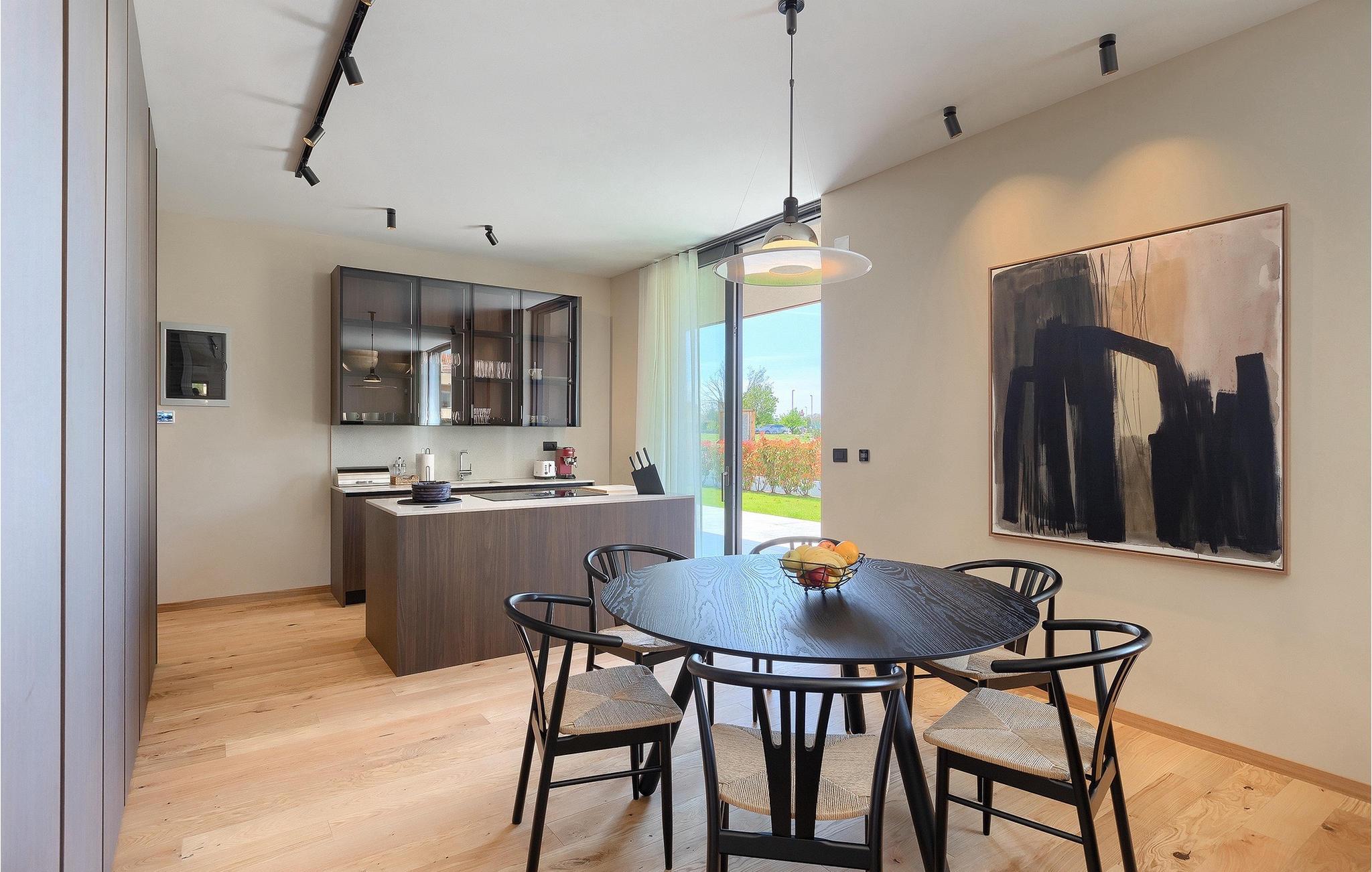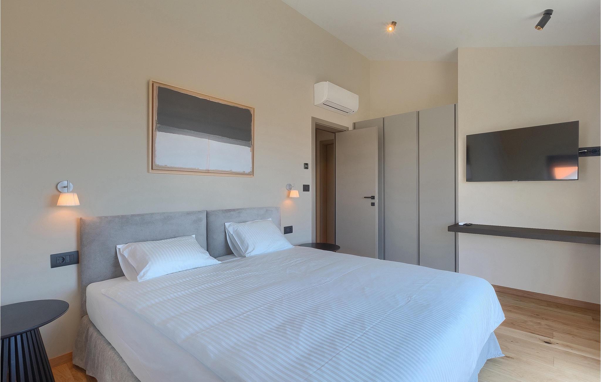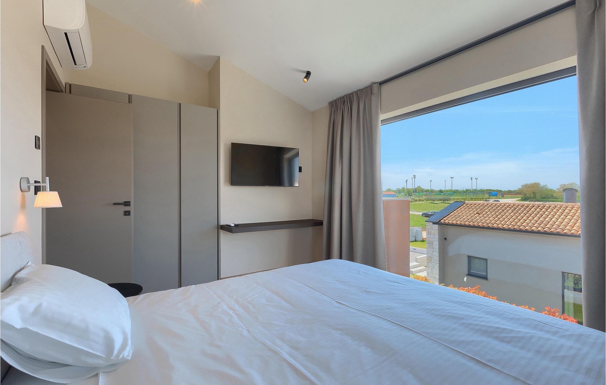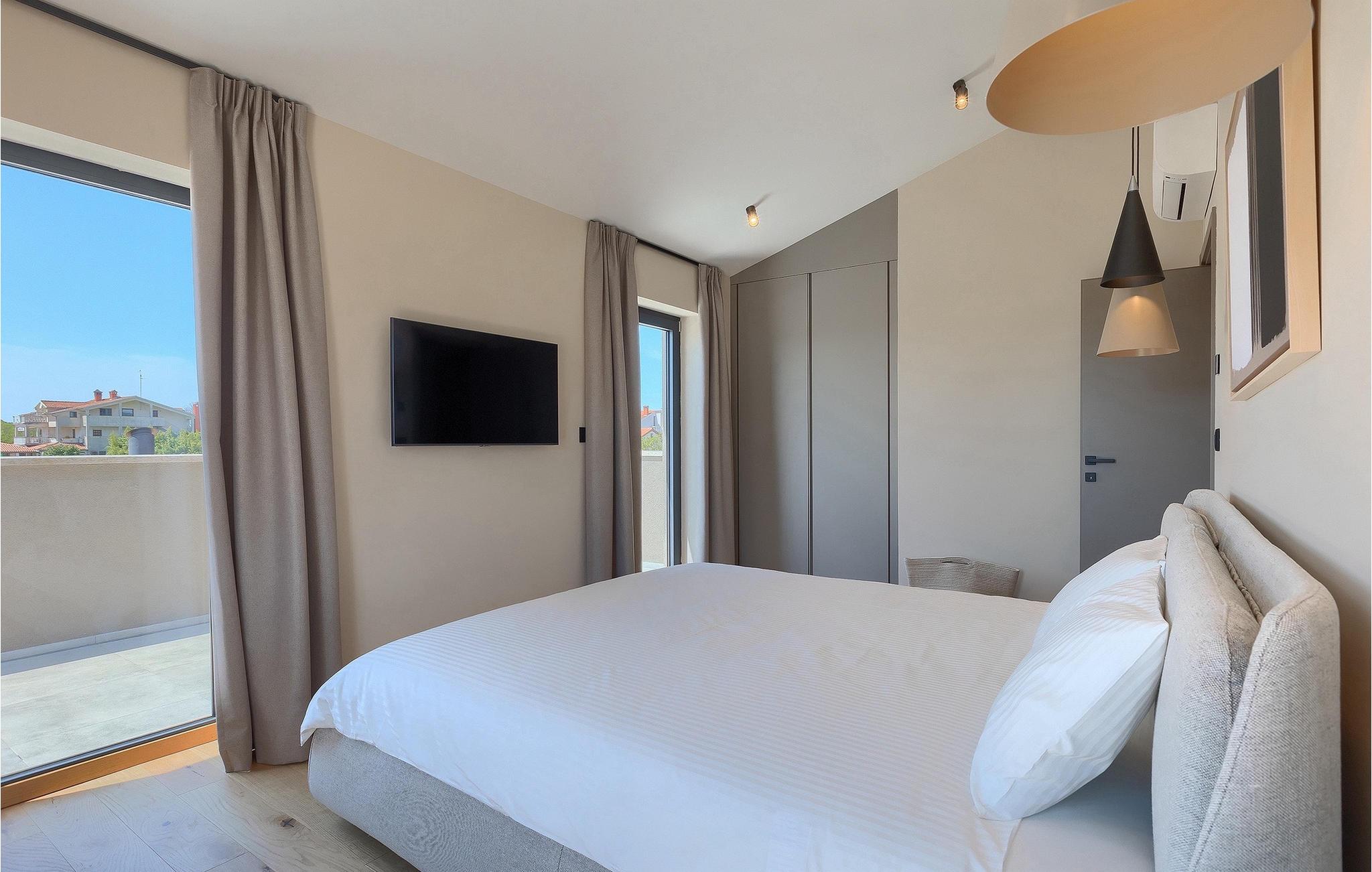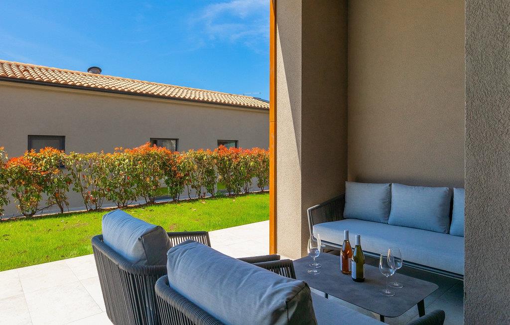 Wenn Sie von einem ruhigen Familienurlaub in der istrischen Landschaft unweit der Küste träumen, dann ist die Villa Palmeta die ideale Wahl für Sie! Diese ausgezeichnete moderne Villa befindet sich in Bale in der Nähe von Rovinj und bietet Platz für bis zu 8 Personen. Im Außenbereich steht Ihnen ein privater Pool zur Verfügung, bei dem Sie sonnige Tage mit Ihrem Lieblingsgetränk in der Hand verbringen werden. Um sich vollkommen zu entspannen, stehen neben dem Pool Liegestühle und Sonnenschirme bereit. Wir sind sicher, dass Sie angenehme Sommerabende mit Familie und Freunden auf der überdachten Terrasse genießen werden, wo Ihnen eine Sommerküche mit Esstisch zur Verfügung steht, an der Sie sich entspannen können, während Sie die romantische Kulisse unter dem Sternenhimmel genießen. Das Innere dieser Villa wird Sie sicherlich begeistern. Eine harmonische Kombination aus modernem Design und natürlichen Materialien zieht sich durch den Innenbereich der Villa. Im Erdgeschoss steht Ihnen ein geräumiges Wohnzimmer mit Blick auf die Terrasse und den Pool zur Verfügung, sowie ein Esszimmer und eine voll ausgestattete Küche. Dank der großen Glasscheiben im Wohnzimmer ist der Innenraum wunderbar mit der Umgebung verbunden. Im Erdgeschoss befindet sich außerdem ein Schlafzimmer mit eigenem Bad und im Obergeschoss finden Sie zwei weitere moderne Schlafzimmer mit elegant gestalteten Bädern. Darüber hinaus können Sie sich im Obergeschoss auf der Galerie entspannen oder auf der Terrasse mit Blick auf die wunderschöne Umgebung eine Tasse Morgenkaffee genießen. Bale ist ein kleiner Ort im kontinentalen Teil Istriens in der Nähe von Rovinj. Eine gute Lage für Tagesausflüge entweder in Richtung Küste oder weiter ins Landesinnere. Es gibt viele Möglichkeiten, Strände und Buchten zu erkunden, und von den Städten aus sollten Sie unbedingt Rovinj und Pula besuchen. In Rovinj werden Sie von den farbenfrohen Häusern und der Kirche St. Euphemia an der Spitze der Altstadt begeistert sein. Besuchen Sie in Pula zahlreiche Sehenswürdigkeiten und wenn Sie es schaffen, besuchen Sie unbedingt ein Konzert in der Pula Arena. Im inneren Teil Istriens finden Sie viele Tavernen und Restaurants mit istrischen Köstlichkeiten, und es gibt auch zahlreiche Weingüter, in denen Sie lokale Weine probieren können.