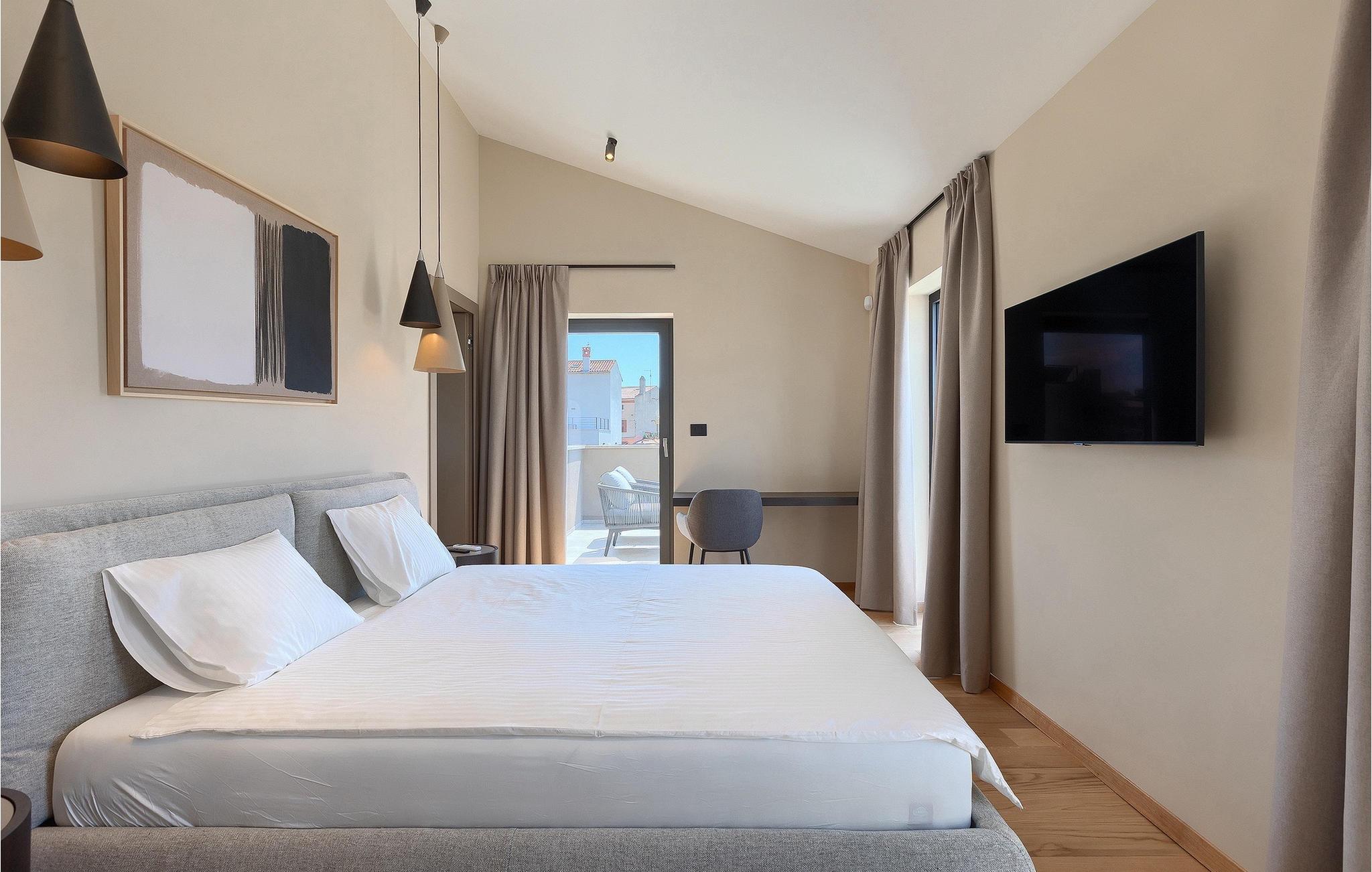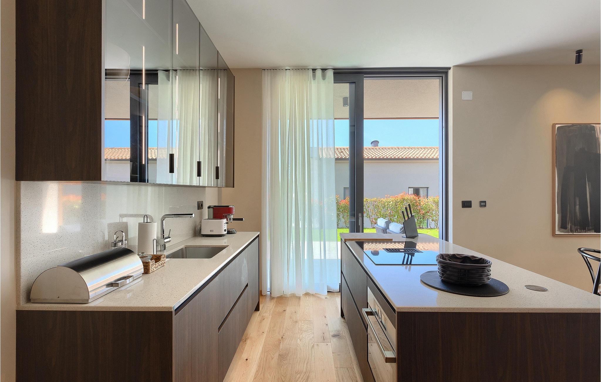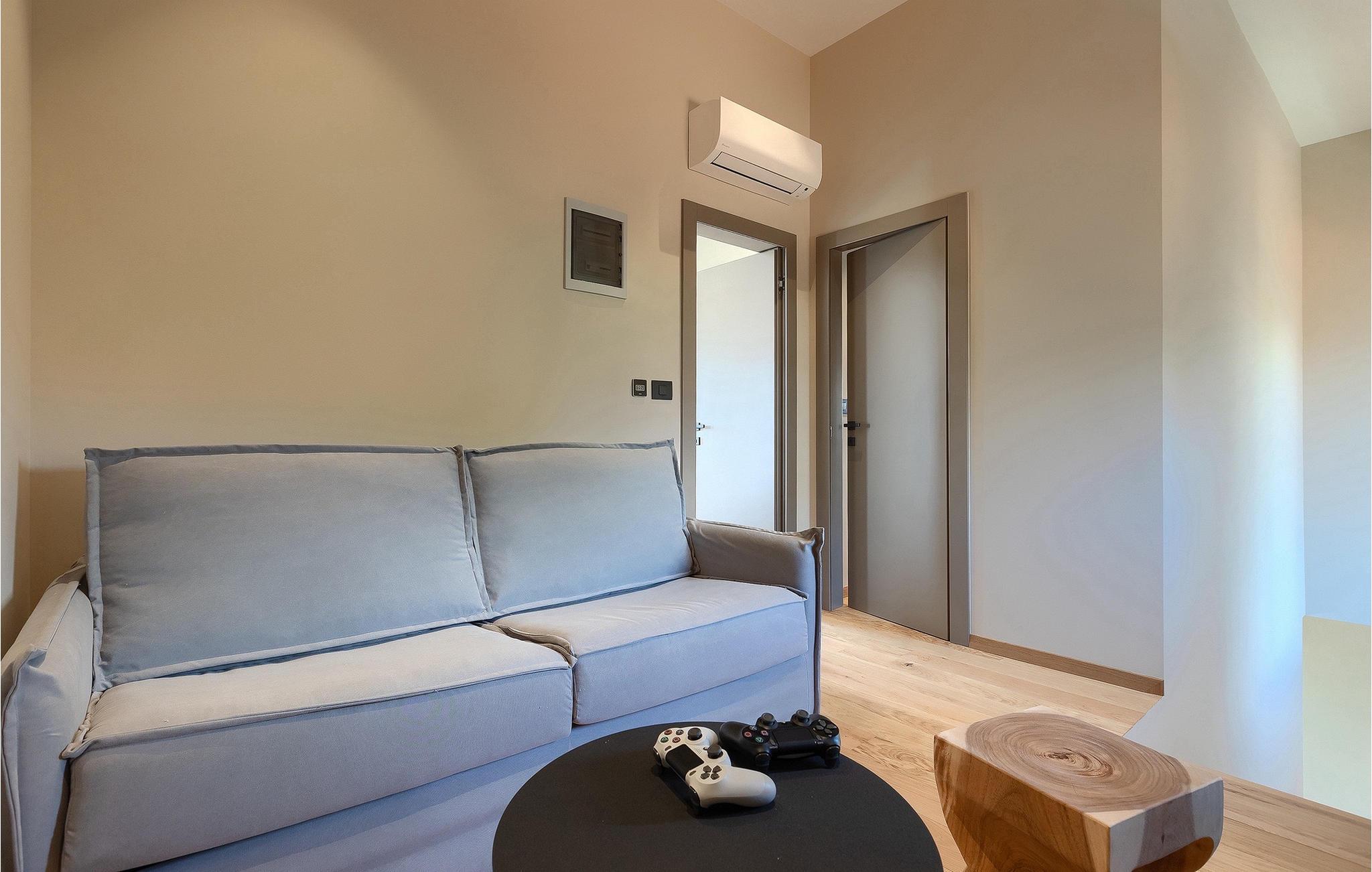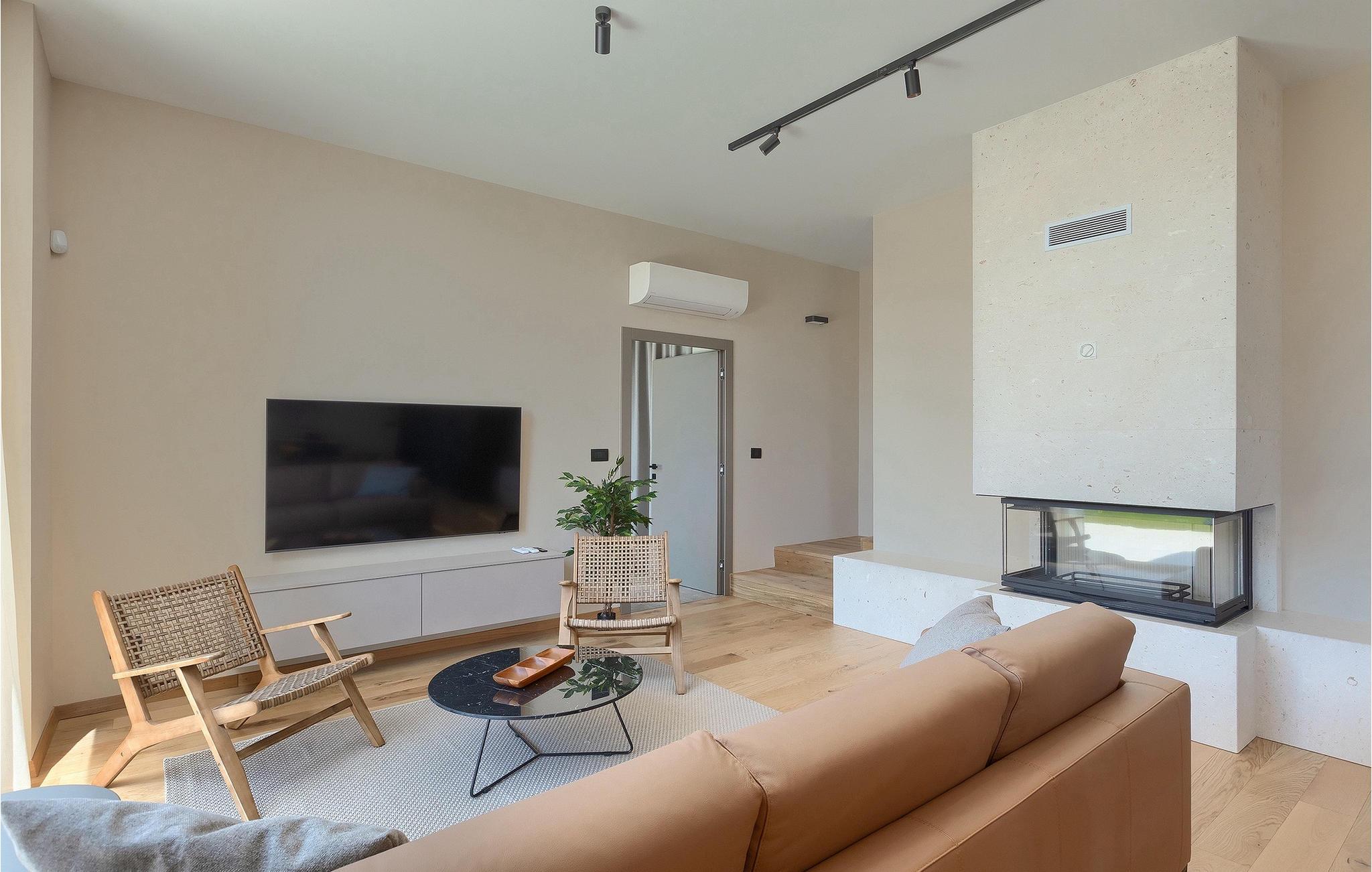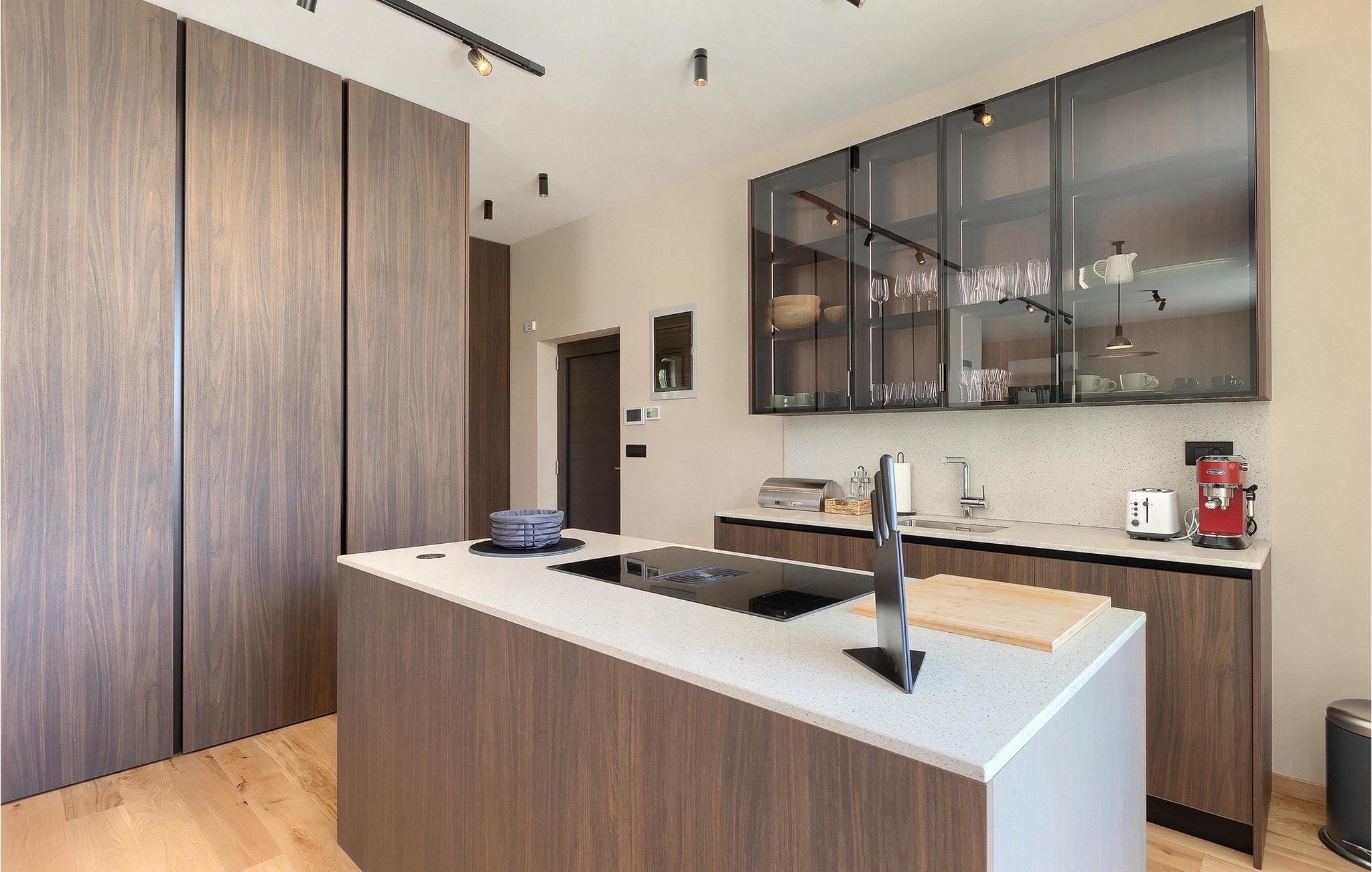 Wenn Sie von einem ruhigen Familienurlaub in der istrischen Landschaft unweit der Küste träumen, dann ist die Villa Palmeta die ideale Wahl für Sie! Diese ausgezeichnete moderne Villa befindet sich in Bale in der Nähe von Rovinj und bietet Platz für bis zu 8 Personen. Im Außenbereich steht Ihnen ein privater Pool zur Verfügung, bei dem Sie sonnige Tage mit Ihrem Lieblingsgetränk in der Hand verbringen werden. Um sich vollkommen zu entspannen, stehen neben dem Pool Liegestühle und Sonnenschirme bereit. Wir sind sicher, dass Sie angenehme Sommerabende mit Familie und Freunden auf der überdachten Terrasse genießen werden, wo Ihnen eine Sommerküche mit Esstisch zur Verfügung steht, an der Sie sich entspannen können, während Sie die romantische Kulisse unter dem Sternenhimmel genießen. Das Innere dieser Villa wird Sie sicherlich begeistern. Eine harmonische Kombination aus modernem Design und natürlichen Materialien zieht sich durch den Innenbereich der Villa. Im Erdgeschoss steht Ihnen ein geräumiges Wohnzimmer mit Blick auf die Terrasse und den Pool zur Verfügung, sowie ein Esszimmer und eine voll ausgestattete Küche. Dank der großen Glasscheiben im Wohnzimmer ist der Innenraum wunderbar mit der Umgebung verbunden. Im Erdgeschoss befindet sich außerdem ein Schlafzimmer mit eigenem Bad und im Obergeschoss finden Sie zwei weitere moderne Schlafzimmer mit elegant gestalteten Bädern. Darüber hinaus können Sie sich im Obergeschoss auf der Galerie entspannen oder auf der Terrasse mit Blick auf die wunderschöne Umgebung eine Tasse Morgenkaffee genießen. Bale ist ein kleiner Ort im kontinentalen Teil Istriens in der Nähe von Rovinj. Eine gute Lage für Tagesausflüge entweder in Richtung Küste oder weiter ins Landesinnere. Es gibt viele Möglichkeiten, Strände und Buchten zu erkunden, und von den Städten aus sollten Sie unbedingt Rovinj und Pula besuchen. In Rovinj werden Sie von den farbenfrohen Häusern und der Kirche St. Euphemia an der Spitze der Altstadt begeistert sein. Besuchen Sie in Pula zahlreiche Sehenswürdigkeiten und wenn Sie es schaffen, besuchen Sie unbedingt ein Konzert in der Pula Arena. Im inneren Teil Istriens finden Sie viele Tavernen und Restaurants mit istrischen Köstlichkeiten, und es gibt auch zahlreiche Weingüter, in denen Sie lokale Weine probieren können.
