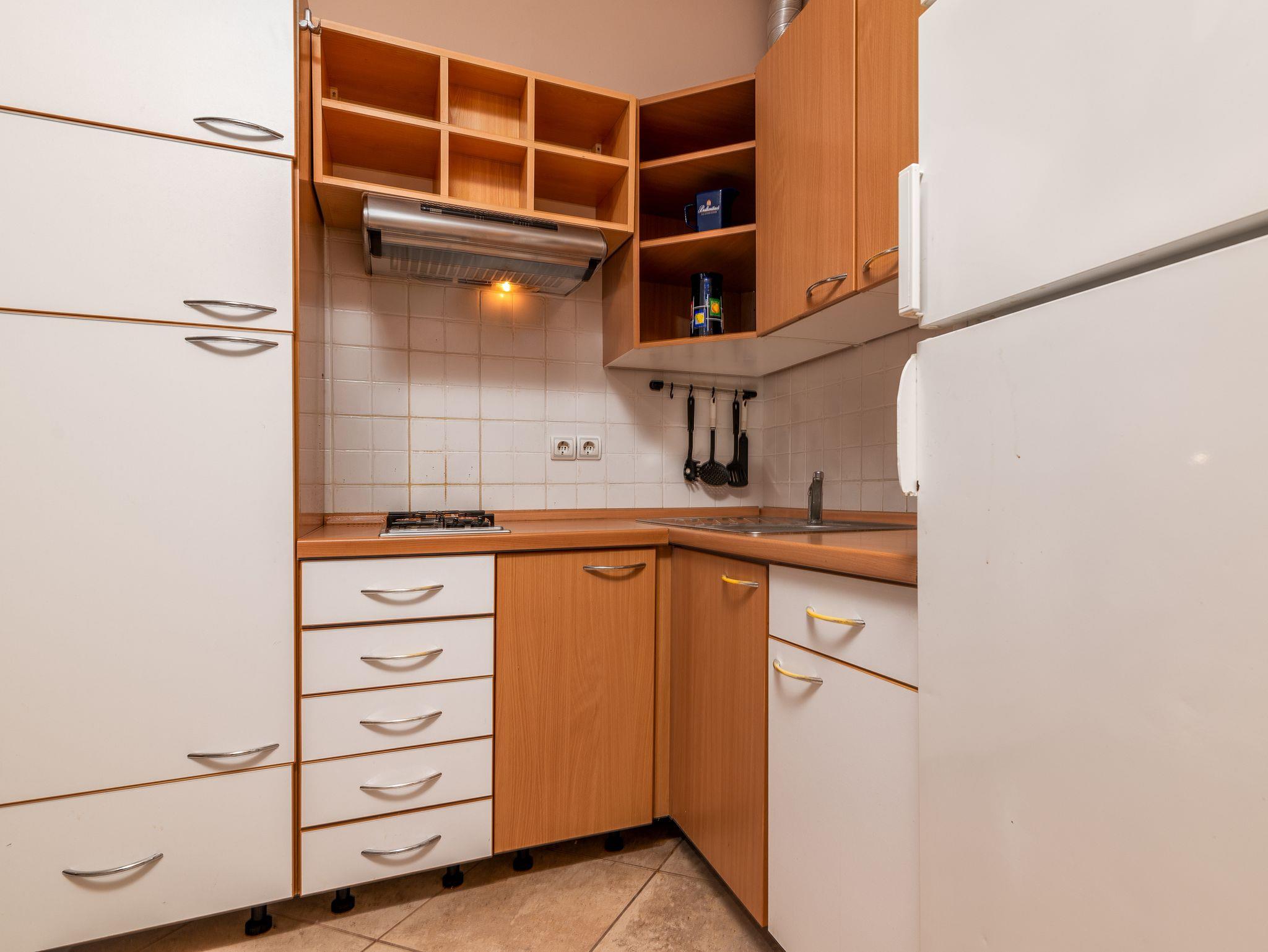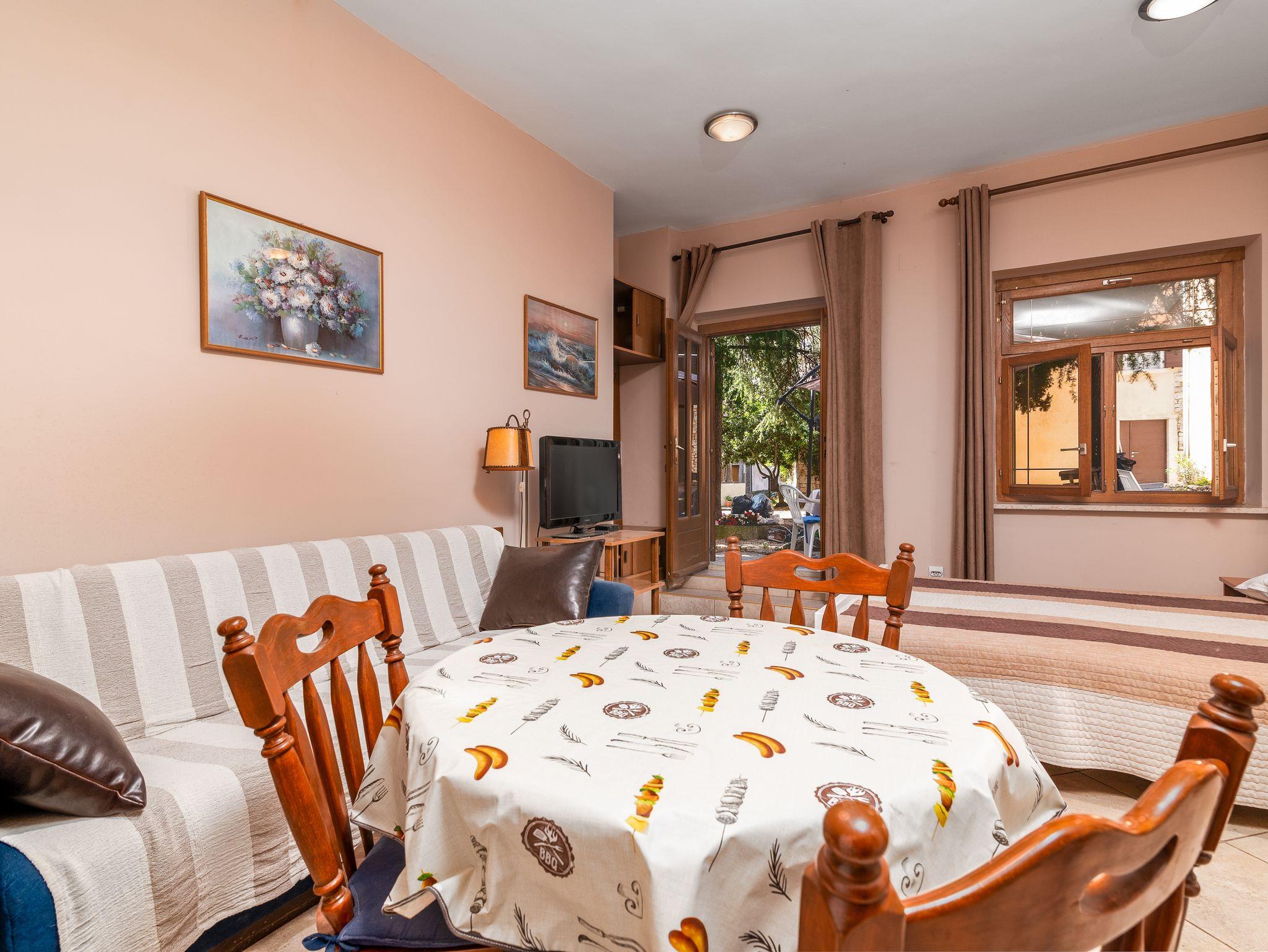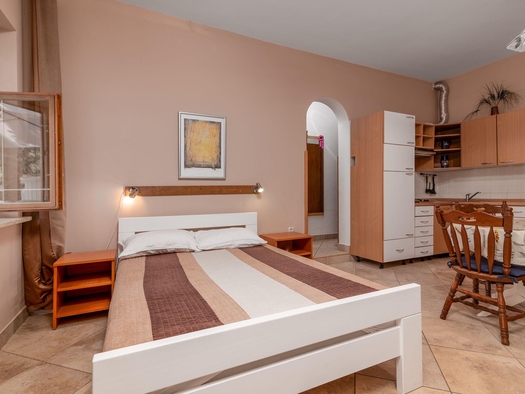 Studio bietet Platz für 2 Gäste. Die Betten sind in Schlafzimmern, die es 1 gibt, innerhalb einer Gesamtfläche von 24m2, angeordnet. Die Gäste haben eine eigene Terrasse zur Verfügung, auf der sie in warmen Sommernächten genießen können. Es ist erlaubt, Speisen auf dem Gemeinschafts-Grill vorzubereiten. In der Unterkunftseinheit besteht die Möglichkeit des Mitbringens von Haustieren gegen Aufpreis. Räume der gebuchten Unterkunftseinheit werden nicht in eine Ganze verbunden. IM PREIS INBEGRIFFEN: Kurtaxe, Endreinigung, Parkplatz, Internet, Bügeleisen, Föhn. VERBINDLICHE ZUSÄTZLICHE KOSTEN: Aufzahlung für Kurzaufenthalte (prozentualer Zuschlag pro Nächtigungsanzahl: 30% - 1, 20% - 2, 10% - 3). UNVERBINDLICHE ZUSÄTZLICHE KOSTEN: Haustiere (5,00 € pro Nacht). Die Verfügbarkeit zusätzlicher Dienstleistungen in Ihrem reservierten Termin und die Preise derselben (falls nicht aufgeführt) müssen im Voraus überprüft werden. Zusätzliche Dienstleistungen die in der Zahlungsaufforderung nicht aufgeführt sind werden direkt beim Vermieter bezahlt, angenommen der Gast nutzt auch diese. Ermäßigung auf den Grundpreis: Gratistag 21=19 (bei einem Aufenthalt von 21 Tagen oder mehr erhalten Sie 2 Gratistage für den Aufenthalt bis 31.12.26).