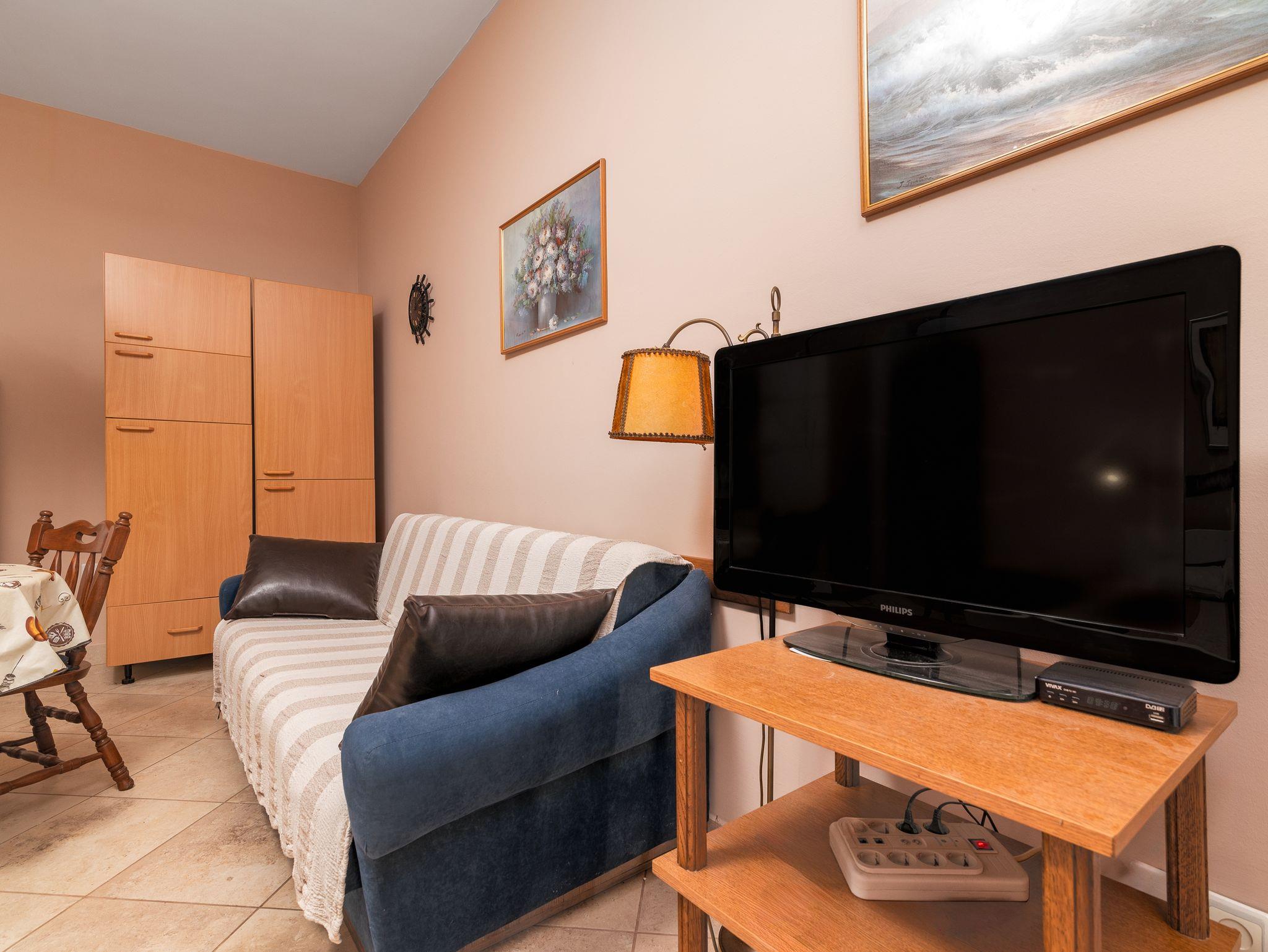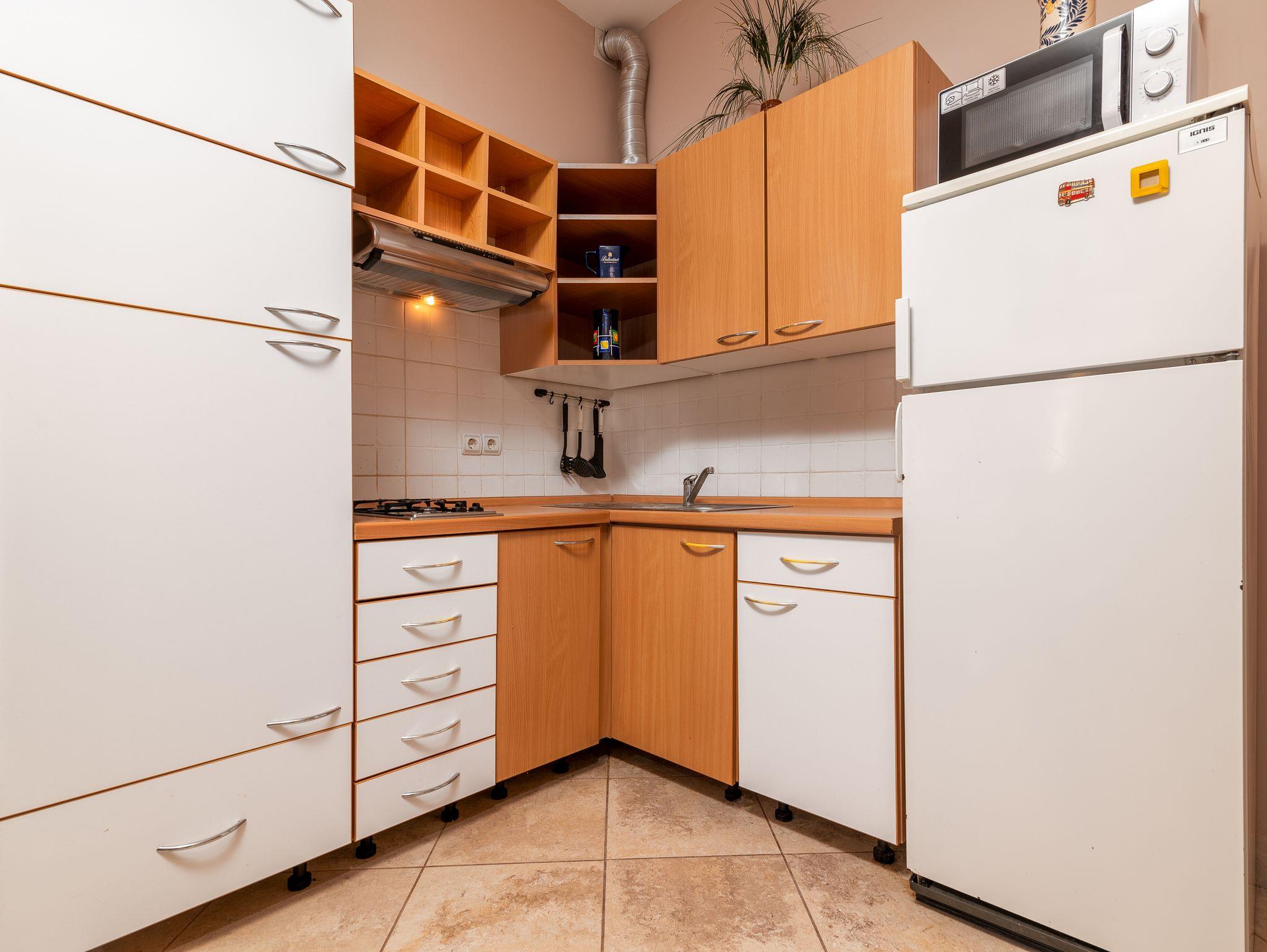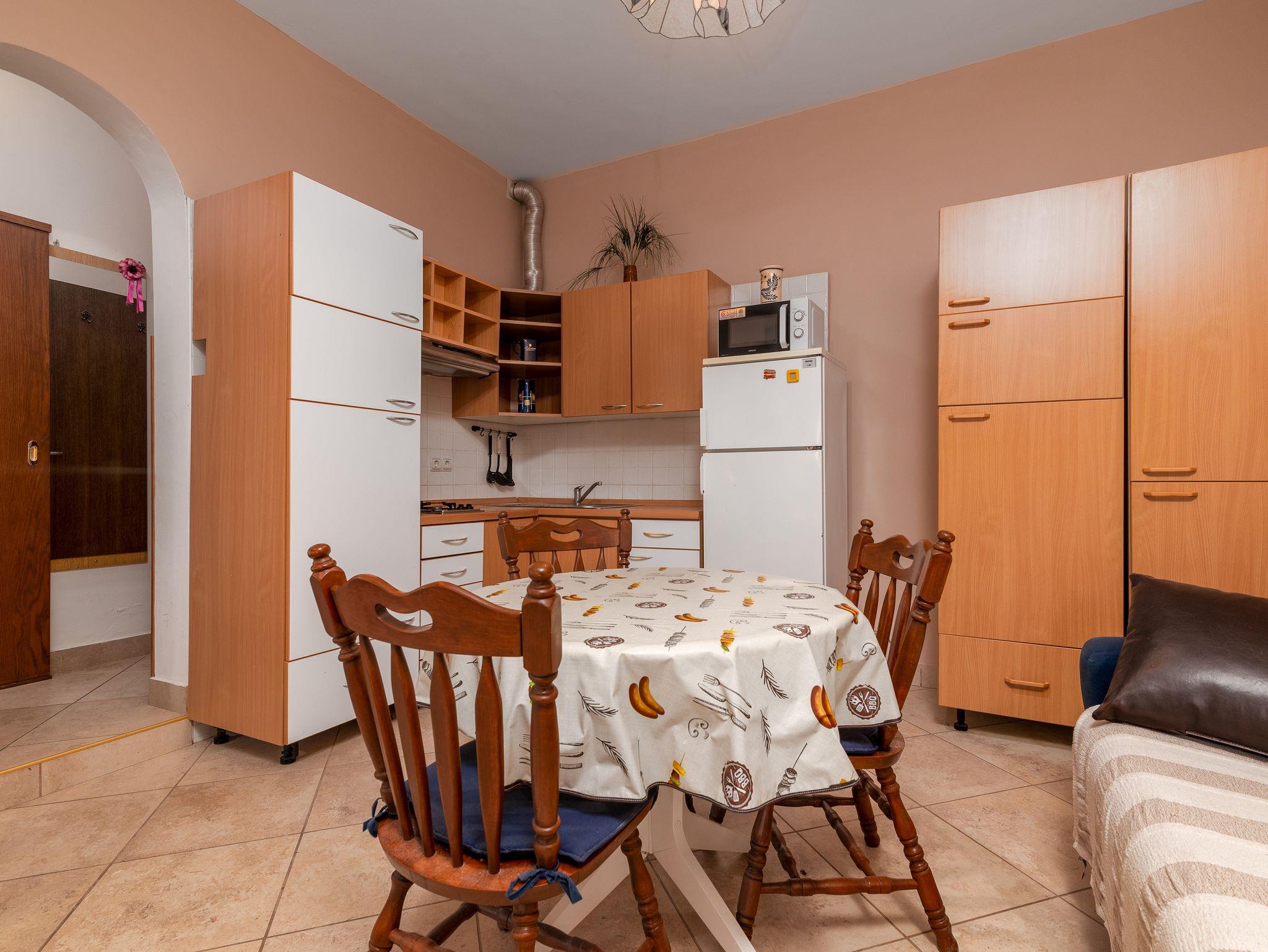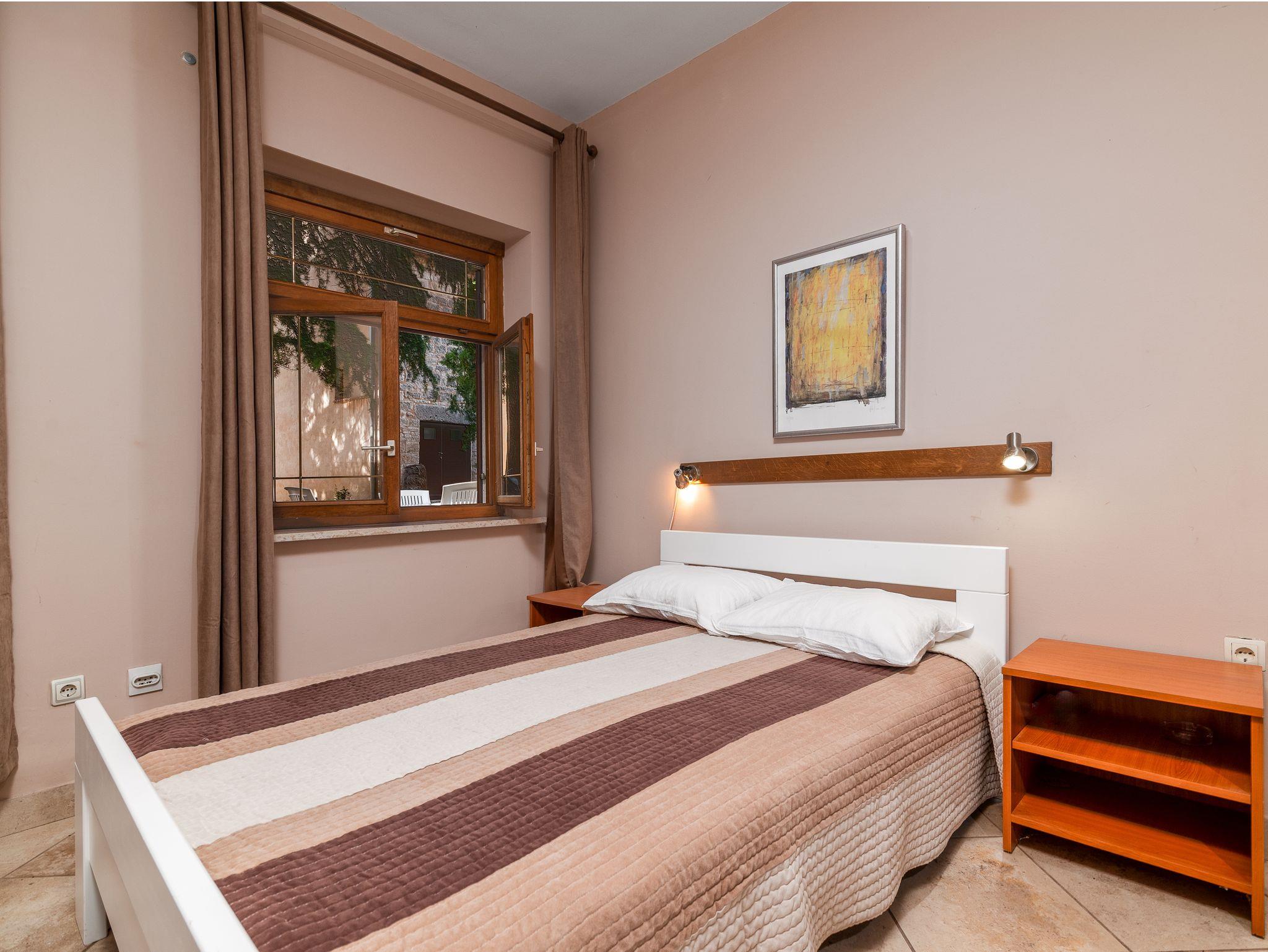 Studio bietet Platz für 2 Gäste. Die Betten sind in Schlafzimmern, die es 1 gibt, innerhalb einer Gesamtfläche von 24m2, angeordnet. Die Gäste haben eine eigene Terrasse zur Verfügung, auf der sie in warmen Sommernächten genießen können. Es ist erlaubt, Speisen auf dem Gemeinschafts-Grill vorzubereiten. In der Unterkunftseinheit besteht die Möglichkeit des Mitbringens von Haustieren gegen Aufpreis. Räume der gebuchten Unterkunftseinheit werden nicht in eine Ganze verbunden. IM PREIS INBEGRIFFEN: Kurtaxe, Endreinigung, Parkplatz, Internet, Bügeleisen, Föhn. VERBINDLICHE ZUSÄTZLICHE KOSTEN: Aufzahlung für Kurzaufenthalte (prozentualer Zuschlag pro Nächtigungsanzahl: 30% - 1, 20% - 2, 10% - 3). UNVERBINDLICHE ZUSÄTZLICHE KOSTEN: Haustiere (5,00 € pro Nacht). Die Verfügbarkeit zusätzlicher Dienstleistungen in Ihrem reservierten Termin und die Preise derselben (falls nicht aufgeführt) müssen im Voraus überprüft werden. Zusätzliche Dienstleistungen die in der Zahlungsaufforderung nicht aufgeführt sind werden direkt beim Vermieter bezahlt, angenommen der Gast nutzt auch diese. Ermäßigung auf den Grundpreis: Gratistag 21=19 (bei einem Aufenthalt von 21 Tagen oder mehr erhalten Sie 2 Gratistage für den Aufenthalt bis 31.12.26).