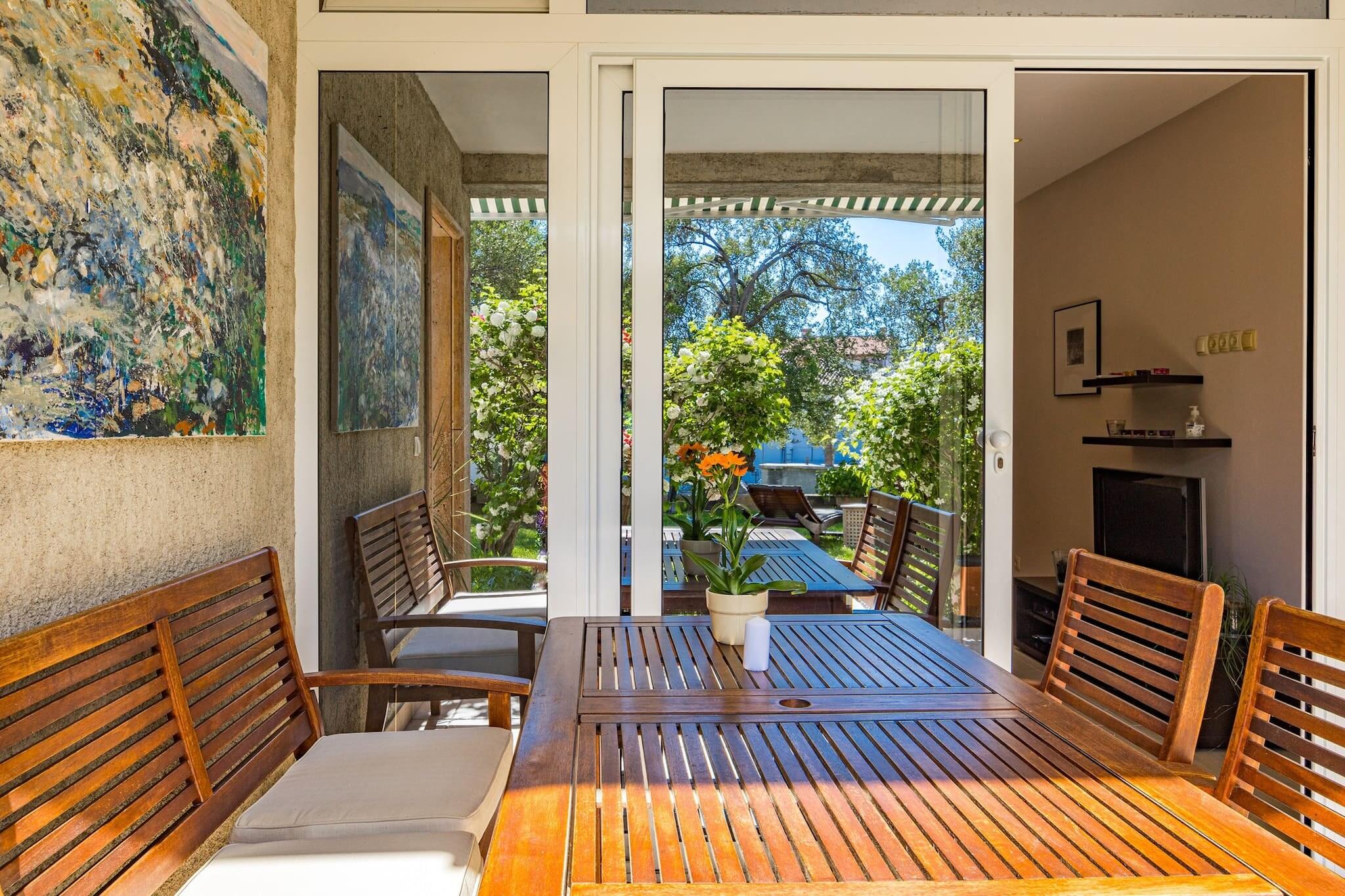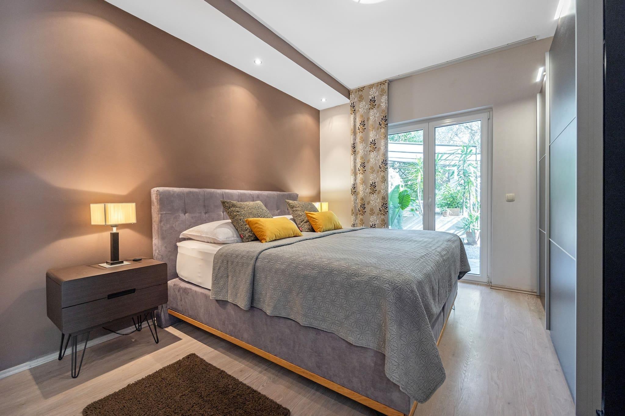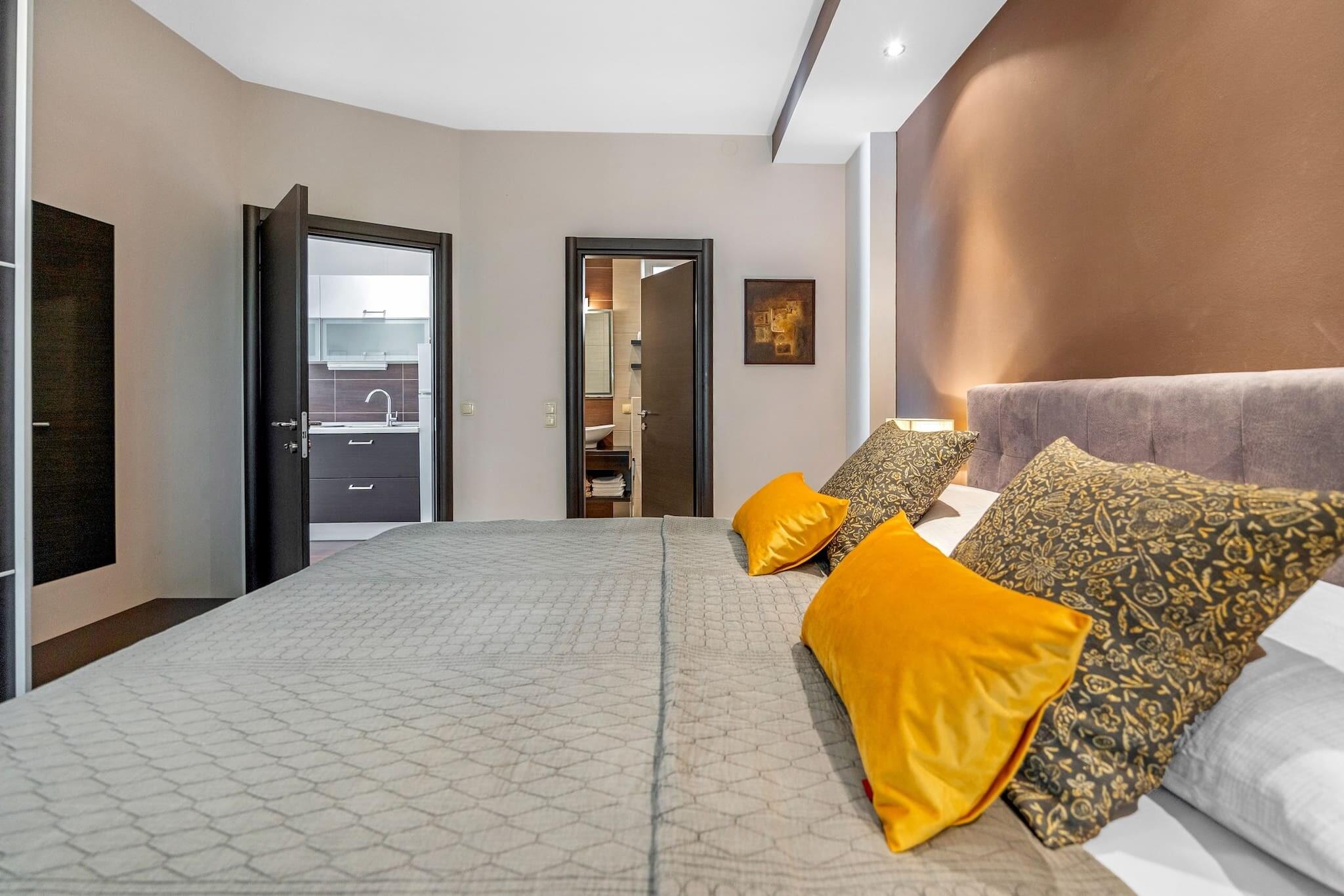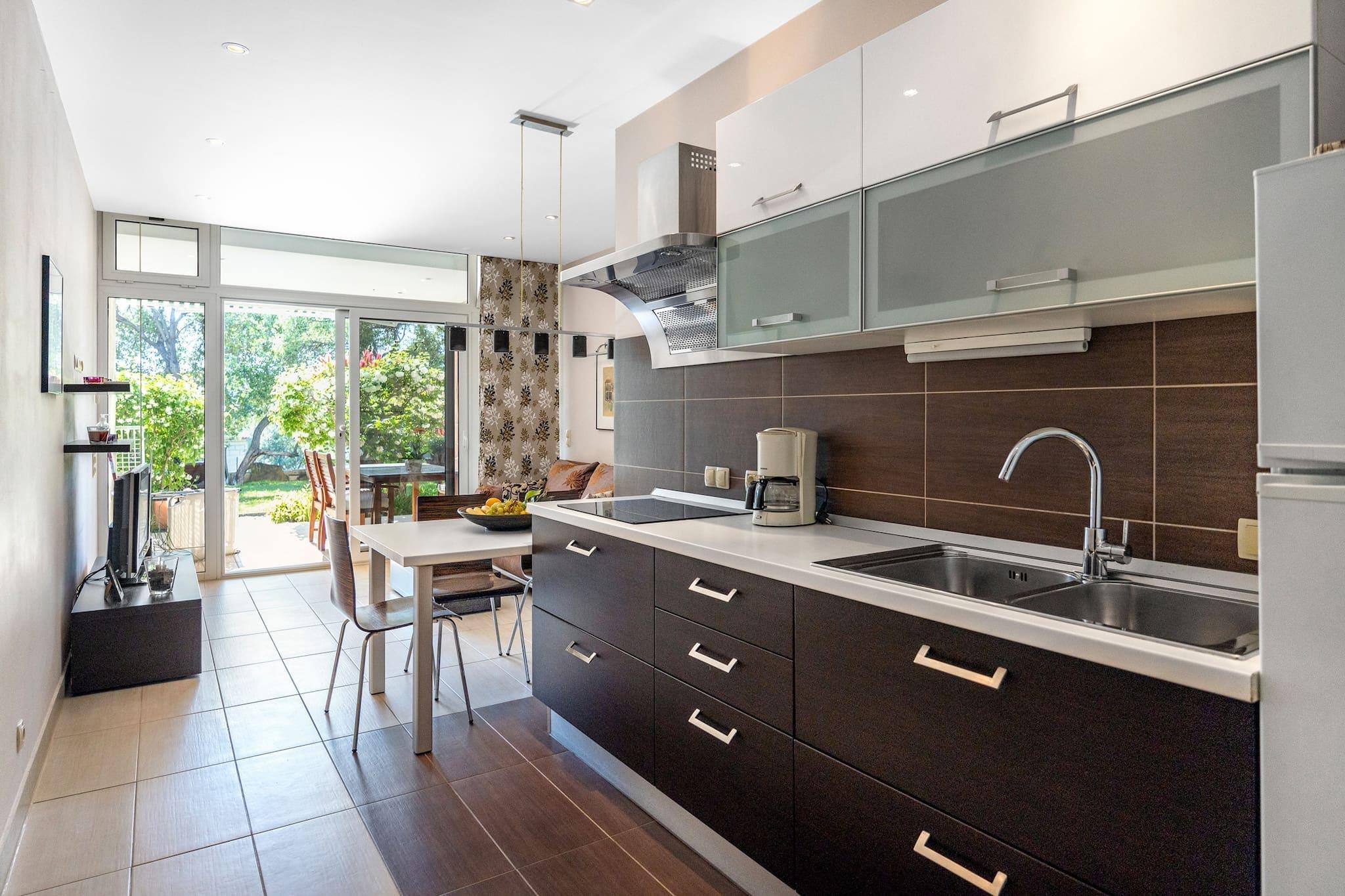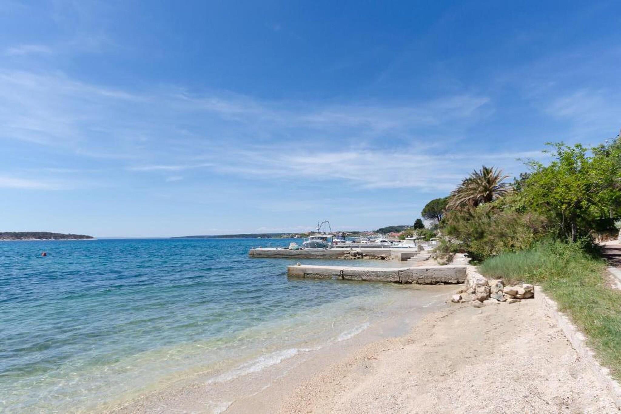 Escape to this peaceful one-bedroom apartment in Banjol, Rab, perfect for couples seeking comfort and charm. The apartment features a king-size bed, en suite bathroom, and a fully equipped kitchen for easy meal prep. Step outside to a lush garden with a shared jacuzzi and shaded lounge areas, ideal for unwinding after a beach day. A baby cot is available on request, and free private parking is included. A EURO40 final cleaning fee applies. Just 250 meters from a sandy beach, the location is ideal for exploring Rab’s coastline and historic sites. Wander through Old Town Rab, visit the ruins of St. Damian’s fortress, or enjoy fresh seafood at local restaurants. The nearby Komrcar forest park offers cool, scenic walks. Modern amenities include air conditioning, Wi-Fi, and a TV. Guests can also grill meals in the garden’s barbecue area. This non-smoking, pet-free retreat blends comfort, nature, and convenience for a memorable island stay.