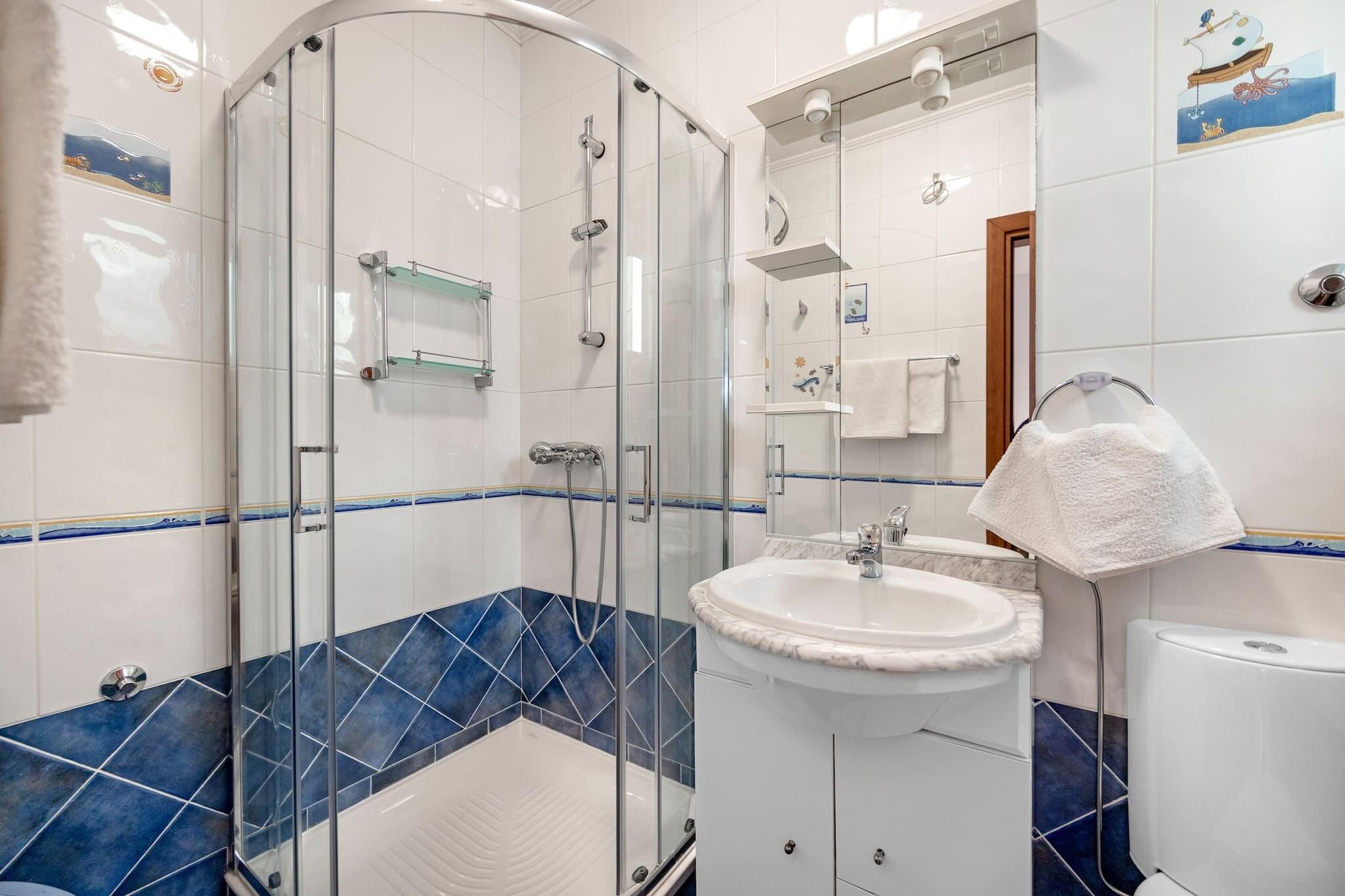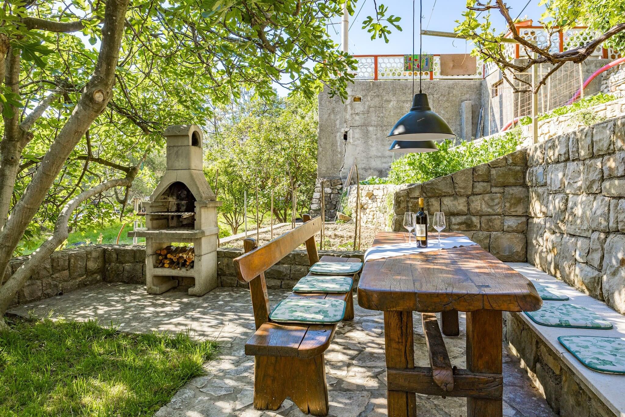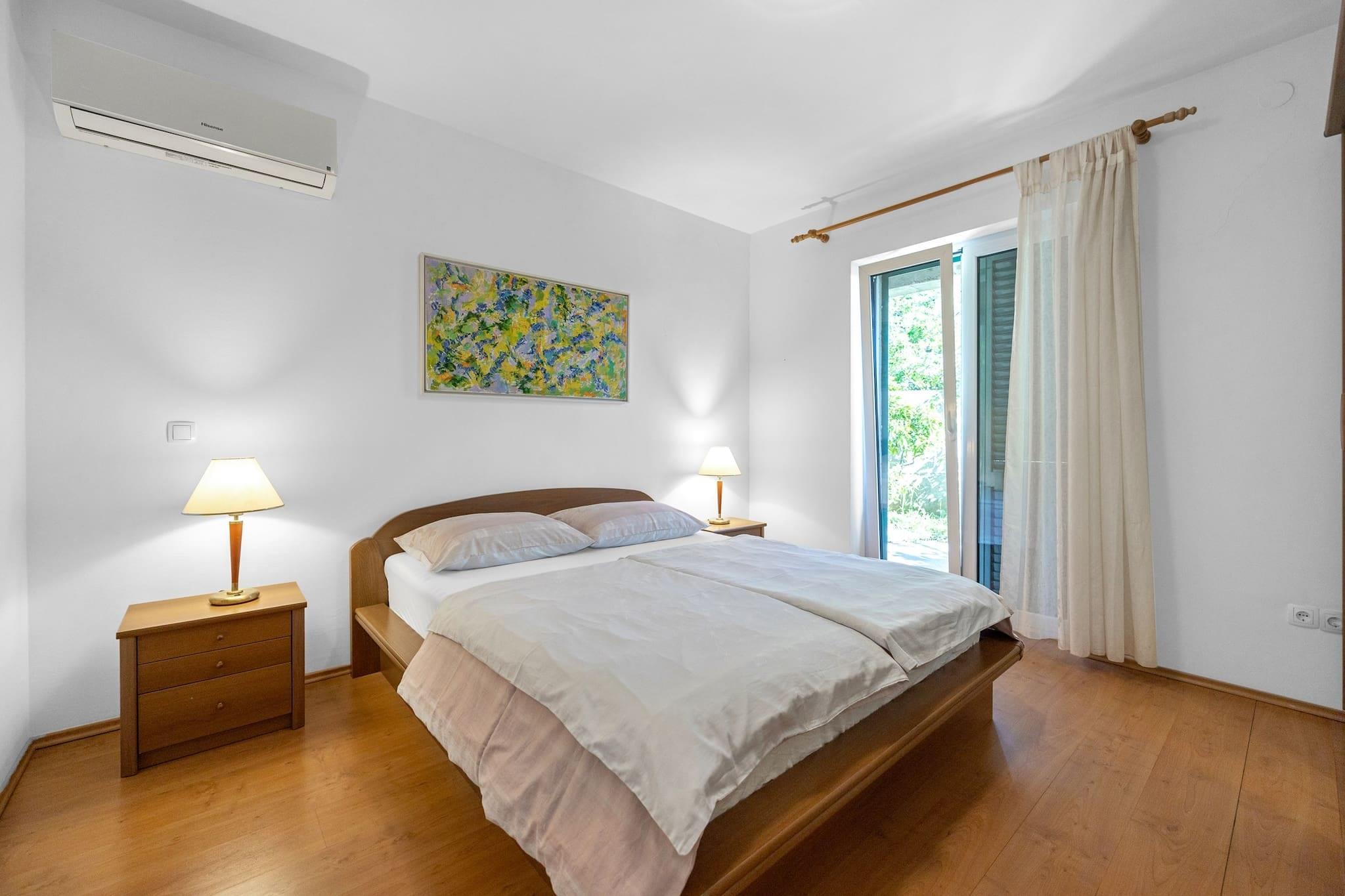 Set in the peaceful village of Banjol on Rab Island, this charming two-bedroom apartment is perfect for families or friends seeking a relaxing coastal escape. Each bedroom includes its own en suite bathroom, offering privacy and comfort. The fully equipped kitchen makes meal prep easy, and a baby cot is available on request. Guests can unwind in the lush garden, where a shared jacuzzi and outdoor lounge areas provide a serene setting. The apartment is just 250 meters from a sandy beach and close to Rab’s historic Old Town, the ruins of St. Damian’s fortress, and the shaded trails of Komrcar Park. Local restaurants serve fresh seafood, and the island’s ferry access makes exploring easy. Modern amenities include air conditioning, Wi-Fi, and private parking. A barbecue area is available for outdoor dining, and a cleaning fee applies. For a unique outing, consider a boat trip to Goli Otok, a former political prison turned historical site.