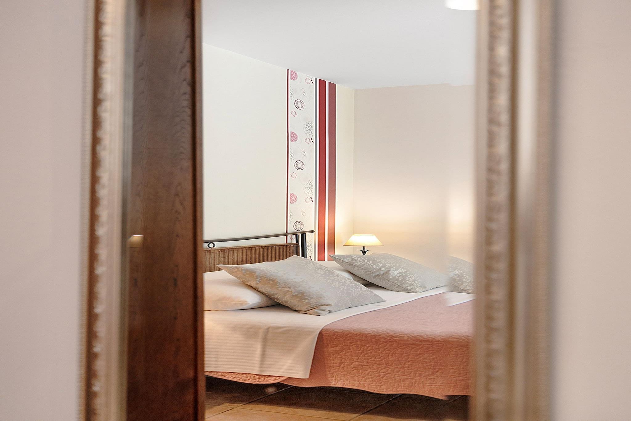 Tucked into the peaceful village of Banjol on Rab Island, this inviting apartment is perfect for couples seeking a relaxing coastal escape. It features a king-size bed, a private bathroom, and a fully equipped kitchen for easy meal prep. A baby cot is available on request, and a final cleaning fee applies. Step outside to a lush garden with a shared jacuzzi and shaded lounge areas, ideal for unwinding after a beach day. Guests can also enjoy grilling in the outdoor barbecue area. Free private parking is available on-site. Just 250 meters from a sandy beach, the apartment is ideally located for exploring Rab’s natural beauty and historic charm. Wander through Old Town Rab, visit the ruins of St. Damian’s fortress, or enjoy fresh seafood at nearby restaurants. With air conditioning, Wi-Fi, and open-air parking, this non-smoking, pet-free studio offers a serene and comfortable stay.