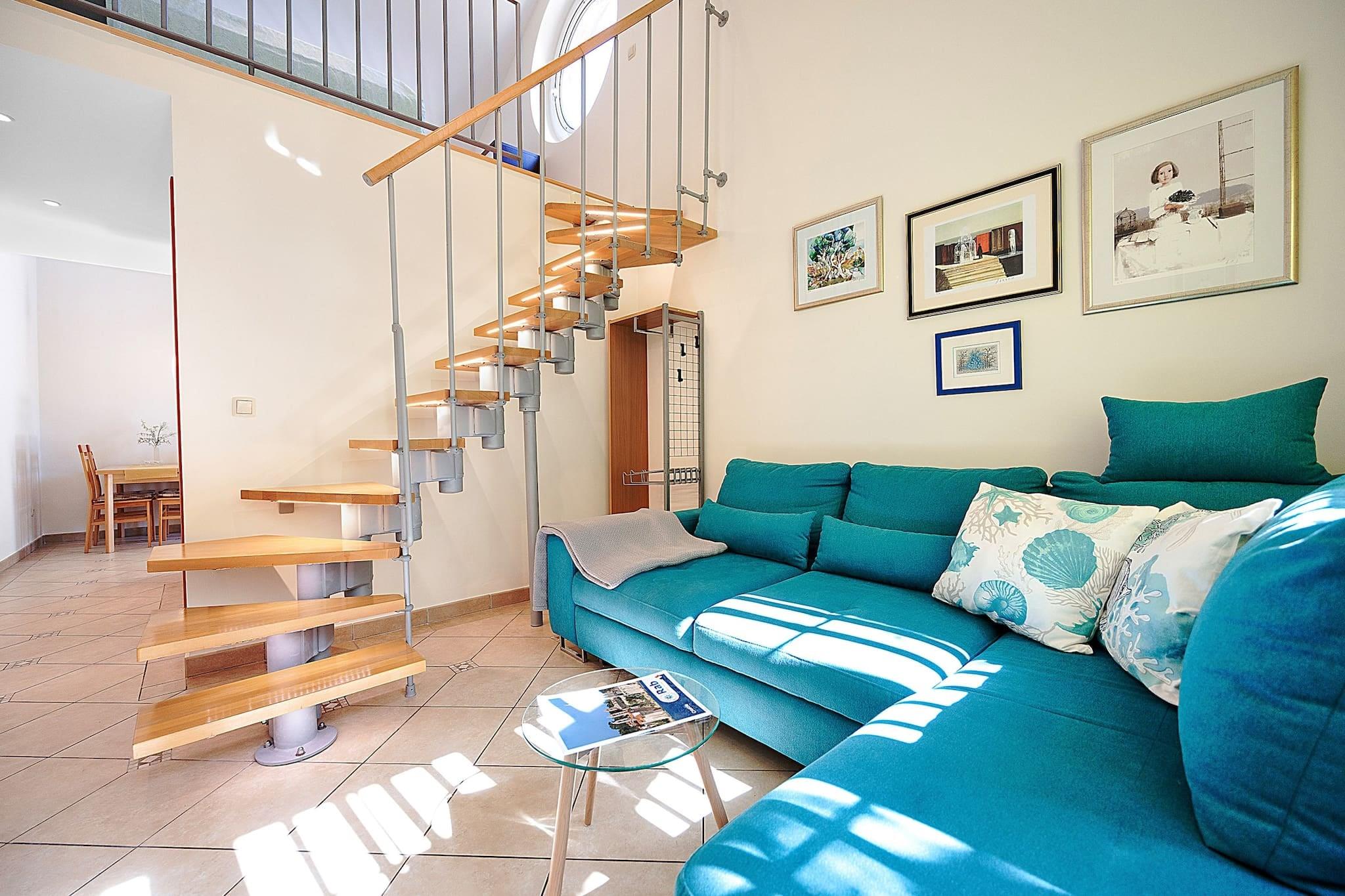 This cozy studio in the heart of Banjol on Rab Island offers a peaceful retreat for two. The sleeping area is set on a gallery, and the fully equipped kitchen makes it easy to prepare meals. A baby cot is available on request, and a final cleaning fee applies. The apartment includes air conditioning, Wi-Fi, towels, bed linen, and a washing machine for added convenience. Step outside into a lush garden with a shared jacuzzi and shaded lounge areas, perfect for relaxing after a beach day. Guests can also enjoy outdoor dining with a barbecue setup. Free private parking is available on-site. Just 250 meters from a sandy beach, the apartment is ideally located for exploring Rab’s natural beauty and historic charm. Visit the ancient fortress on St. Damian hill, stroll through Old Town Rab, or enjoy fresh seafood at local restaurants. With its tranquil setting and thoughtful amenities, this studio is a perfect base for a relaxing island escape.
