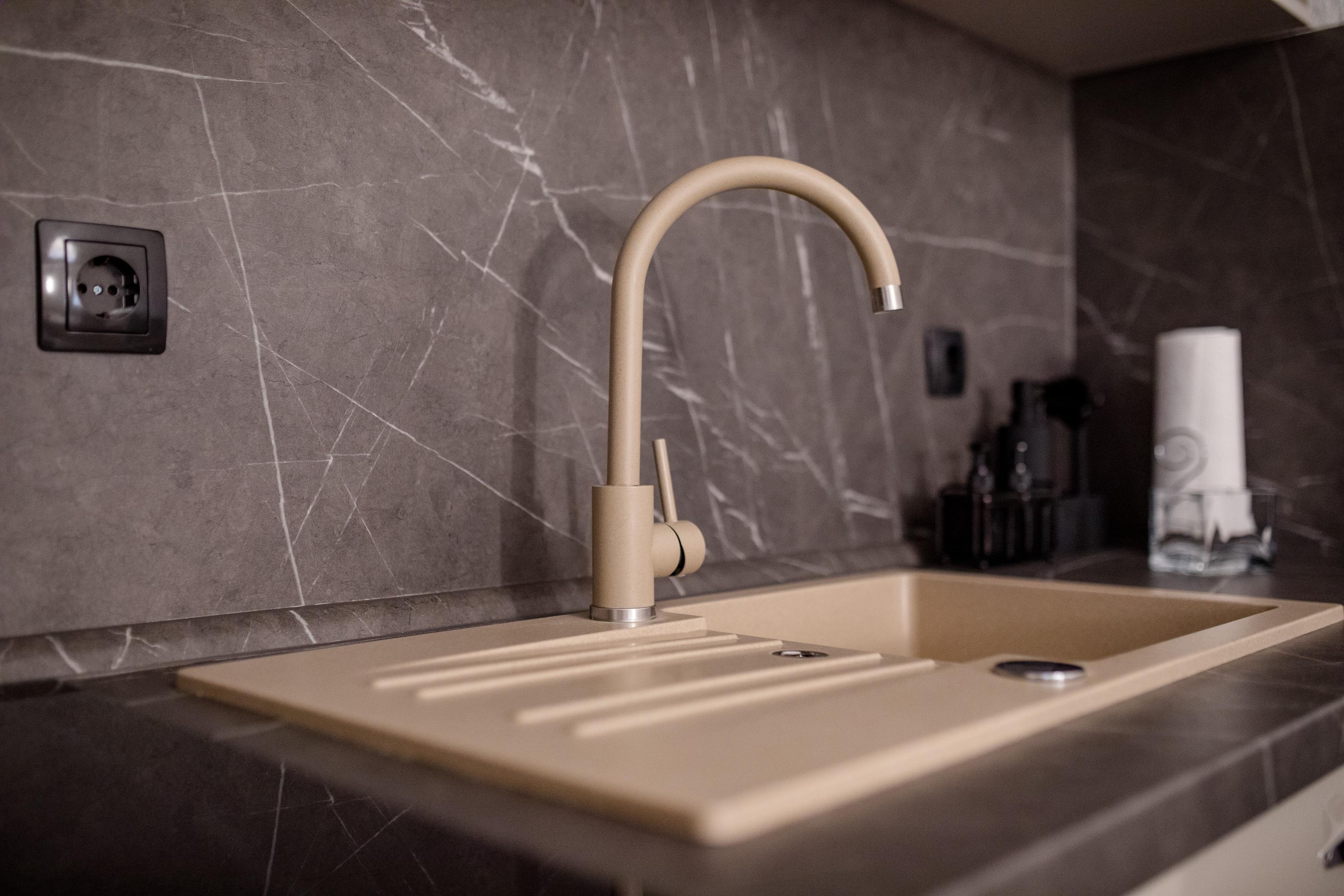 Kitchen (3 m2): Standard equipment: Refrigerator, Stove, Sink, Additional equipment: Oven, On request: Microwave oven, Water kettle, Coffee machine