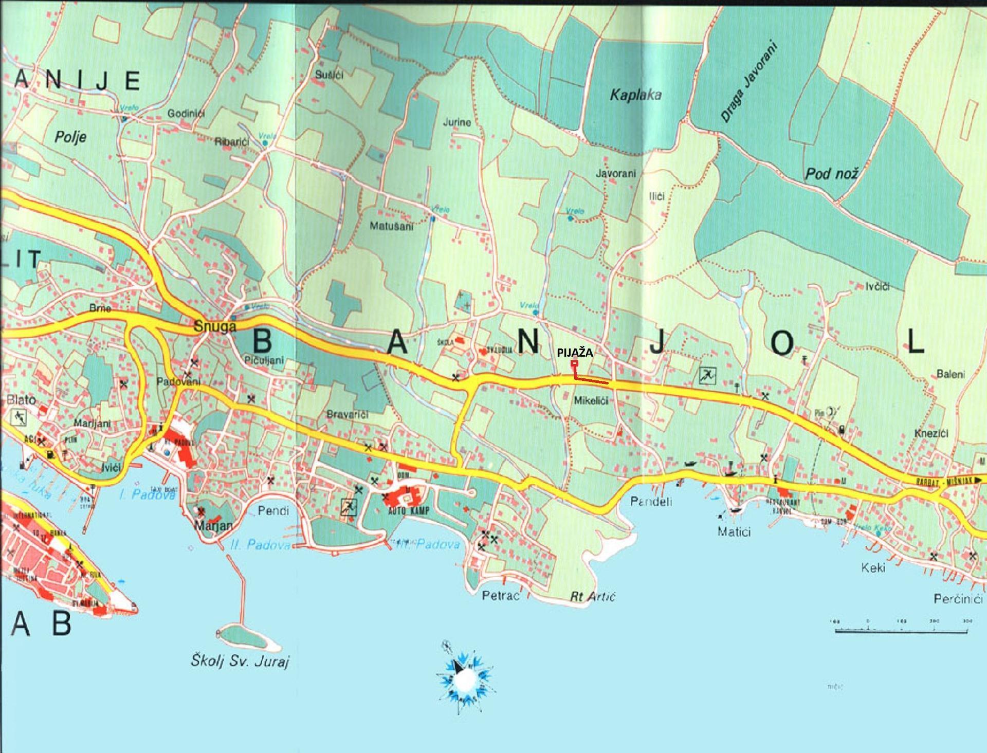 The location of our flats in Banjol offers the perfect starting point for exploring the island of Rab. A supermarket, bakery, exchange office and restaurants are in the immediate vicinity (750 to 1000 metres). The nearest beach is only 750 metres away. You can also reach the town in 35 minutes on foot along the picturesque coast or in just 5 minutes by car, where you can experience the island's culture, history and gastronomy.