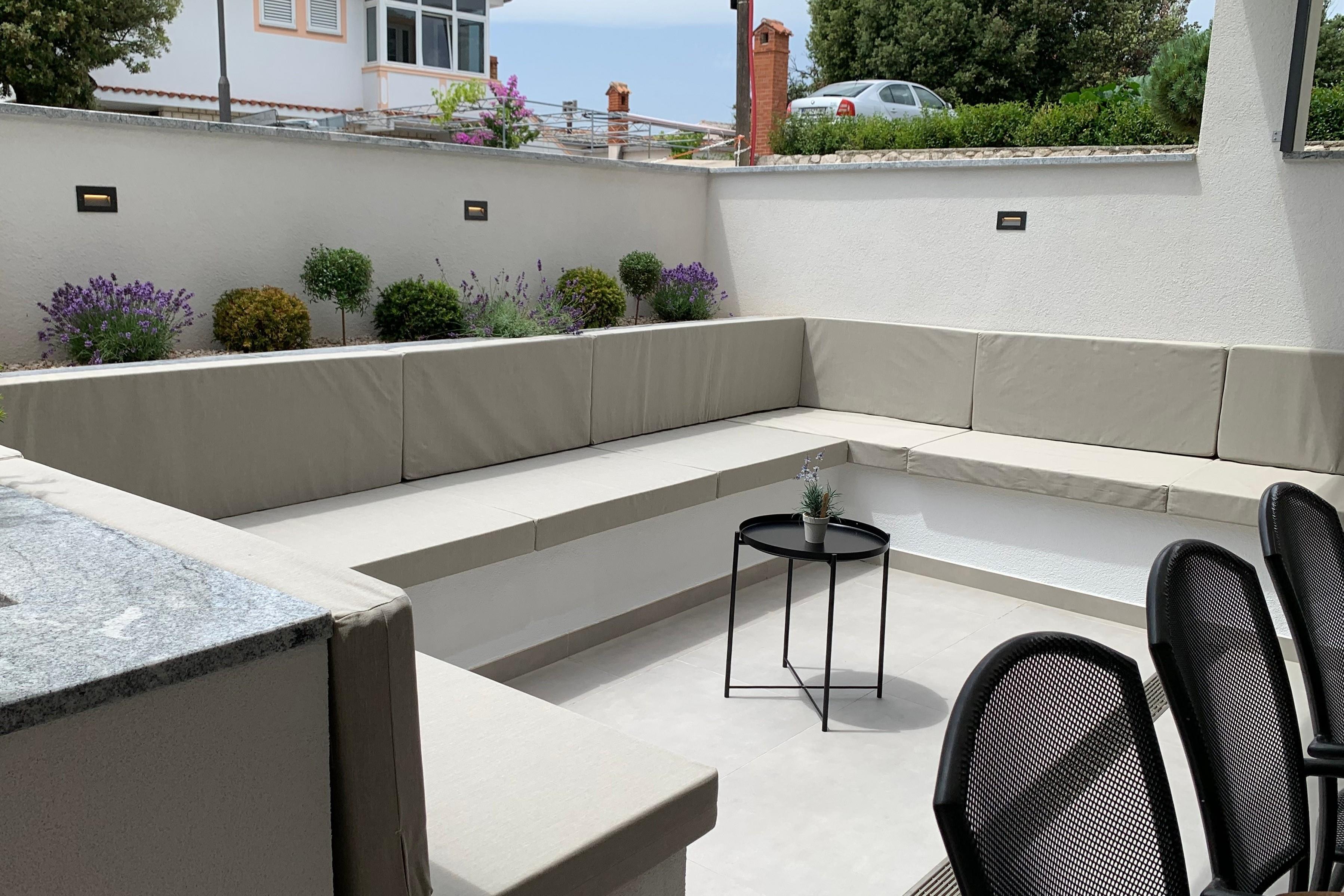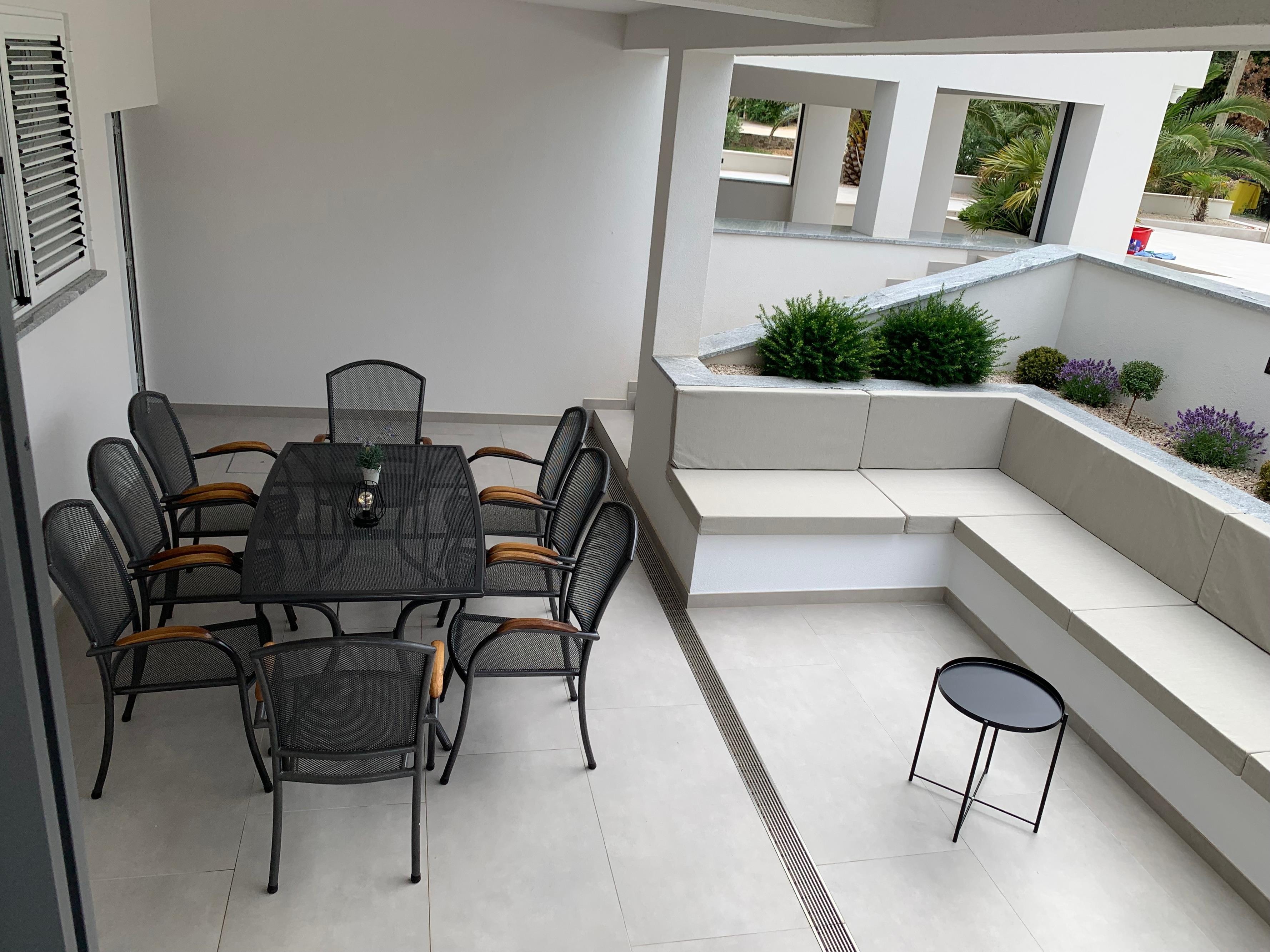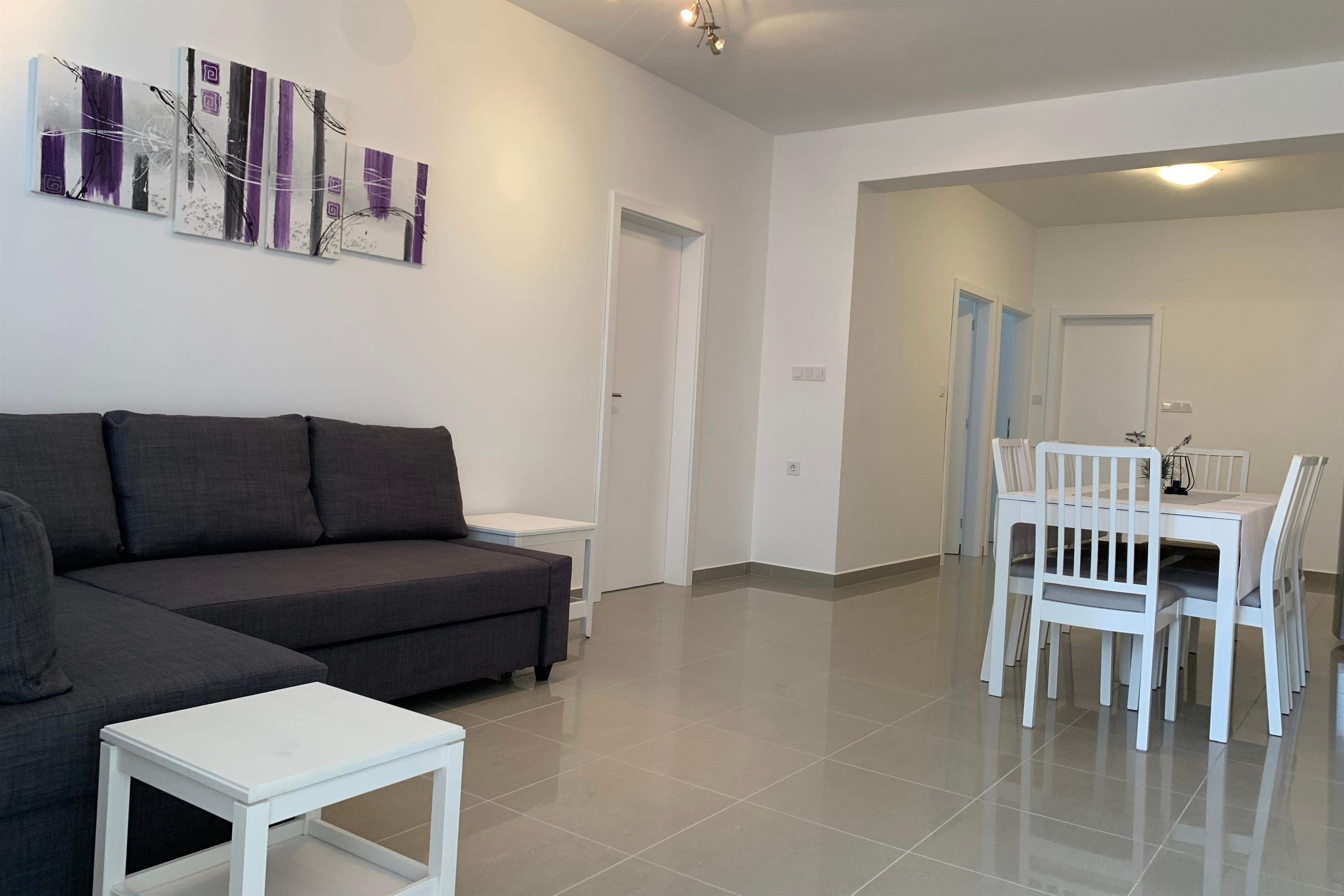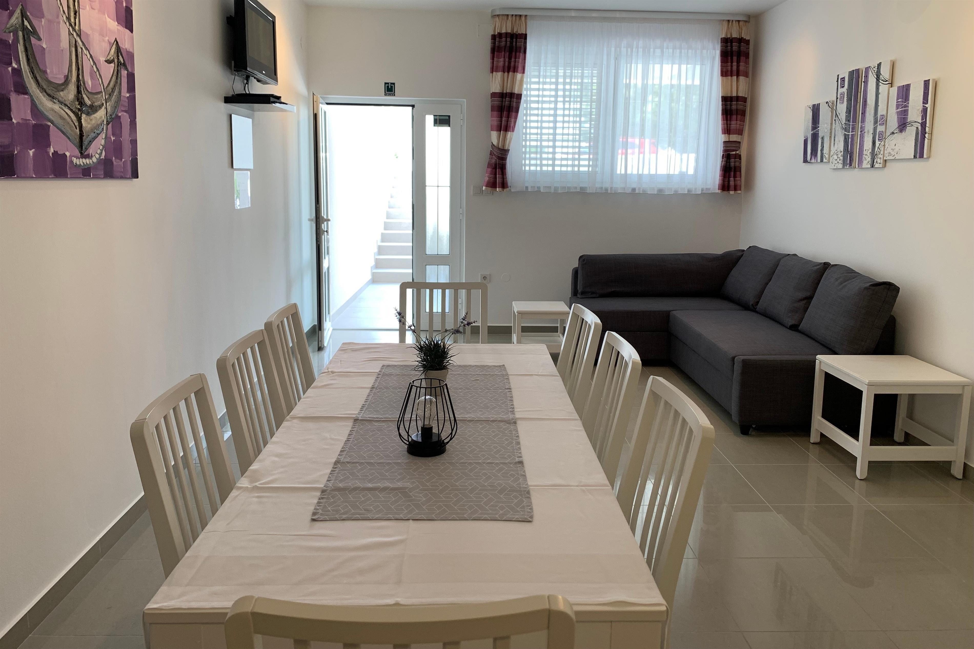 Apartment can accommodate 8 guests. Beds are situated in 3 sleeping rooms, but also in the living room, within 74m2. Guests can use a private terrace to enjoy the warm summer evenings. Food can be prepared using barbecue which is shared with other guests too.