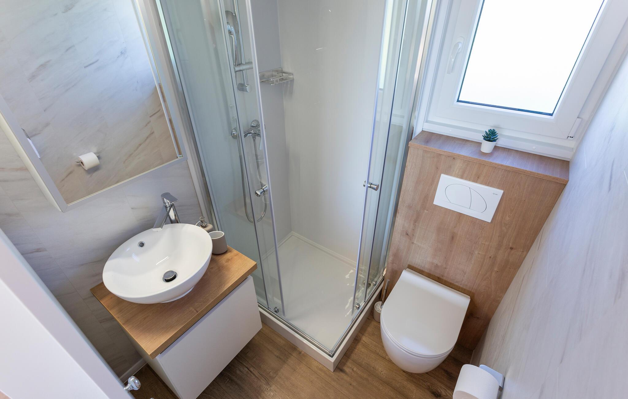 - WC mit warmem und kaltem Wasser, Dusche