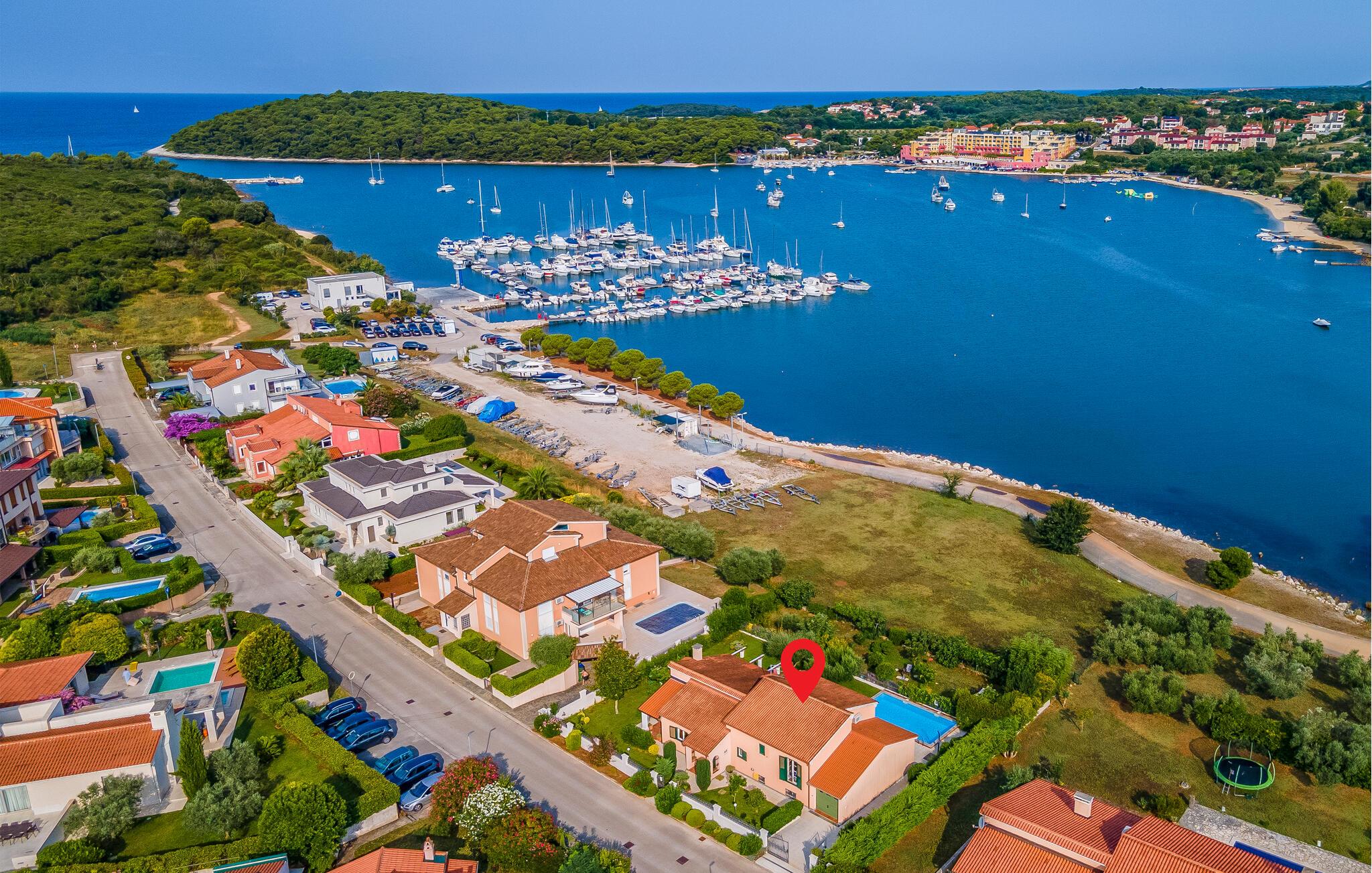 Das Ferienhaus befindet sich in einer ausgesprochenen guten Lage, in der ersten Reihe zum Meer. Das Haus ist komfortabel und gemütlich eingerichtet und besitzt allen nötigen Komfort für einen schönen Urlaub. Es verfügt über ein geräumiges Wohnzimmer, eine komplett ausgestattete Küche und drei Schlafzimmer. Die Waschmaschine befindet sich im Souterrain, das Sie über eine Innentreppe erreichen. Das Haus verfügt über 2 Terrassen, eine davon bietet Ihnen einen herrlichen Ausblick aufs Meer und dem Strand. Auf der anderen Terrasse befindet sich ein Außengrill, wo Sie kulinarische Köstlichkeiten zubereiten können. Unterhalb des Grundstücks liegen eine Rasenfläche und ein Spazierweg. Der Swimming-Pool bietet Ihnen Erfrischung in einer angenehmen Atmosphäre und vollkommene Entspannung. In der Nähe sind ein kleiner Jachthafen, der Strand, kleine Geschäfte, Restaurants und Café Bars. Machen Sie Ausflüge in die Nachbarschaft und entdecken Sie dabei die Ortschaft Premantura und dem Naturpark Kamenjak, wo Sie in zahlreichen Buchten herrliche Naturstrände finden. In der Nähe ist auch die antike Stadt Pula mit ihren interessanten Sehenswürdigkeiten.