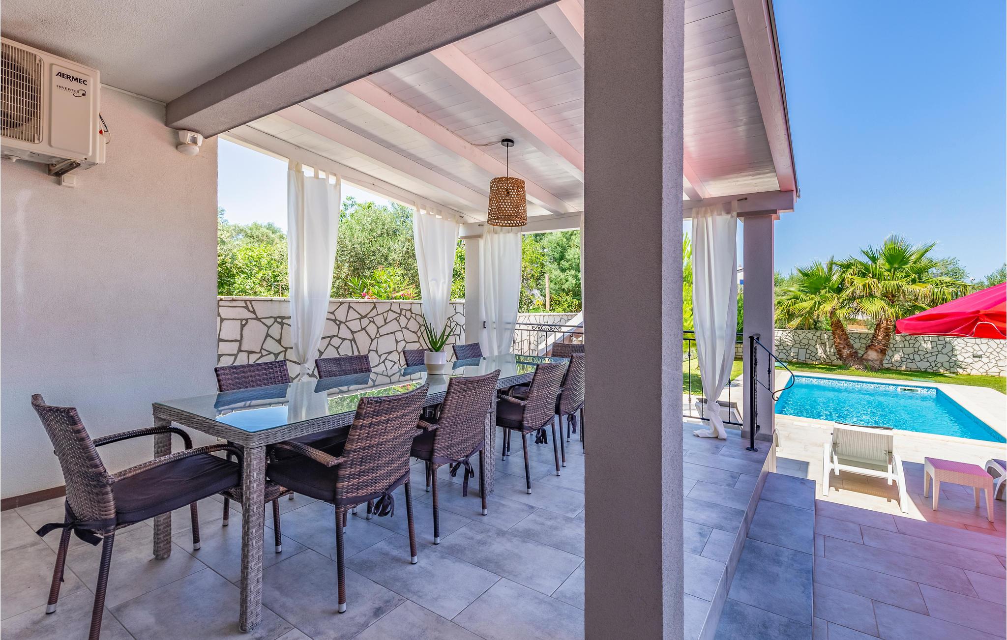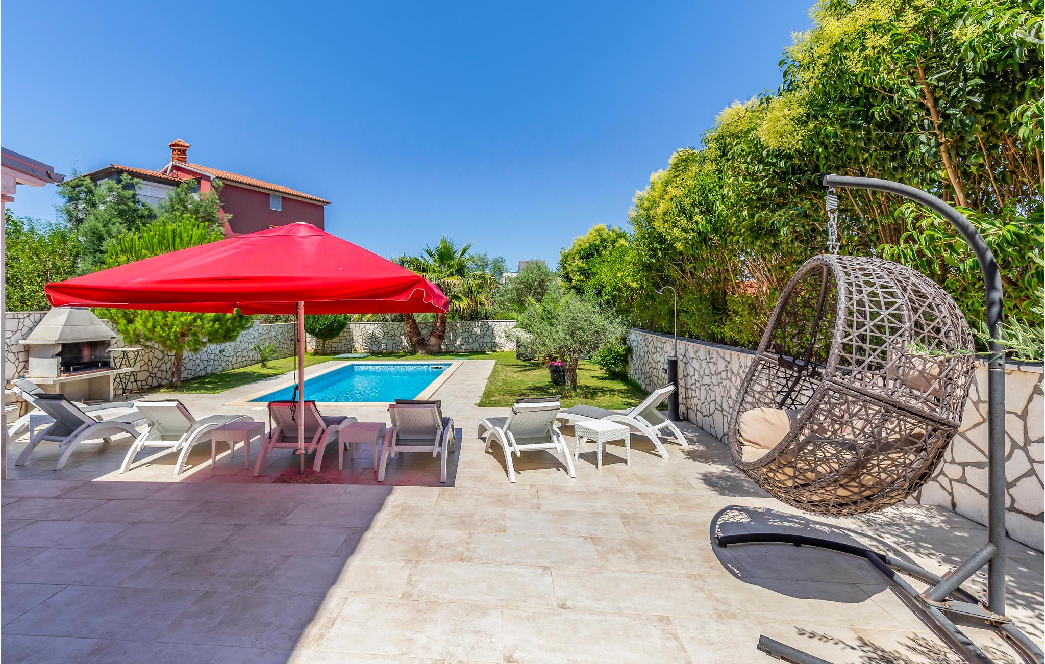 Im kleinen Dorf Volme, nahe der beliebten Touristenorte Banjole, Pomer und Premnatura befindet sich dieses wunderbare Ferienhaus mit Pool. Auf dem umzäunten und gepflegten Grundstück erwarten Sie ein erfrischender Pool sowie Terrasse, auf der Sie mit Familie und Freunden grillen und eine unbeschwerte Zeit erleben. Im Erdgeschoss befinden sich der großzügige Wohn- und Essbereich mit Küche, eine zusätzliche Toilette und ein Schlafzimmer während im Obergeschoss noch drei weitere Schlafzimmer sind. Jedes Schlafzimmer verfügt über ein eigenes Badezimmer, Fernseher und Klimaanlage. Im nahegelegenen Kap Kamnjak gibt es viele Naturstrände und Pinienwälder und in den Sommermonaten werden nächtliche Radtouren bei Vollmond organisiert.