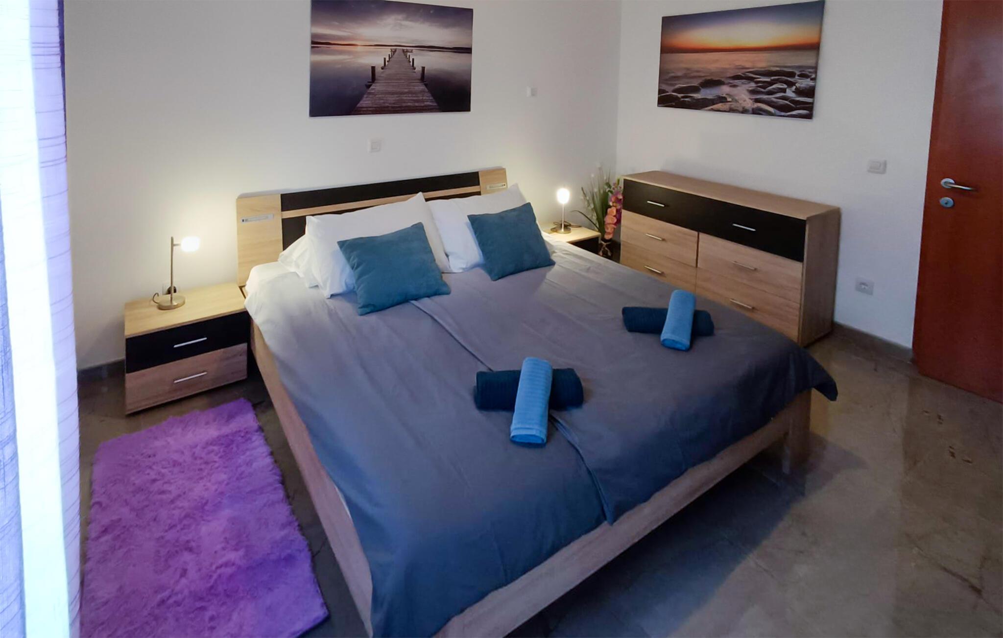 Die Wohnung befindet sich im Erdgeschoss eines kleinen Mehrfamilienhauses mit acht Wohneinheiten und einem großen, gemeinsamen Pool und Grill im Hof.