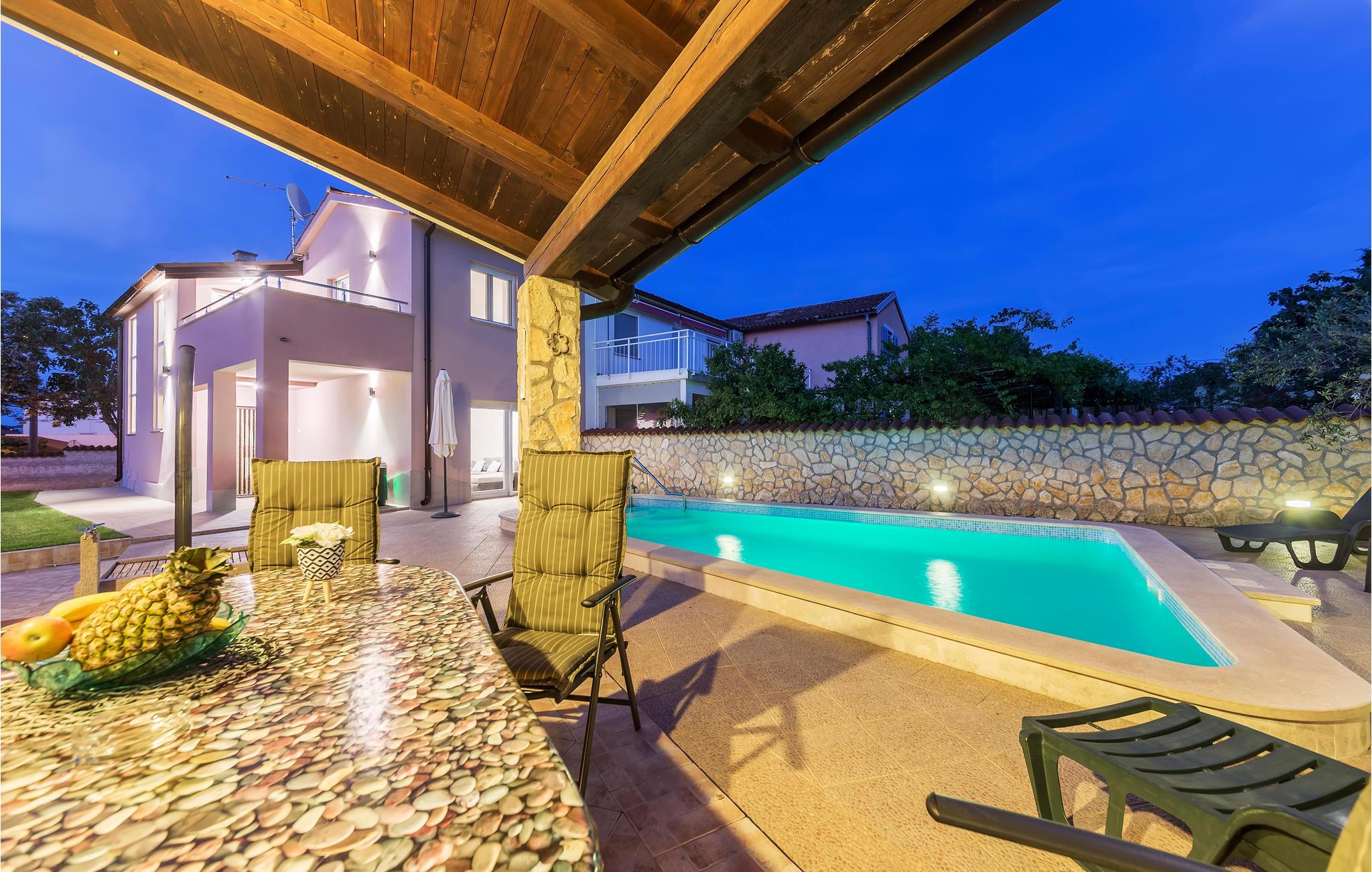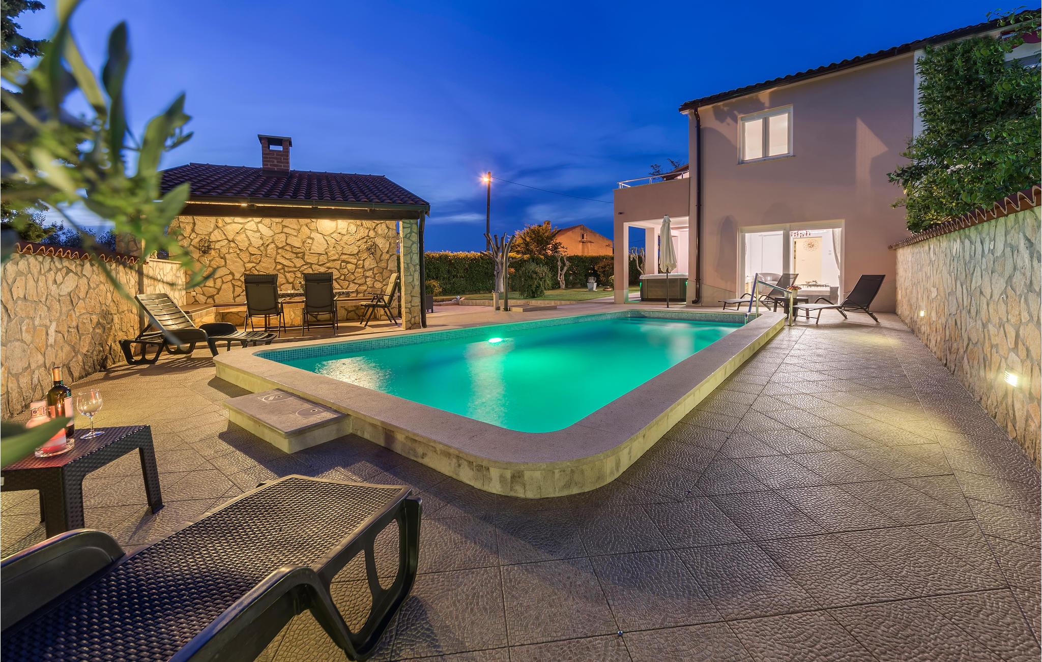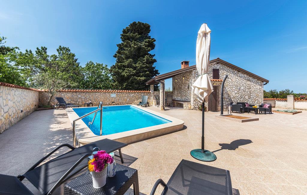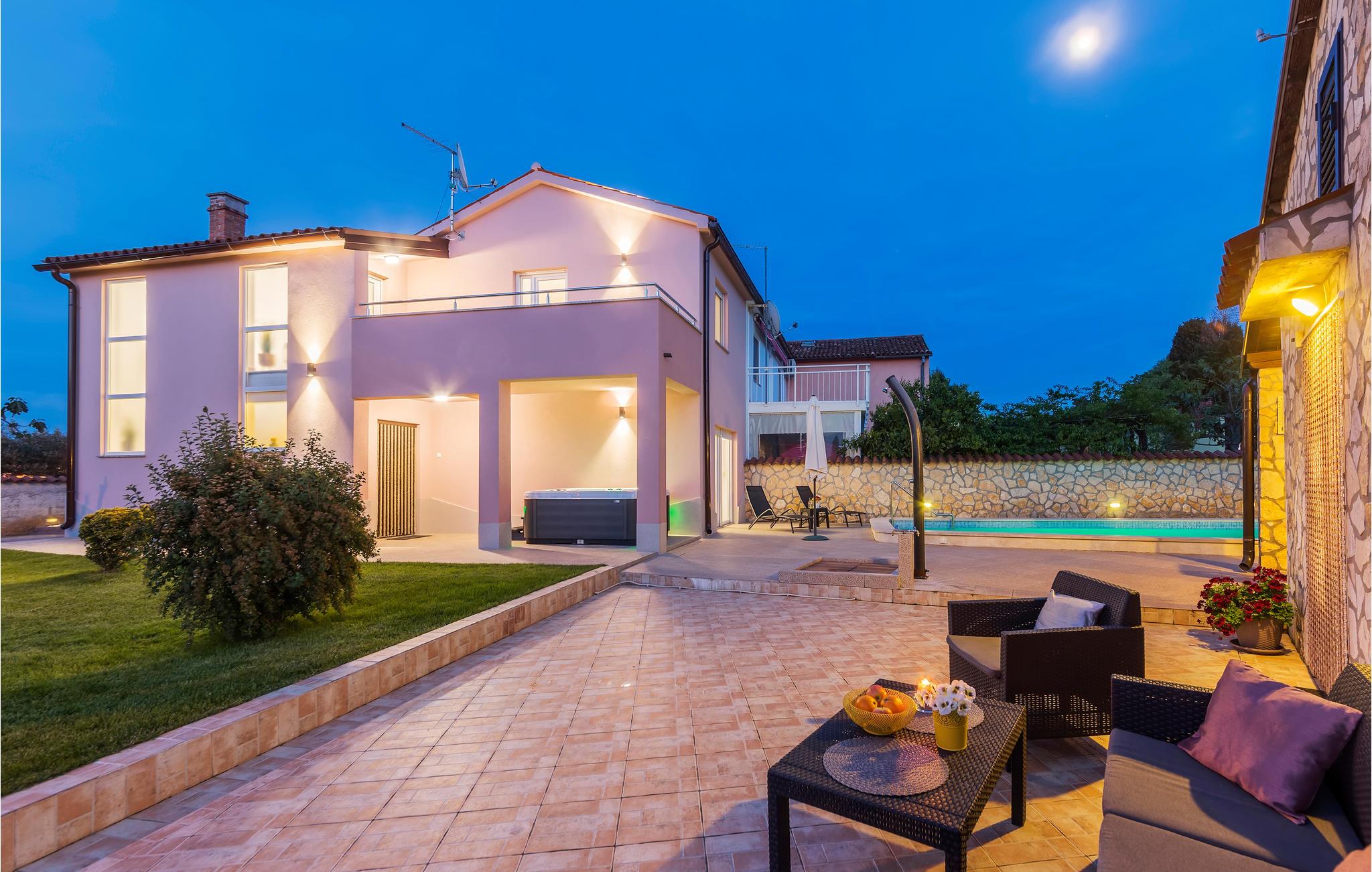 Dieses wunderschöne Ferienhaus befindet sich im kleinen Banjole, in der Nähe von Pula. Es wurde 2010 komplett renoviert. Die Innenräume sind gemütlich und sorgfältig eingerichtet. Die Küche ist modern und gut ausgestattet. Der schöne Garten ist mit verschiedenem Gewächsen bepflanzt und mit gepflegten Rasenflächen belegt. Dabei ist er mit einer Mauer komplett geschlossen und bietet ein ungestörtes Urlaubserlebnis. Im Garten steht ein Swimmingpool zur Verfügung und lädt zur Abkühlung ein. Hier finden Sie auch einen Gesellschaftsraum - Konoba, der mit einem Kamin und kleiner Teeküche ausgestattet ist. Er eignet sich sehr gut für gemeinsame Abendessen, die Sie auf dem Steingrill im Garten vorbereiten und dann in dieser geselligen und gelassenen Atmosphäre genießen können. In Banjole gibt es zahlreiche Buchten mit Kieselstränden und die Tauchschule im Ort bietet Ihnen die Möglichkeit, die Unterwasserwelt zu erkunden. Unternehmen Sie einen Stadtbummel in Pula und besuchen Sie die zahlreichen Sehenswürdigkeiten aus der Römerzeit.