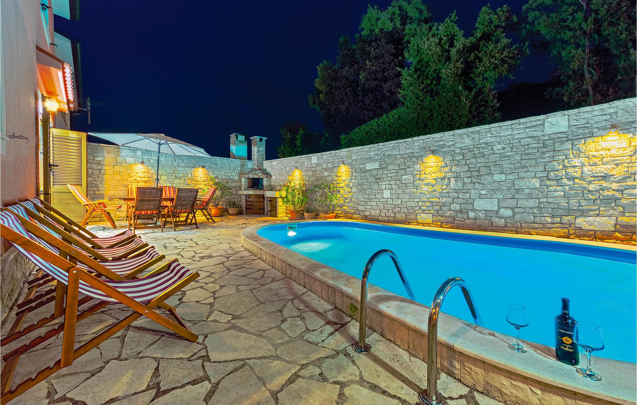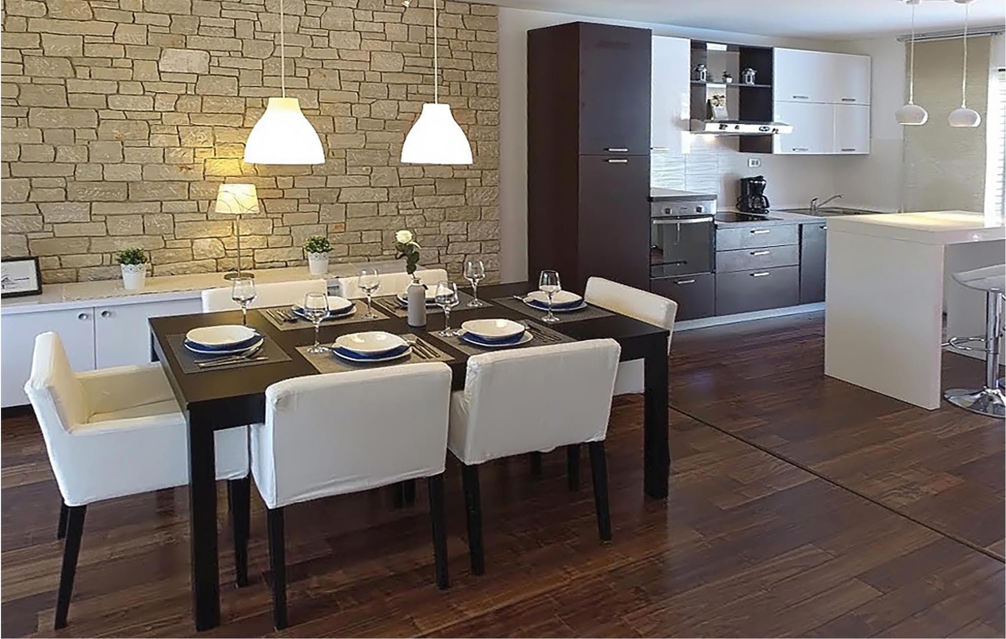 In einem ruhigen Viertel von Banjole befindet sich dieses wunderbare Reihenhaus mit Pool. Ein Vorzug dieses Ferienhauses ist sicherlich die gute Lage, denn in nur fünf Gehminuten erreichen Sie schöne Strände und Restaurants. Die Innenräume sind modern eingerichtet und im ersten Stock befinden sich die Schlafzimmer, im Erdgeschoss liegen das Wohnzimmer und die Küche mit Ausgang zum Garten und Pool. Der Garten ist eingezäunt. Leckere Spezialitäten werden in den ausgezeichneten Restaurants und Konobas von Banjole angeboten und unumgänglich ist ein Besuch des römischen Amphitheaters in Pula, wo viele Sommerkonzerte nationaler und internationaler Stars stattfinden.
