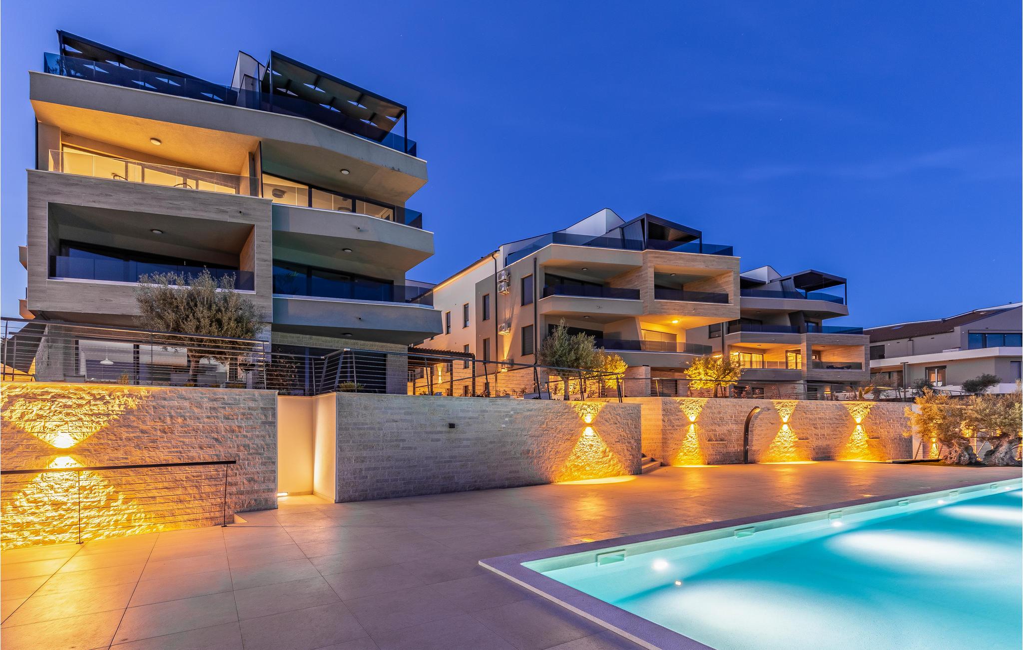 An heißen Tagen bietet der gemeinschaftlich genutzte Außenpool Badespaß und Abkühlung. Zur Wohnung gehören auch zwei Terrassen, sodass Sie immer einen angenehmen Platz zum Lesen oder für die erste Tasse Kaffee am Morgen haben.