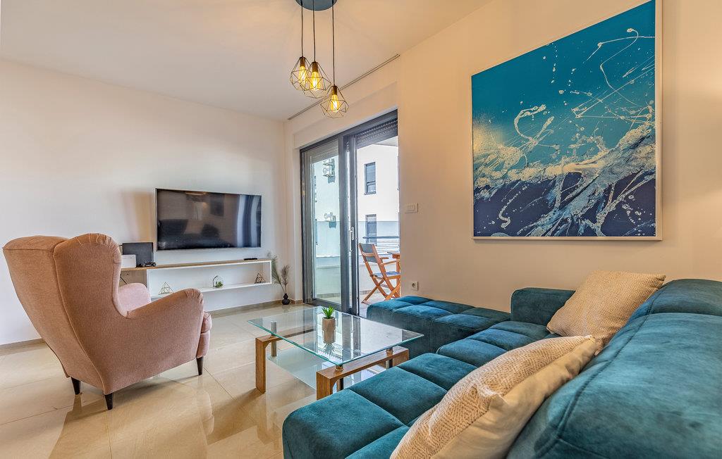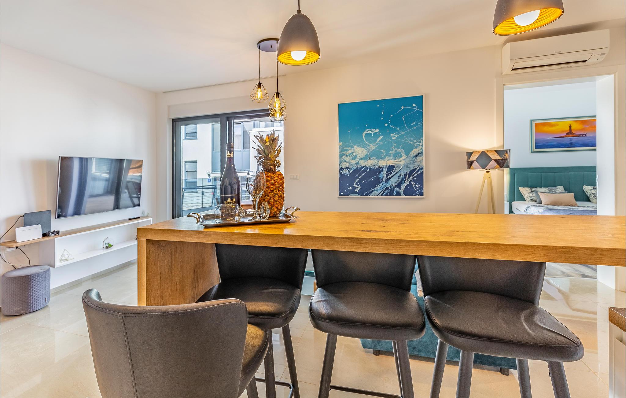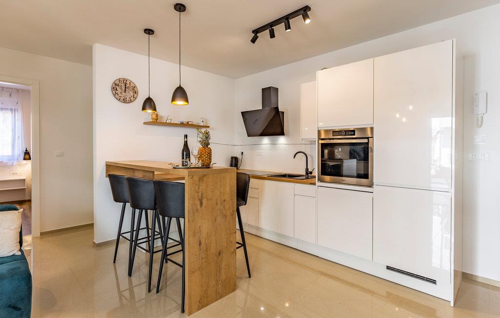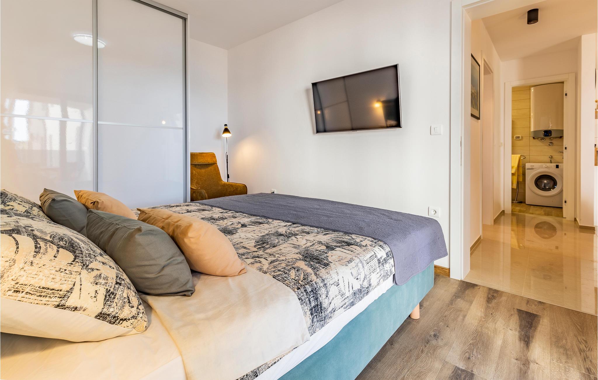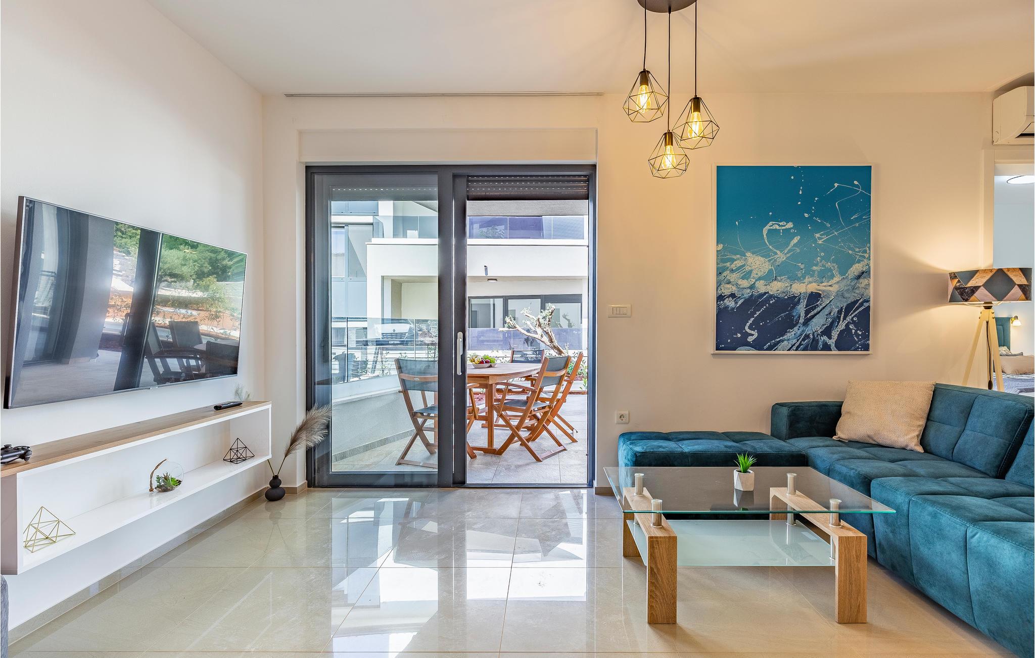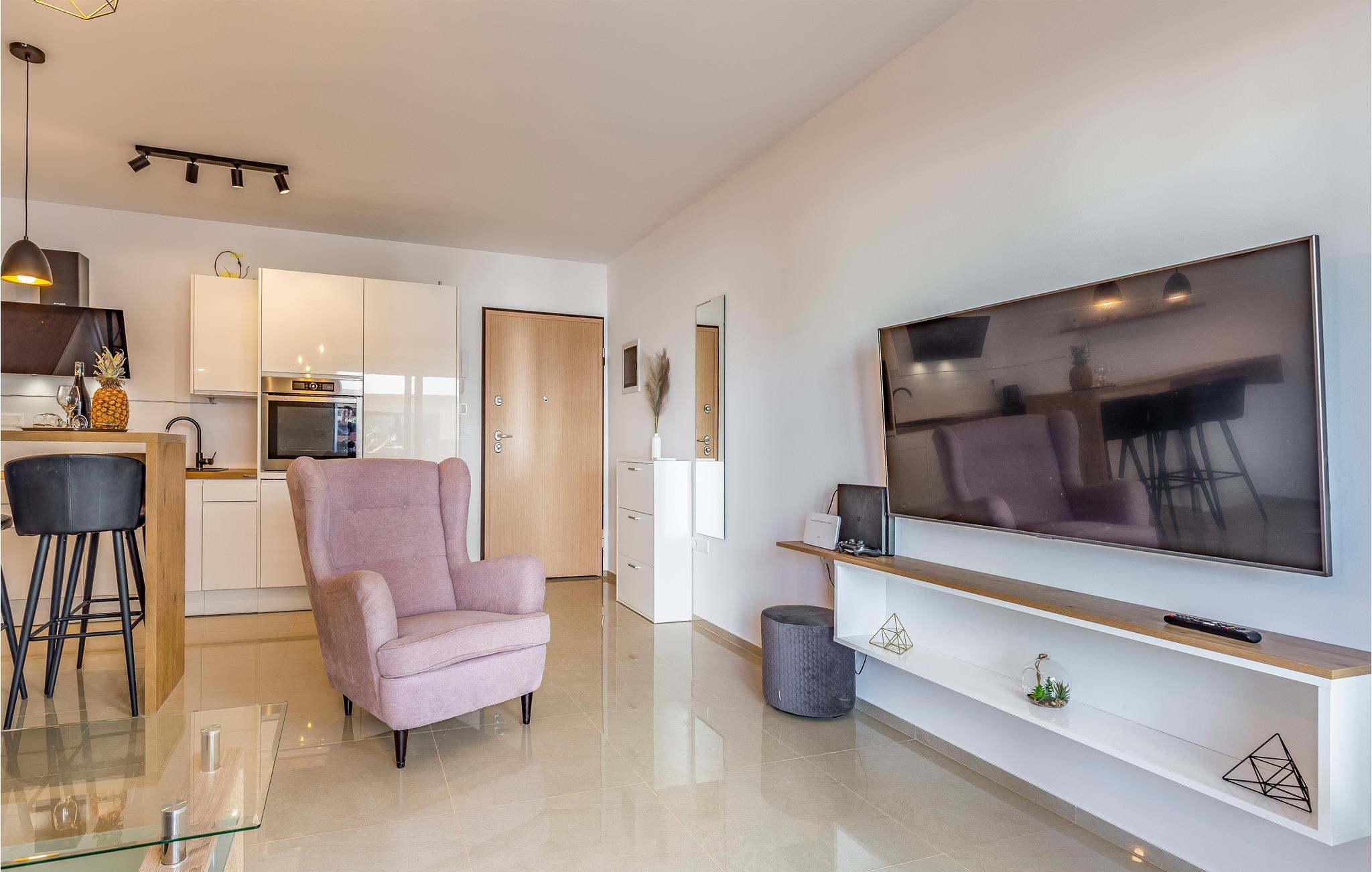 Diese Ferienwohnung liegt in erster Reihe zum Meer und bietet einen wunderschönen Meerblick von der Terrasse. Das Herz der Wohnung ist der helle Wohnbereich mit offener Küche und Sofa, wo Sie gut zusammen kochen und auf dem Sofa entspannen können. Ihnen stehen außerdem zwei Schlafzimmer zur Verfügung.