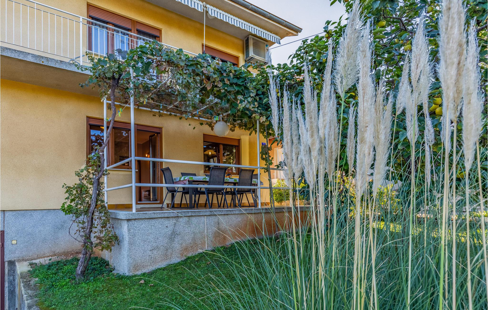 Verbringen Sie erholsame Ferien in dieser geräumigen Ferienwohnung, die mit allem ausgestattet ist, was Sie für Ihre Entspannung brauchen. Entspannen Sie im großen Wohnraum und besprechen beim Frühstück auf der Terrasse Ihre Ausflüge und Aktivitäten für den anstehenden Tag. Genießen Sie den Schatten, den bewachsenen Pergola und naschen Sie ein paar Trauben. Auf dem großen Grundstück können Ihre Kinder toben und auf dem großen Rasen Fußball spielen.