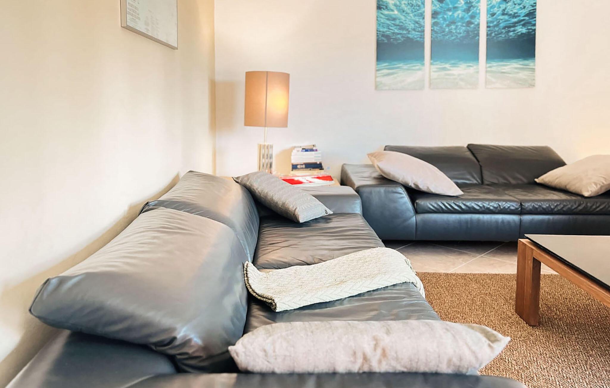 Lassen Sie sich in Ihrem Haus von der warmen und wohnlichen Atmosphäre empfangen. Der großzügige Wohnbereich bietet mit mehreren Sofas viel Platz für gemeinsame Stunden. Machen Sie es sich bequem und verbringen Sie entspannte Abende im Wohnzimmer, während Sie einen Film schauen oder den Tag ruhig ausklingen lassen. Die schöne Küche ist funktional ausgestattet und bietet alles, was Sie für die Zubereitung Ihrer Urlaubsgerichte benötigen.