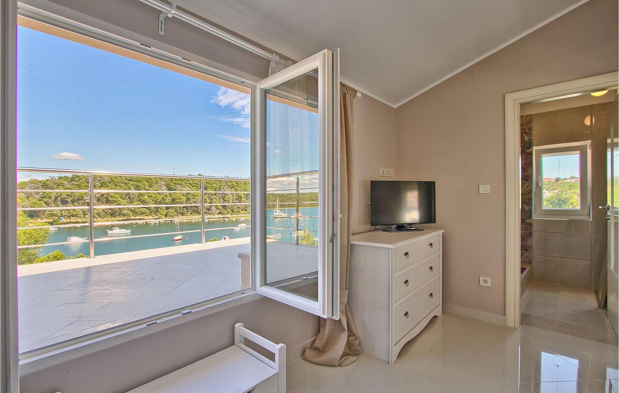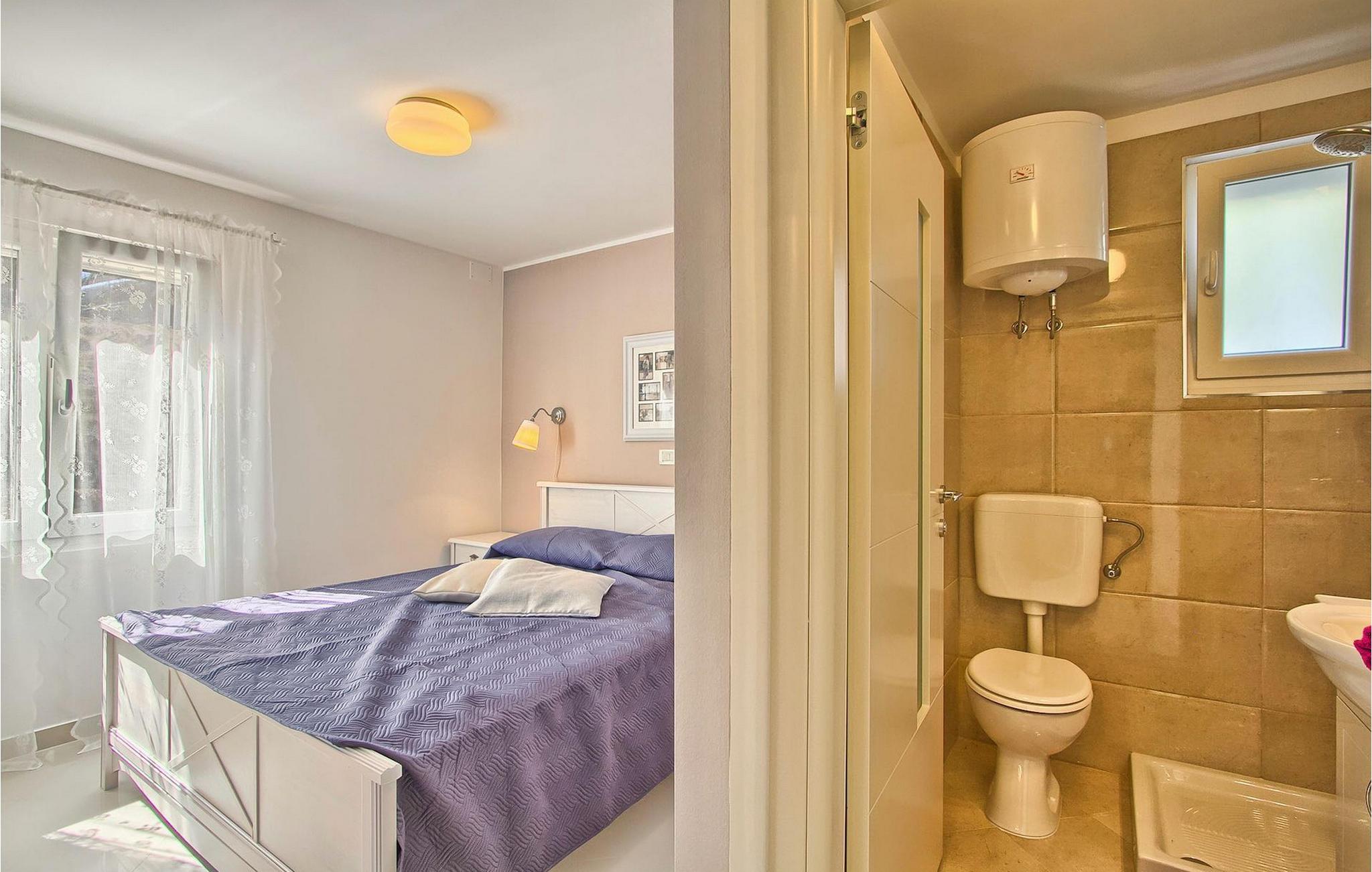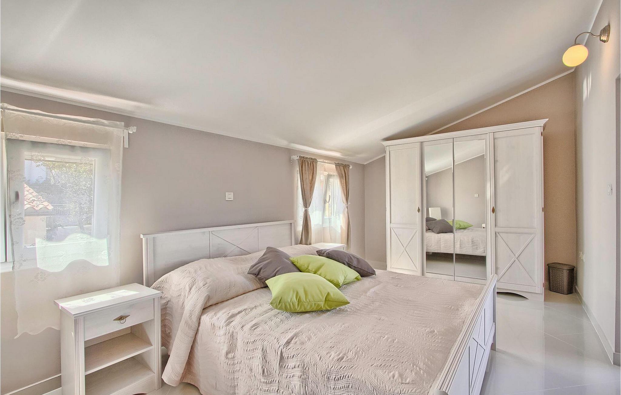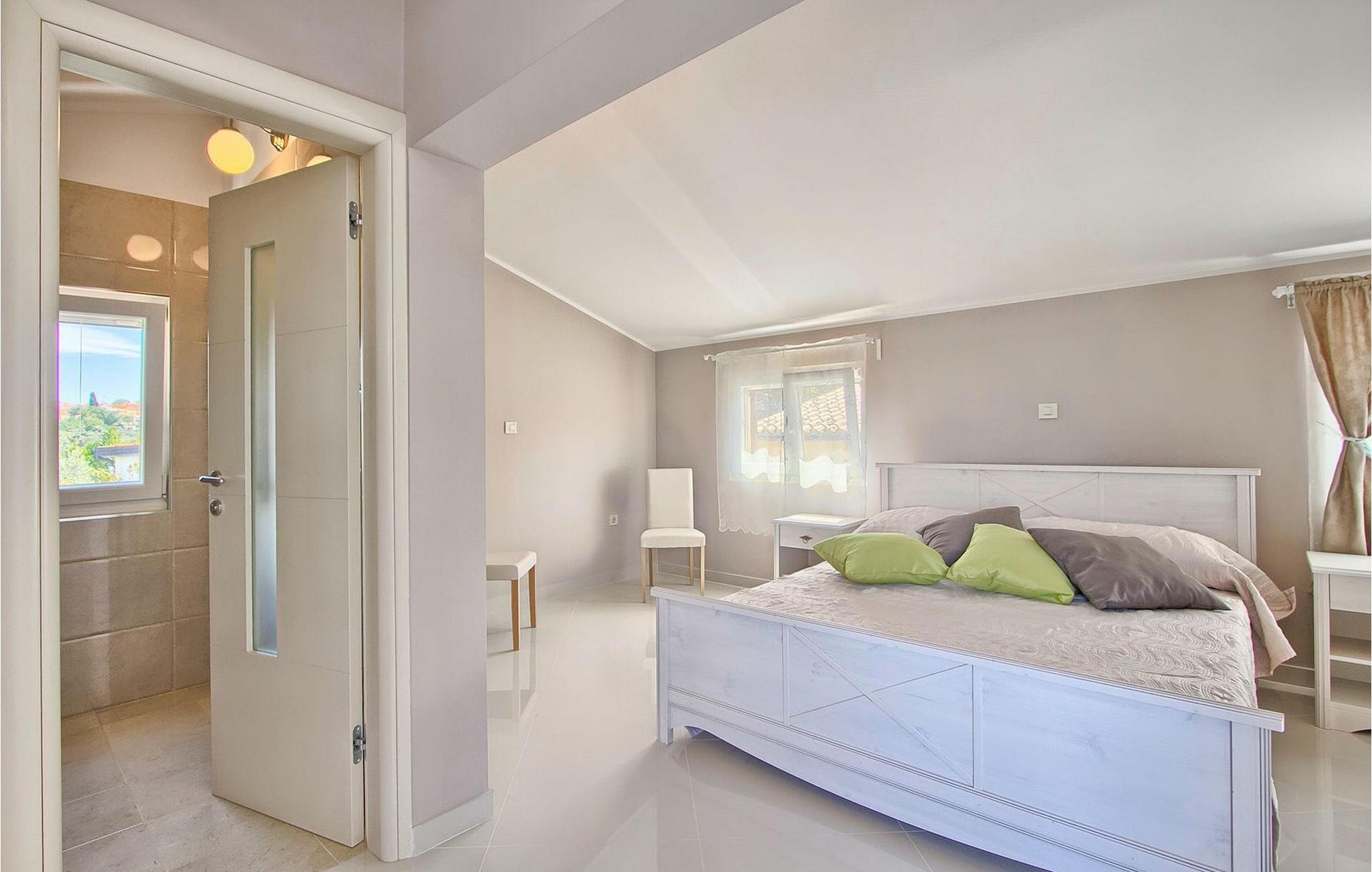 Die fünf geschmackvoll eingerichteten Schlafzimmer verteilt auf zwei Etagen bieten Platz für bis zu 8+1 Gäste. Der Innenbereich ist hell und luftig gestaltet, durch die Holzbalken trotzdem gemütlich. Das schicke Wohnzimmer, der Essbereich und die komplett ausgestattete Küche sind miteinander verbunden. Im Erdgeschoss befinden sich zwei Schlafzimmer mit Doppelbett, eines davon mit eigenem Bad mit Dusche, ein Badezimmer und eine Toilette. Im Obergeschoss finden Sie zwei Schlafzimmer mit Doppelbett und jeweils eigenem Bad mit Dusche sowie ein Einzelzimmer. Zudem verfügt ein Doppelzimmer im Obergeschoss über eine private Terrasse mit wunderschönem Meerblick. Der Außenbereich ist gut gestaltet und geräumig. Einige verschiedene Ebenen und getrennte Terrassen lassen Möglichkeiten, sich zurückzuziehen und die Privatsphäre zu genießen oder gemeinsame Stunden mit den Liebsten zu verbringen. Den wundervollen Pool werden Sie an heißen Sommertagen nur sehr ungern verlassen, denn hier lässt es sich mit dem fantastischen Blick auf die Bucht Soline mit Ihren Yachten und Fischerbooten und dazu einem kühlen Getränk in der Hand einfach prima entspannen! Falls Sie doch mal der Wunsch nach Strand überkommt, so ist dieser nur 30m entfernt. Wenn Sie Gruppenaktivitäten lieben, stehen Ihnen ein Tisch für Tischtennis und Kicker zur Verfügung.