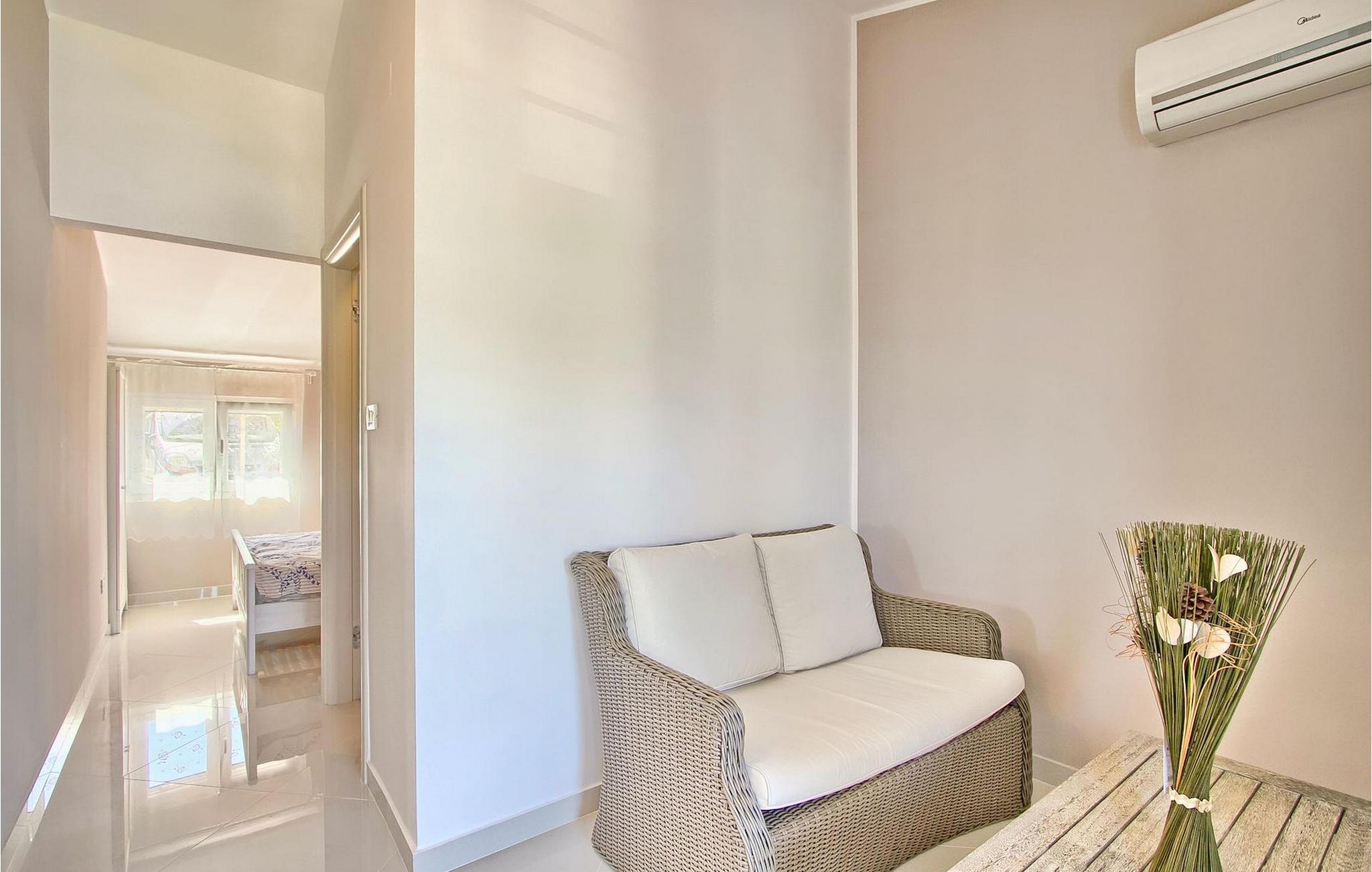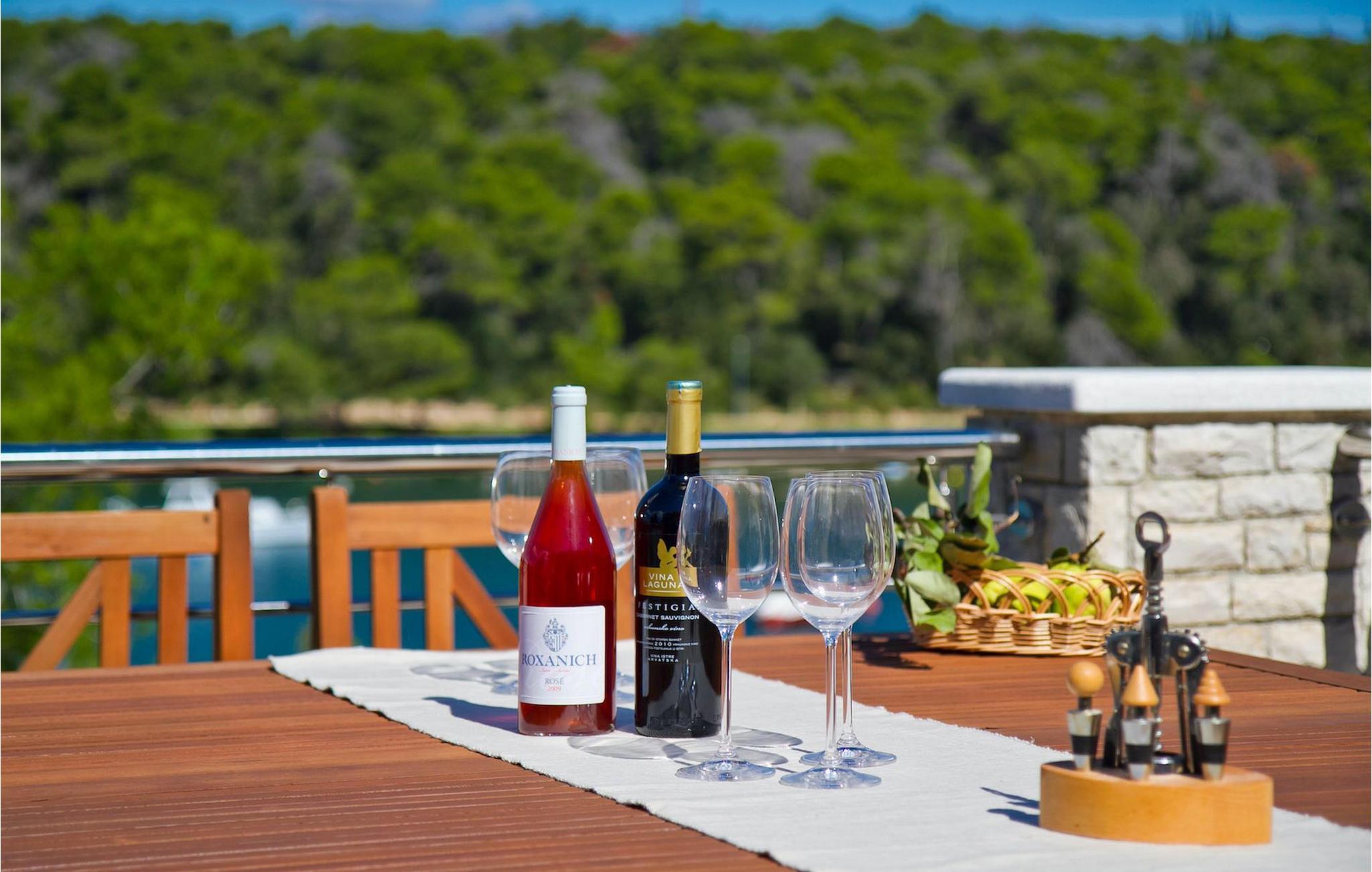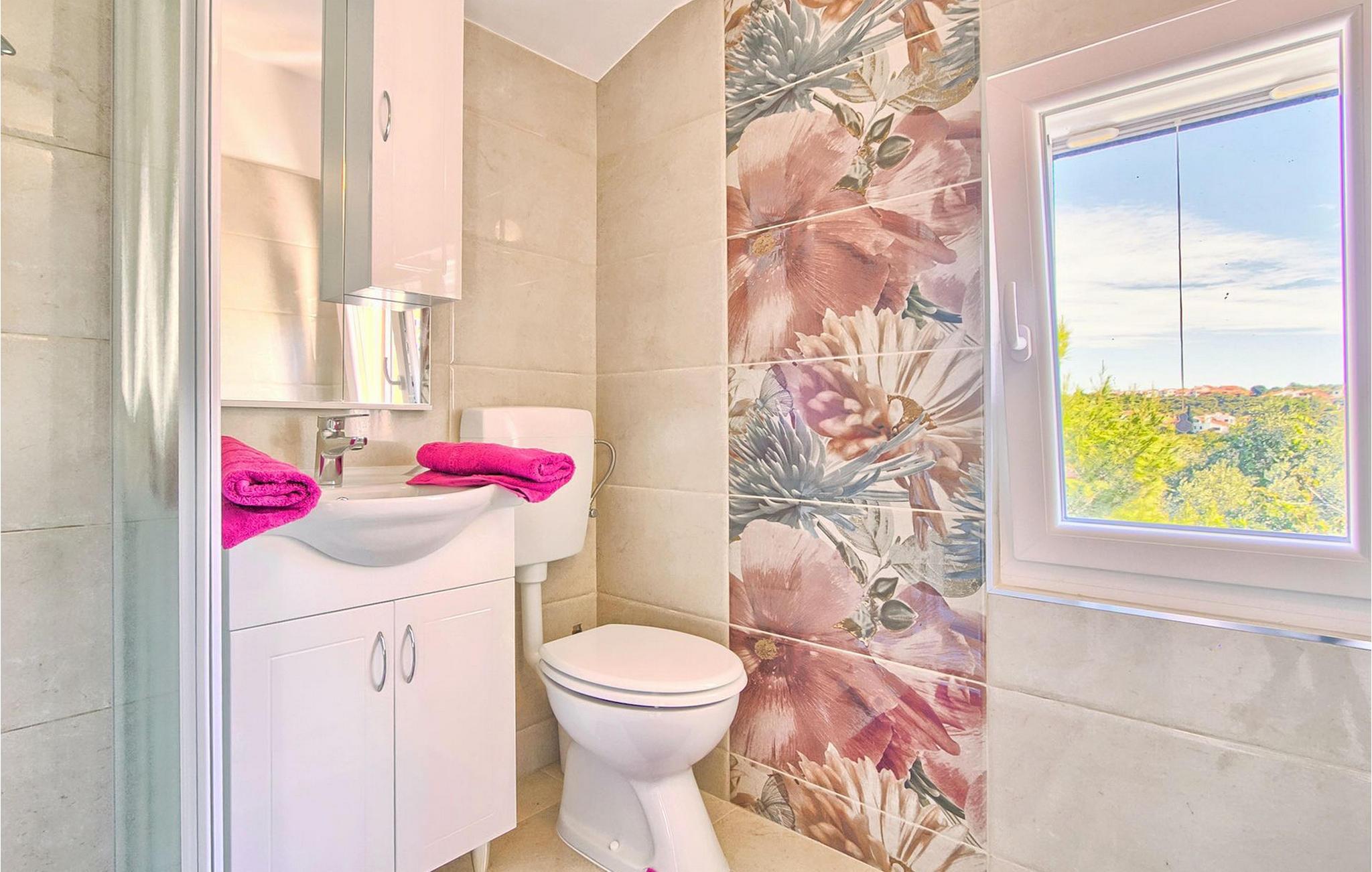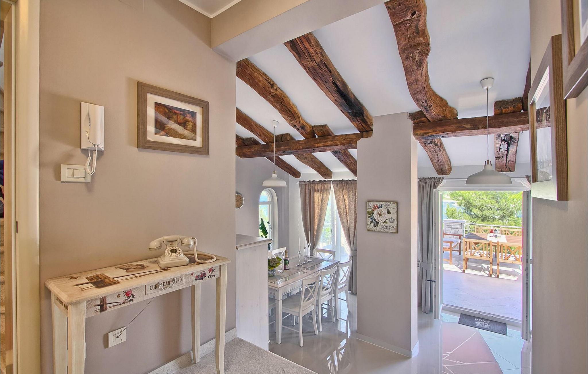 Die fünf geschmackvoll eingerichteten Schlafzimmer verteilt auf zwei Etagen bieten Platz für bis zu 8+1 Gäste. Der Innenbereich ist hell und luftig gestaltet, durch die Holzbalken trotzdem gemütlich. Das schicke Wohnzimmer, der Essbereich und die komplett ausgestattete Küche sind miteinander verbunden. Im Erdgeschoss befinden sich zwei Schlafzimmer mit Doppelbett, eines davon mit eigenem Bad mit Dusche, ein Badezimmer und eine Toilette. Im Obergeschoss finden Sie zwei Schlafzimmer mit Doppelbett und jeweils eigenem Bad mit Dusche sowie ein Einzelzimmer. Zudem verfügt ein Doppelzimmer im Obergeschoss über eine private Terrasse mit wunderschönem Meerblick. Der Außenbereich ist gut gestaltet und geräumig. Einige verschiedene Ebenen und getrennte Terrassen lassen Möglichkeiten, sich zurückzuziehen und die Privatsphäre zu genießen oder gemeinsame Stunden mit den Liebsten zu verbringen. Den wundervollen Pool werden Sie an heißen Sommertagen nur sehr ungern verlassen, denn hier lässt es sich mit dem fantastischen Blick auf die Bucht Soline mit Ihren Yachten und Fischerbooten und dazu einem kühlen Getränk in der Hand einfach prima entspannen! Falls Sie doch mal der Wunsch nach Strand überkommt, so ist dieser nur 30m entfernt. Wenn Sie Gruppenaktivitäten lieben, stehen Ihnen ein Tisch für Tischtennis und Kicker zur Verfügung.