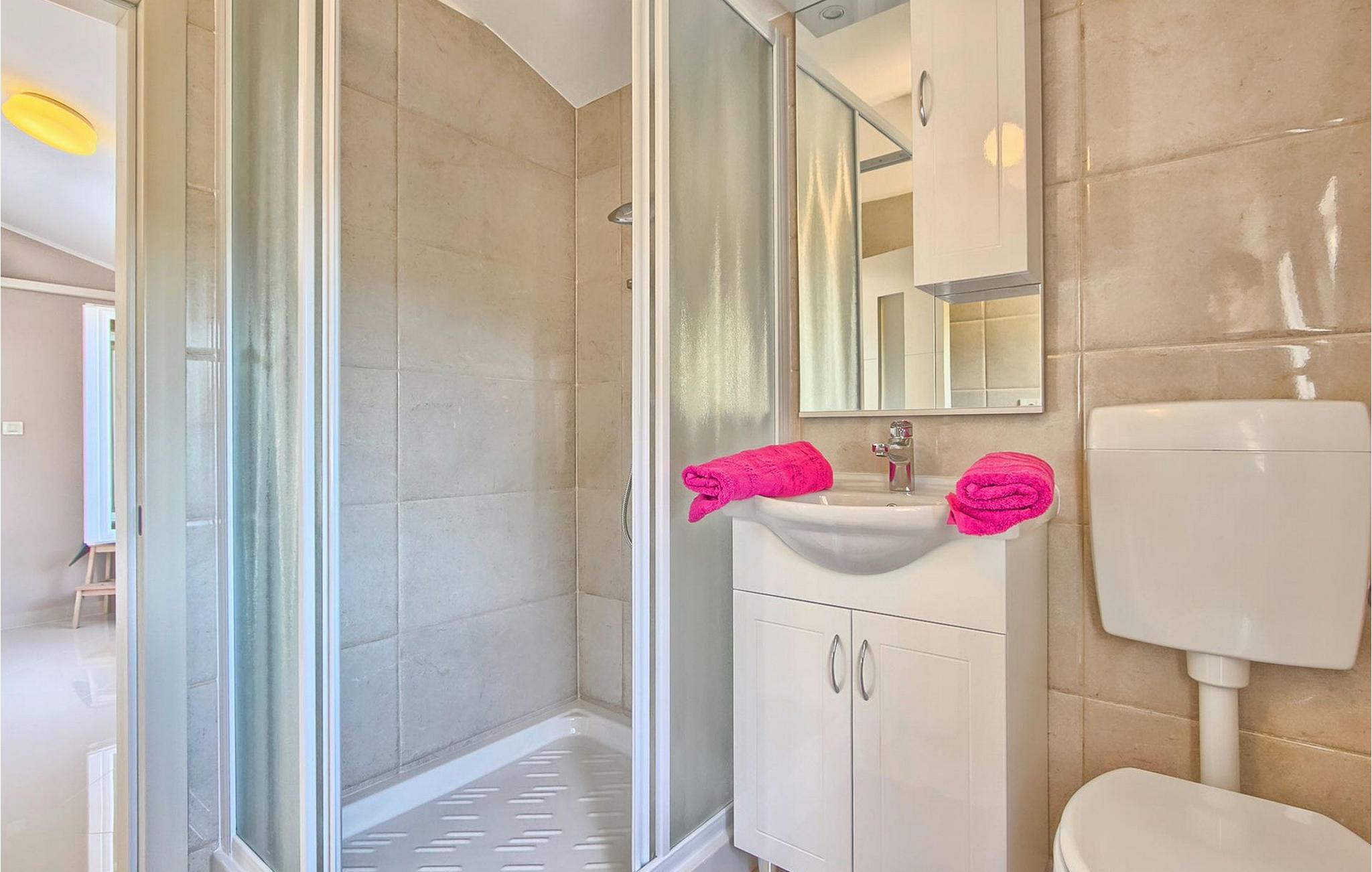 - WC mit warmem und kaltem Wasser, Dusche