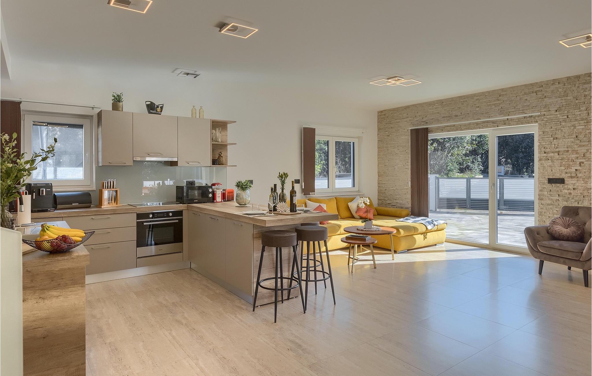 Betreten Sie ein wunderschön eingerichtetes Interieur, in dem Sie alles finden, was Sie für einen perfekten Urlaub benötigen.