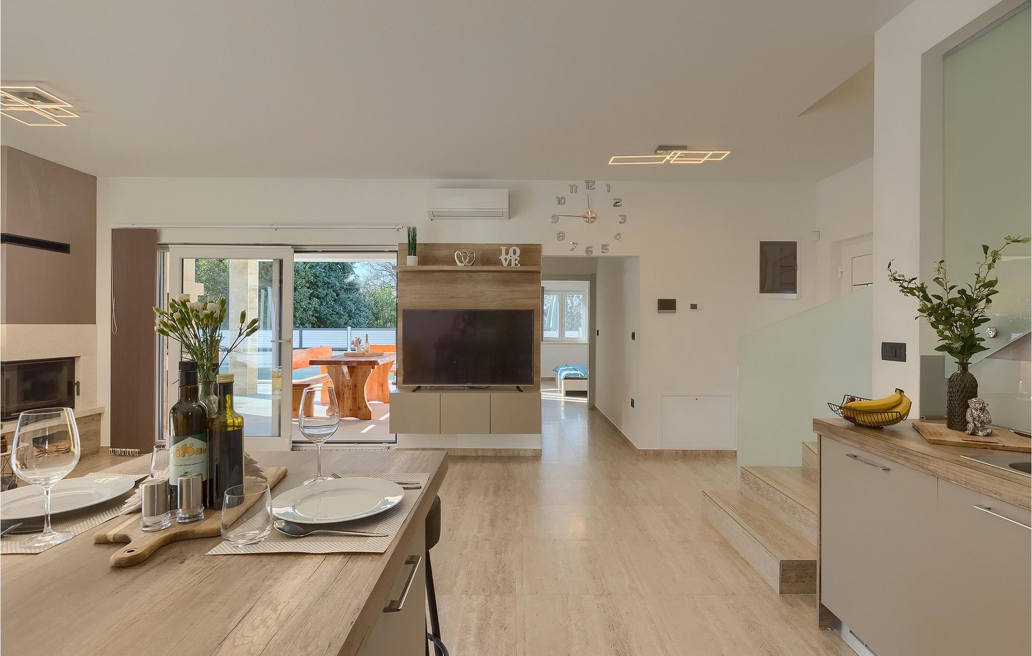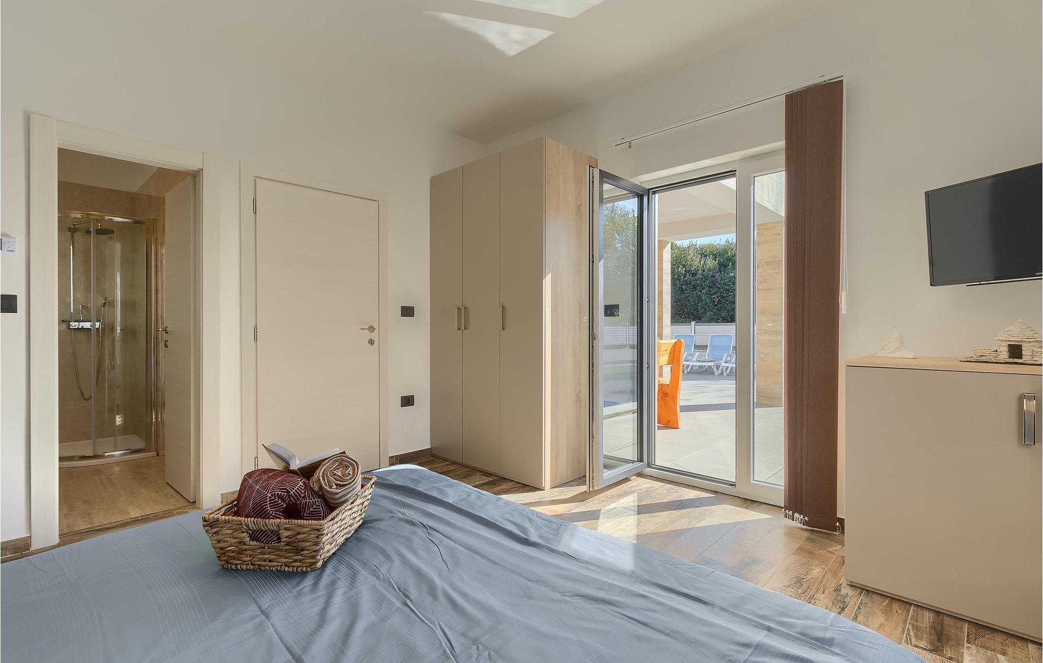 Für die jüngsten Gäste steht auch ein Trampolin zur Verfügung. Die Villa ist voll klimatisiert und es gibt einen privaten Parkplatz und Internetzugang. Die Villa Pervan liegt nur 300 m vom ersten Strand entfernt und ist die perfekte Wahl, um Ihrem Alltag zu entfliehen um einen wunderschönen Urlaub in Istrien zu verbringen.Die moderne Villa Pervan befindet sich in einem kleinen Dorf Banjole. Die Villa ist nur wenige Minuten von wunderschönen Kiesstränden und dem kristallklaren Meer entfernt. Die perfekte Lage der Villa Pervan bietet ihren Gästen die Möglichkeit, wunderschöne Orte zu besuchen ,wie z.B die größte istrische Stadt Pula , die für ihr atemberaubendes Kolosseum bekannt ist, ein altes Amphitheater aus dem 1. Jahrhundert. Der Naturpark Premantura und das Kap Kamenjak, bekannt für ihre unberührte Natur, befinden sich ebenfalls in der Nähe. Neben der kulturellen und historischen Schönheit, bietet Istrien ein einzigartiges gastronomisches Erlebnis. Hausgemachter istrischer Schinken, Wein und Fuzi sind nur einige der vielen gastronomischen Köstlichkeiten, die Istrien anbietet. So werden Sie die lokale mediterrane Küche wirklich erleben können. Auf der istrischen Halbinsel befindet sich auch einer der schönsten Nationalparks Europas - Brijuni. Der Nationalpark Brijuni ist nur eine zehnminütige Bootsfahrt vom Fischerdorf Fazana entfernt.