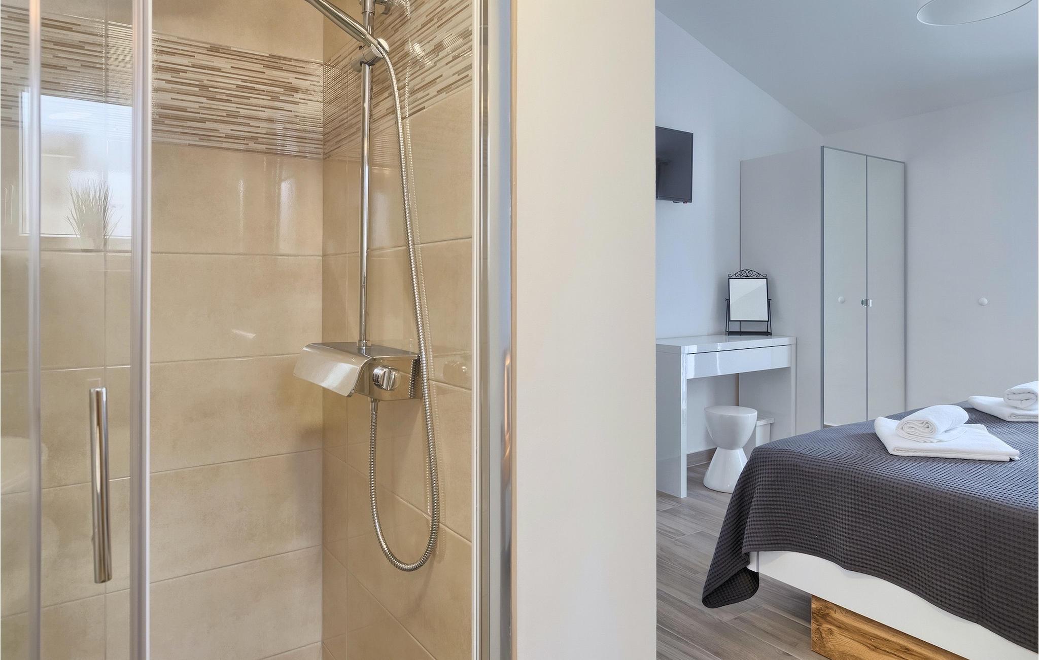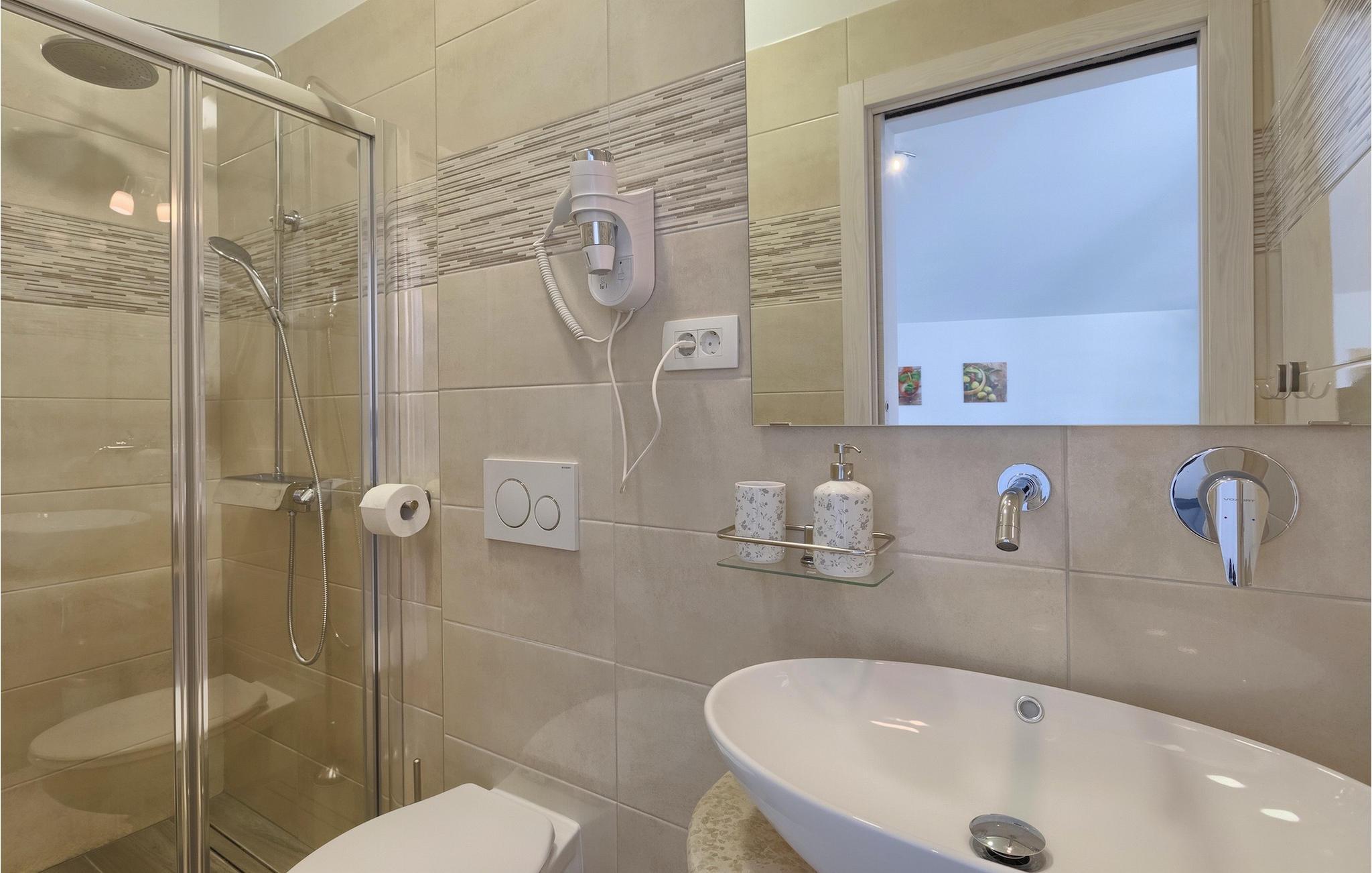 - WC mit warmem und kaltem Wasser, Dusche