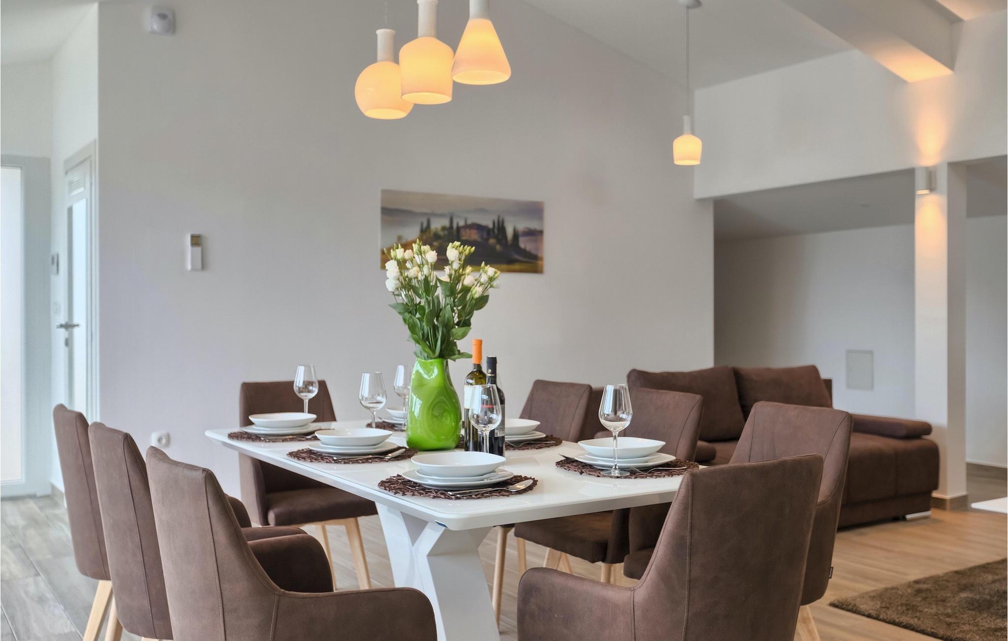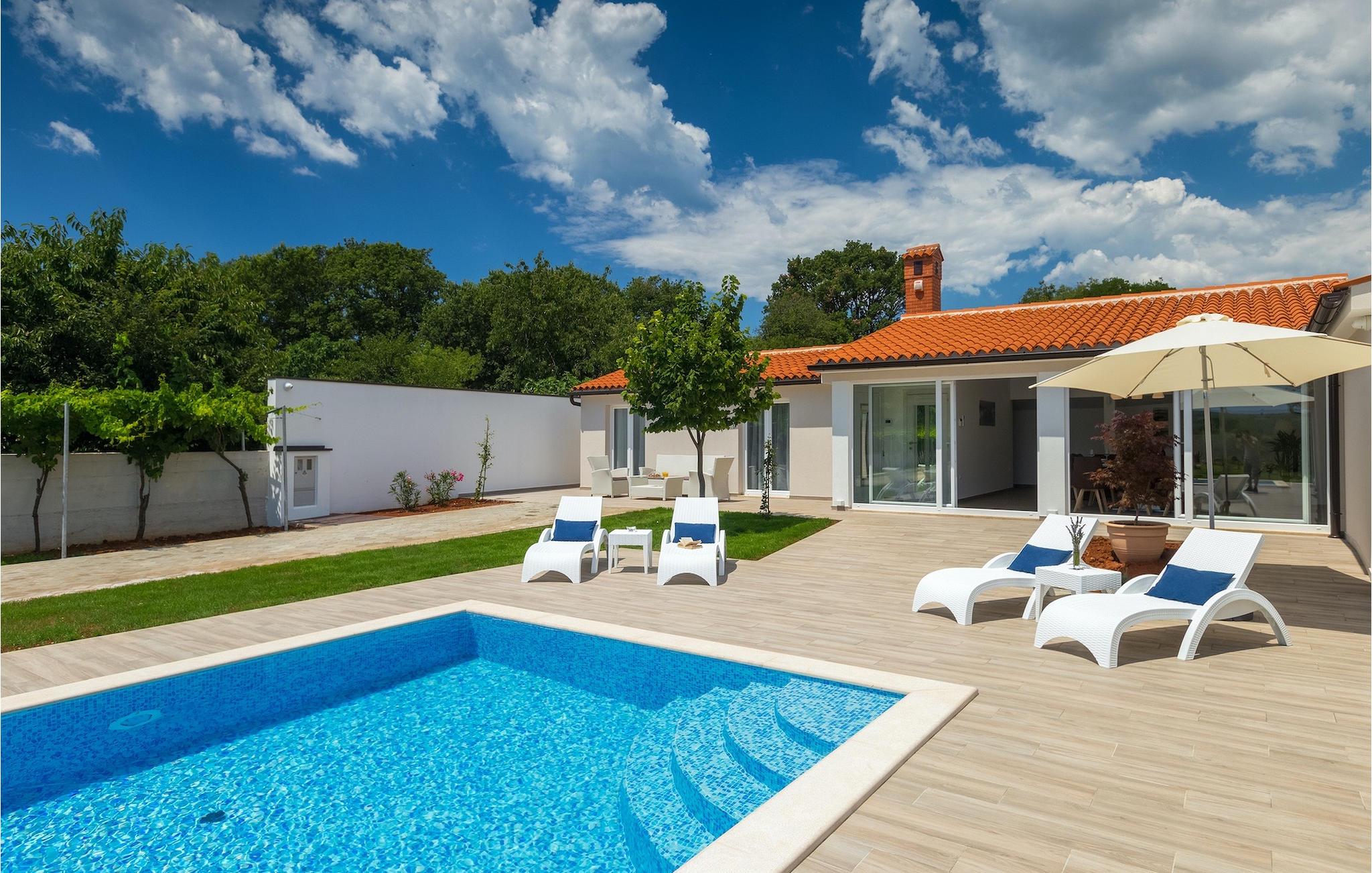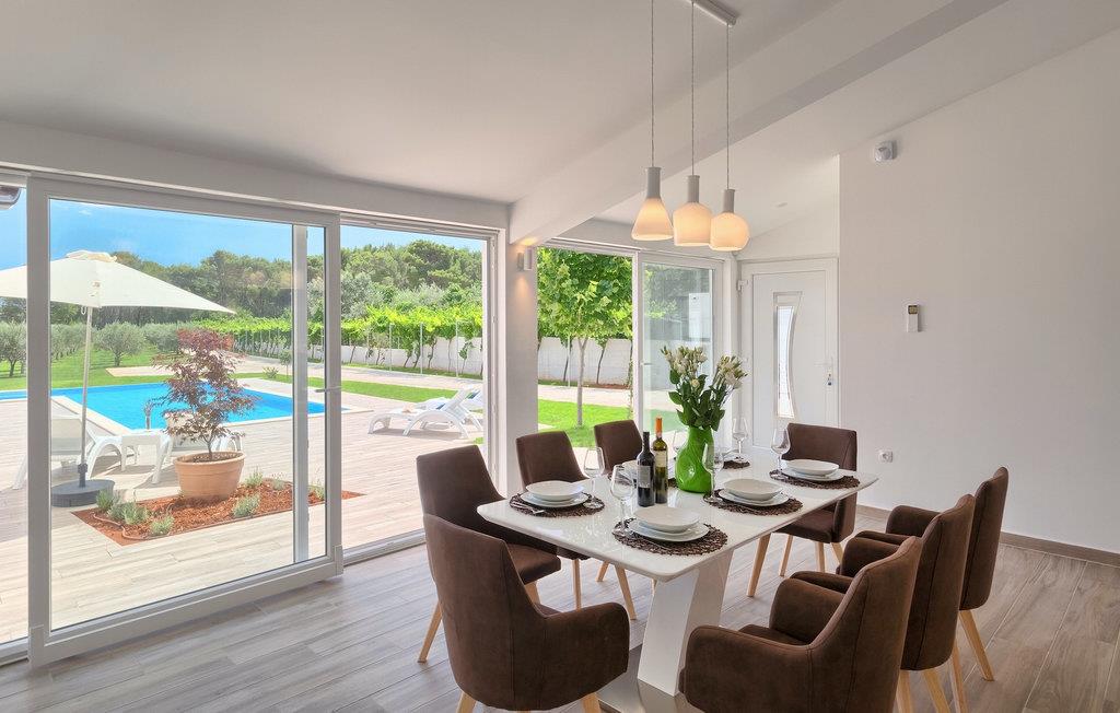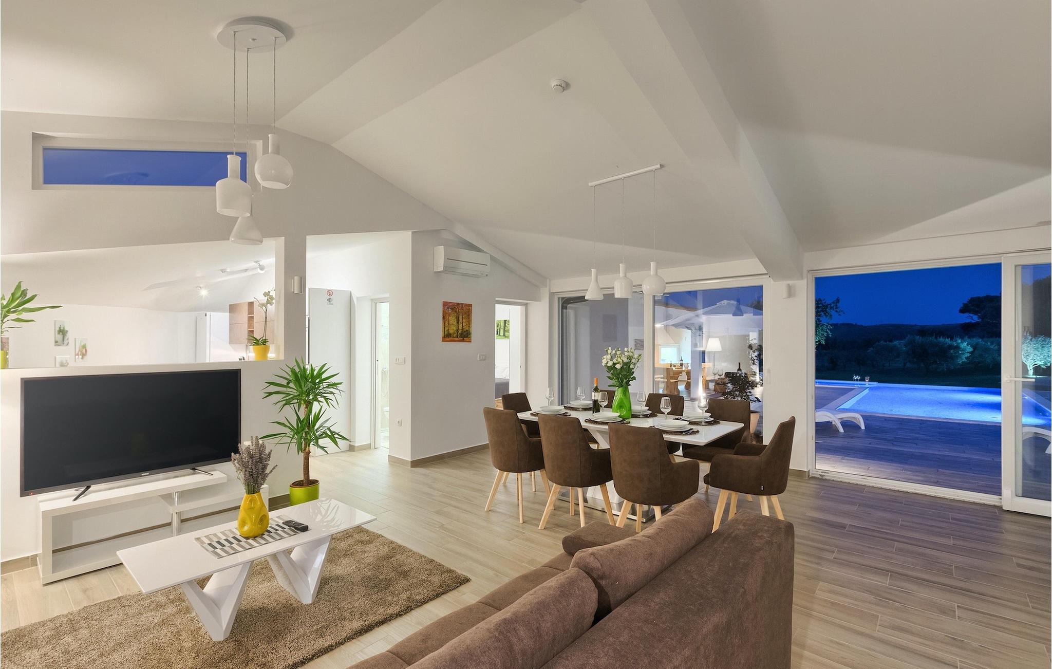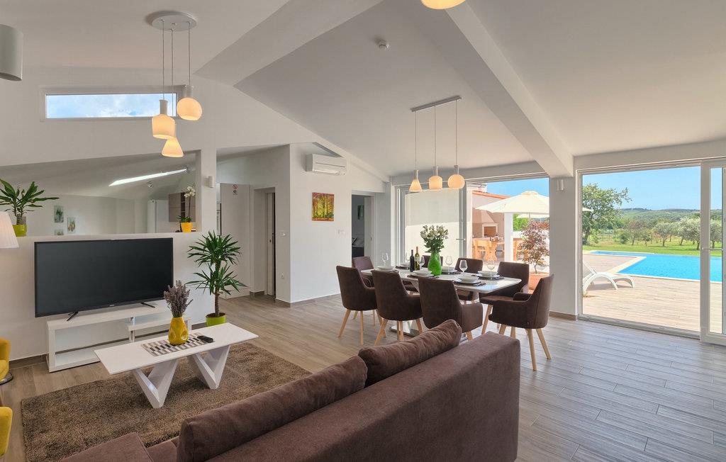 Die Villa MileManda befindet sich in der ruhigen Nachbarschaft Banjole, nur wenige Autominuten vom Stadtzentrum von Pula entfernt. Die Villa verfügt über 3 Schlafzimmer, die alle in einem romantischen und eleganten Stil eingerichtet sind, und kann bis zu 6+2 Gäste beherbergen. Alles ist in einem sehr warmen Stil gehalten und gibt Ihnen ein Gefühl von Zuhause. Der offene Wohnbereich besteht aus einem gemütlichen Wohnzimmer mit TV, einem Essbereich mit großem Tisch, einer modernen und voll ausgestatteten Küche und einem separaten Badezimmer. Alle Schlafzimmer befinden sich im Erdgeschoss und verfügen über ein eigenes Badezimmer, Klimaanlage und Fernseher. Vom Wohnbereich aus haben Sie direkten Zugang zum Außenbereich, der Sie sprachlos machen wird. Wenn Sie Ihren Urlaub in der Sonne verbringen möchten, finden Sie vor der Villa einen großen und sehr einladenden Pool mit Hydromassage. Fahrräder stehen zu Ihrer Verfügung, um die weitere Umgebung zu entdecken und zu erkunden. Die Villa bietet Ihnen viele weitere Möglichkeiten, aktiv zu bleiben, wie Basketball, Volleyball und Badminton. Für besondere Familienmomente bietet die Villa einen großen überdachten Essbereich im Freien mit Gasgrill, der der perfekte Ort für ein Familientreffen ist. Ein großer Olivengarten ist der perfekte Ort, um die Vorteile dieser ruhigen Lage zu genießen, wo Sie sich entspannen können, während Sie Ihr Lieblingsbuch lesen.Die Villa MileManda befindet sich in der Nähe von Pula, in Banjole, bekannt für seine schönen Strände und Promenaden am Meer. Zum Zentrum von Pula benötigen Sie ca. 10 Minuten mit dem Auto. Wir empfehlen Ihnen, einen Spaziergang durch die historische Stadt zu machen und die zahlreichen Gebäude aus der römischen Zeit zu besichtigen, wie z.B. das Amphitheater und den Augustustempel. Alle Naturliebhaber werden von der unberührten Natur von Premantura und dem Brijuni-Nationalpark begeistert sein, die sich unweit der Villa befinden. Premantura ist der südlichste Teil von Istrien, ist sehr felsig und verbirgt viele unberührte Strände und zahlreiche Radwege. Der Nationalpark Brijuni ist eine Gruppe von Inseln und Inselchen, die mit dichtem Kiefernwald bedeckt sind. Auf der Insel finden Sie zahlreiche archäologische Stätten, einen Golfplatz, ein Museum und einen Zoo. Gastronomie-Liebhaber sollten unbedingt das Landesinnere Istriens besuchen und viele traditionelle Gerichte wie Boskarin, Trüffel und istrische Nudeln probieren. Nach einem leckeren Mittagessen, machen Sie einen Spaziergang durch die mittelalterlichen Städte wie Motovun, Buzet und Groznjan.