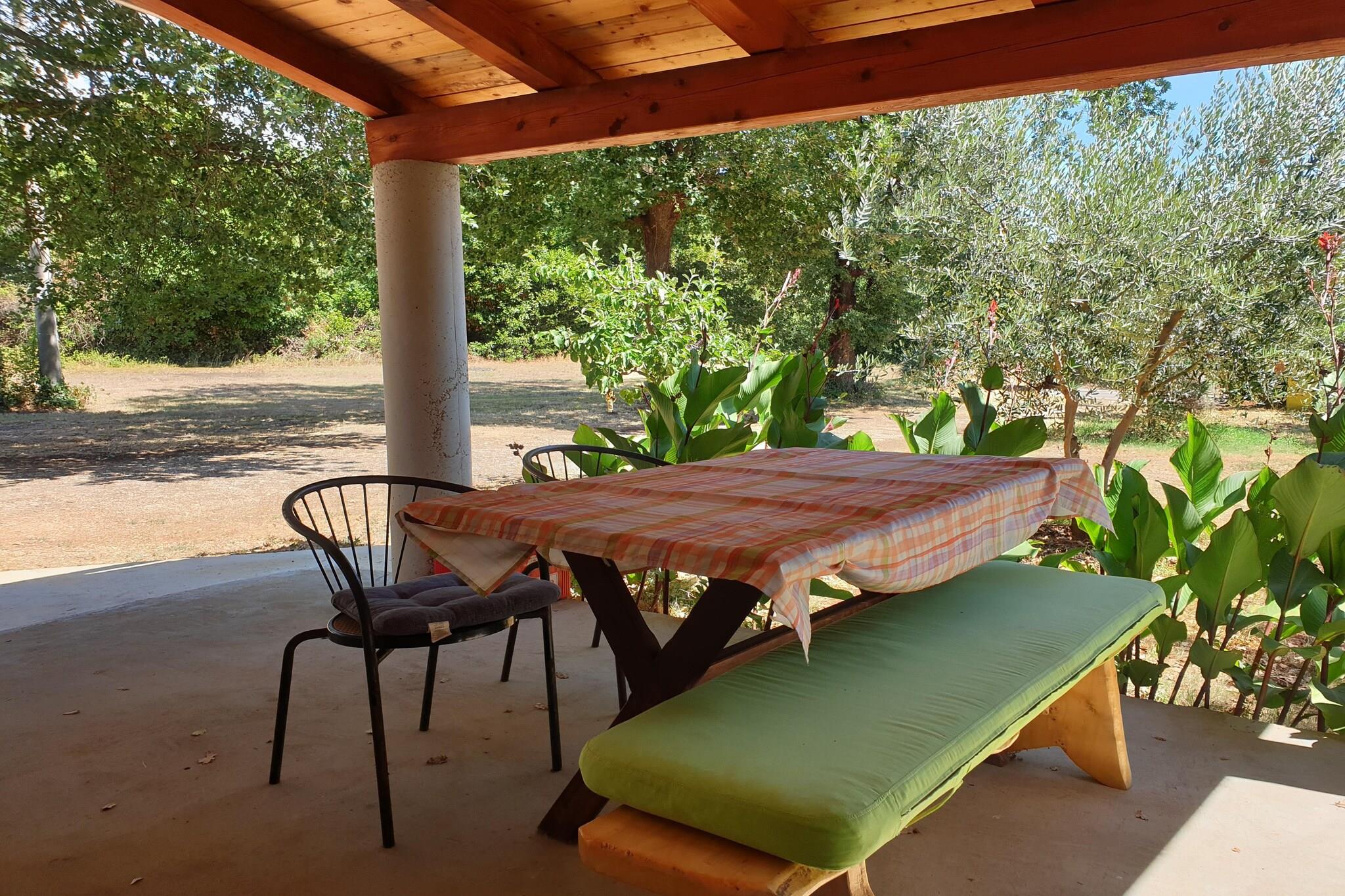 Ground floor: (Living room(double sofa bed), Large kitchen, bedroom(double bed), bathroom, balcony or terrace) air conditioning, BBQ(shared with other guests), parking, swimming pool(shared with other guests)