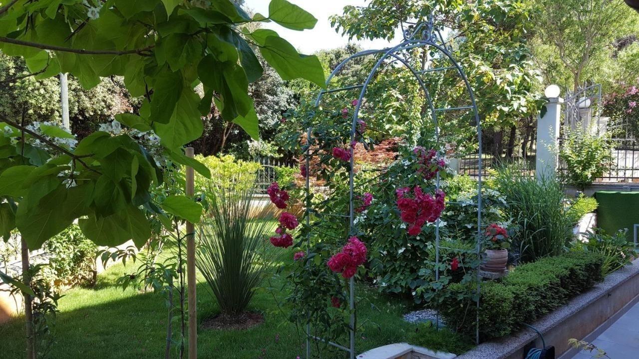Von Ihrer Terrasse aus können Sie den schönen, gepflegten Garten genießen.