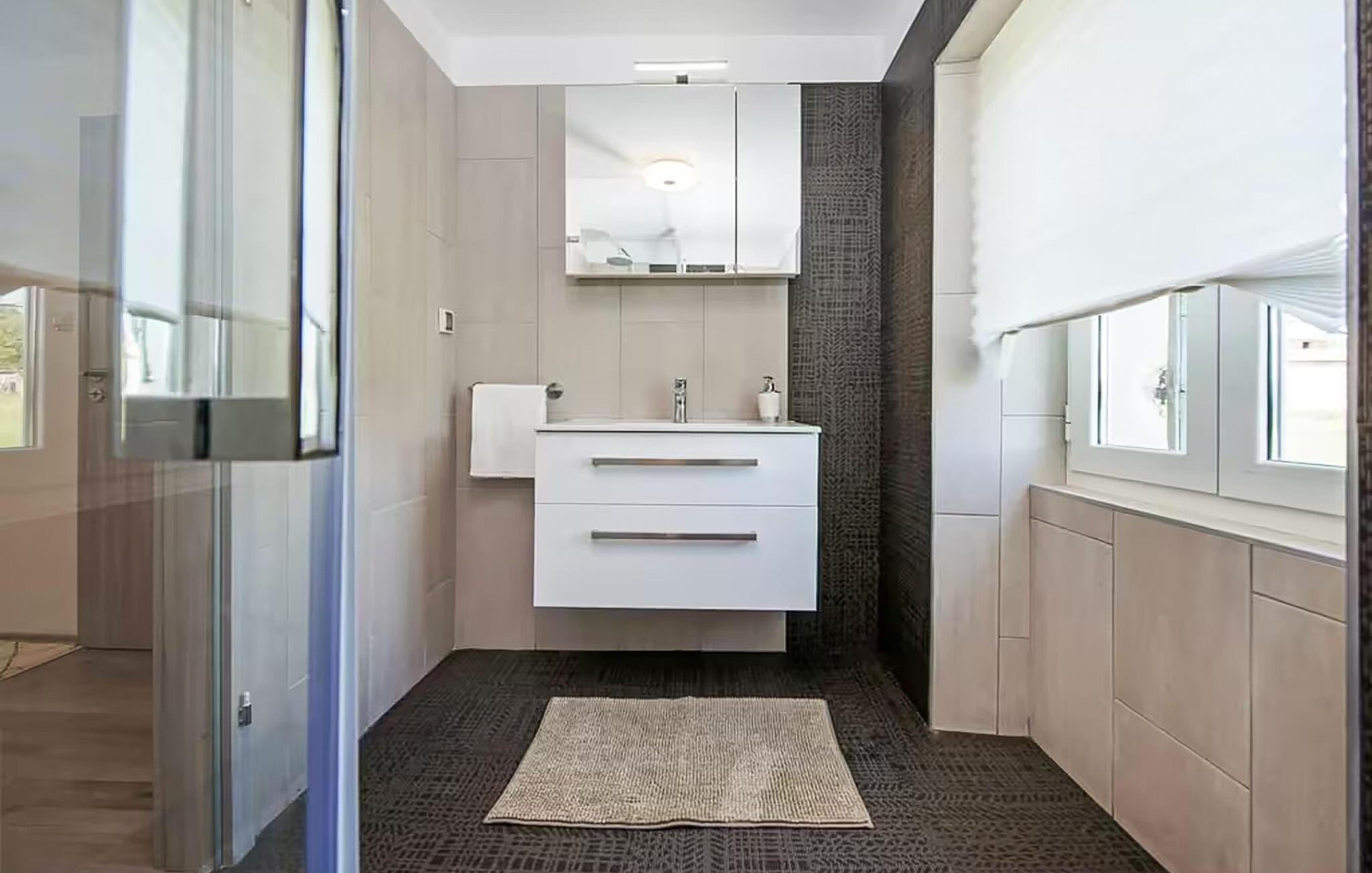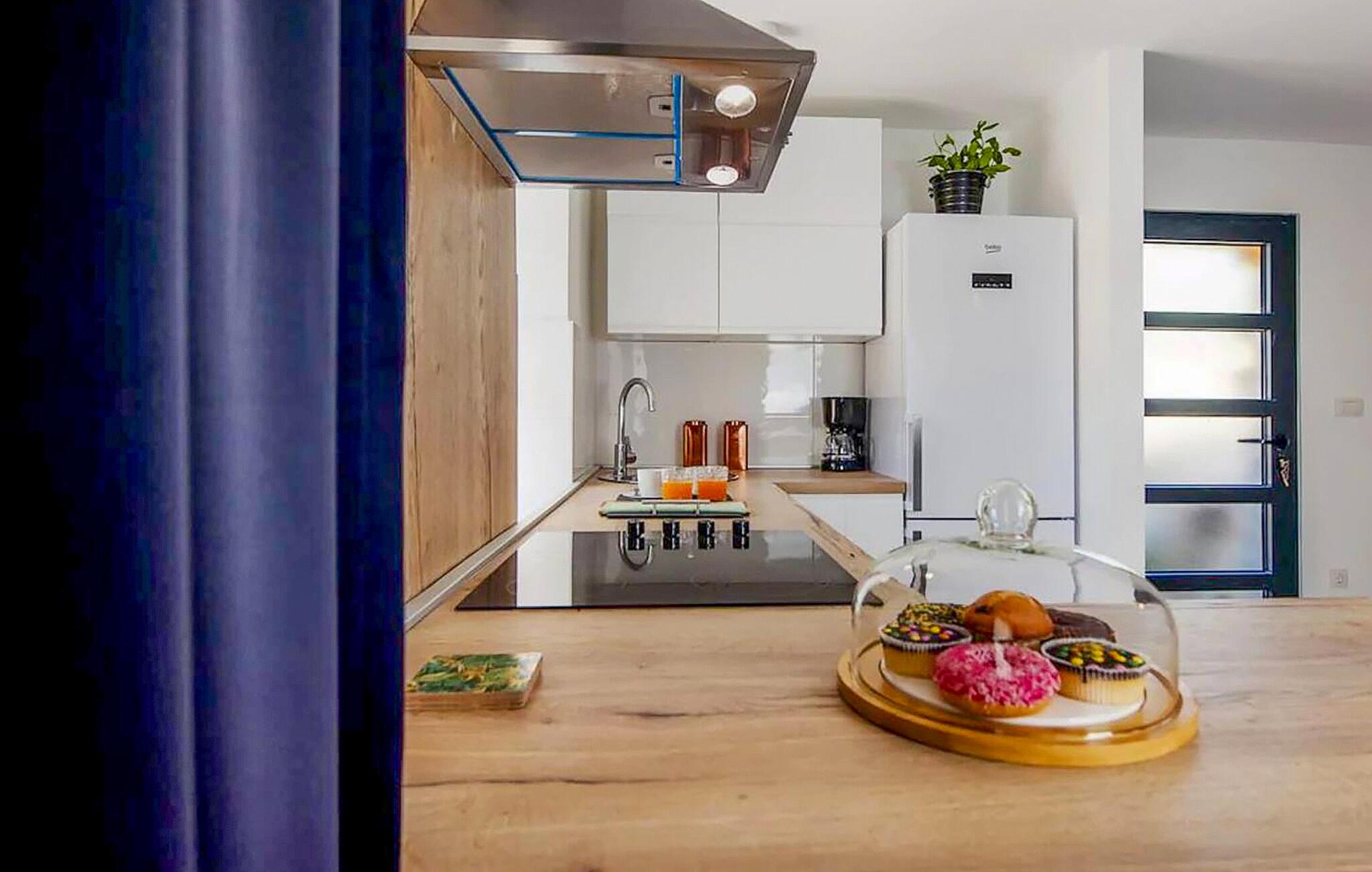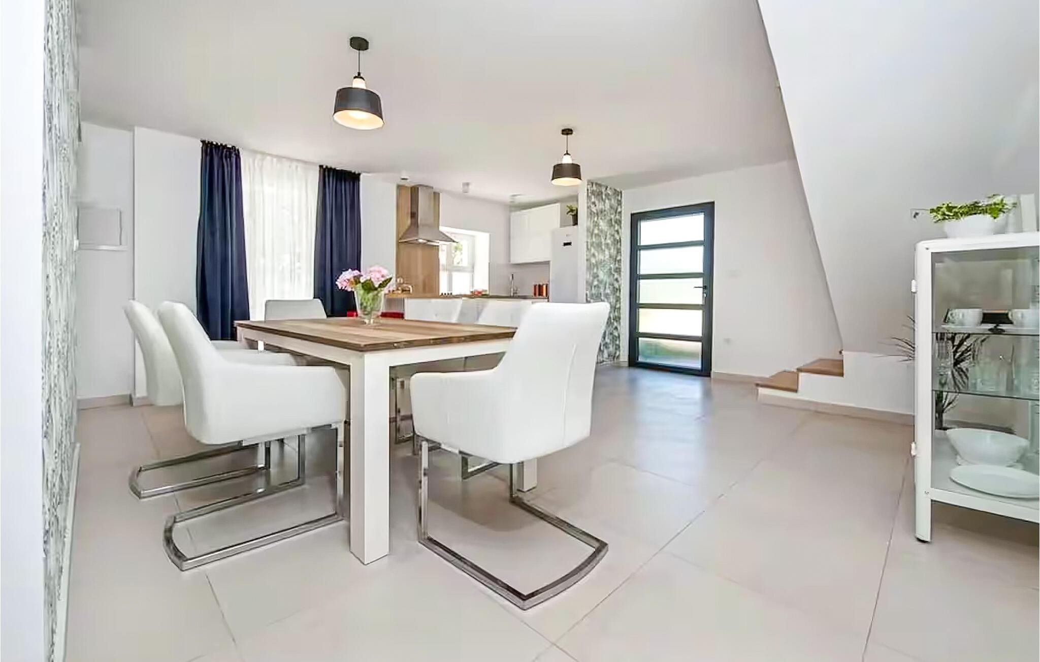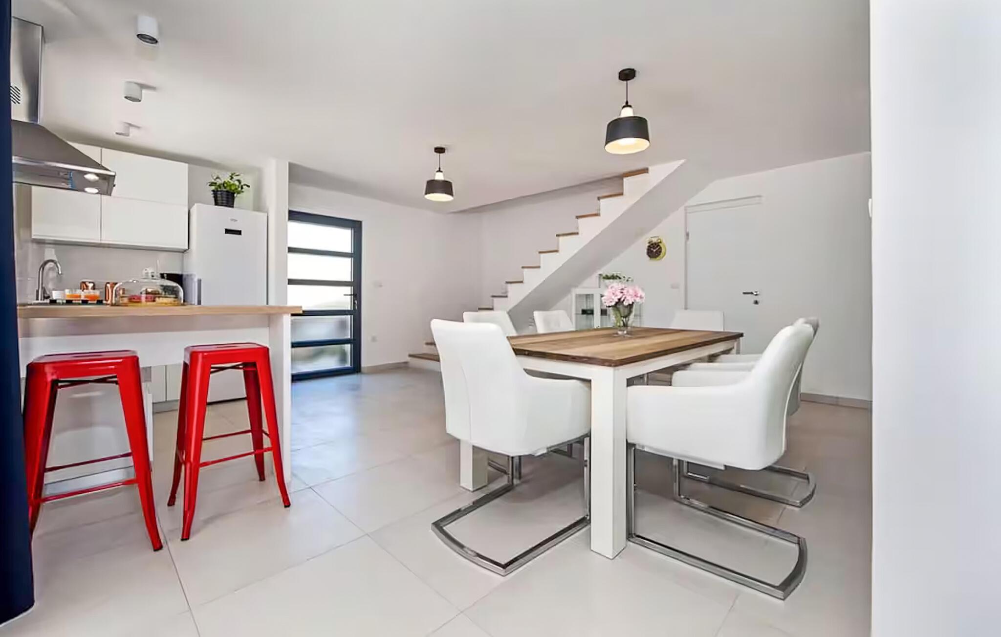 Dieses moderne Haus vereint Eleganz und Behaglichkeit auf sehr harmonische Weise. Dezente Farben, Elemente in Naturstein und Holz sowie eine bequeme Sofalandschaft sorgen für einen unvergesslichen Aufenthalt, bei dem Sie schnell neue Energie tanken können. Egal ob Sie Ihre Lieblingsserie streamen oder einen interessanten Podcast hören – hier bestimmen Sie den Rhythmus Ihres Tages.
