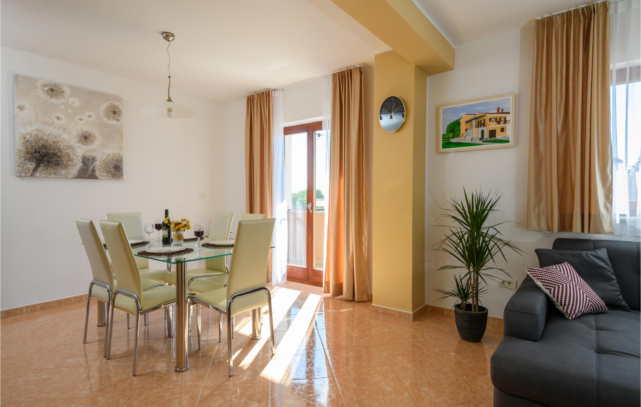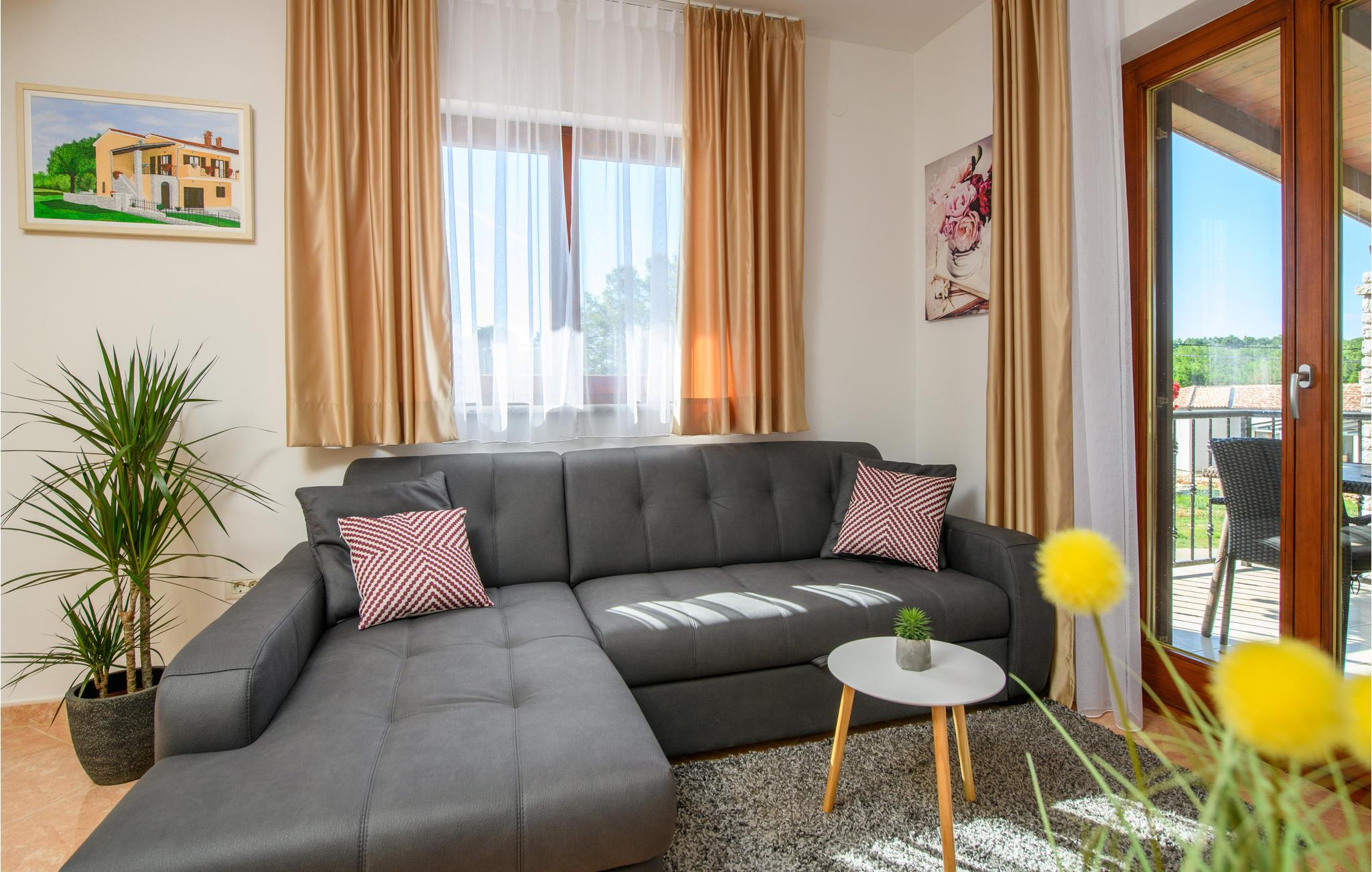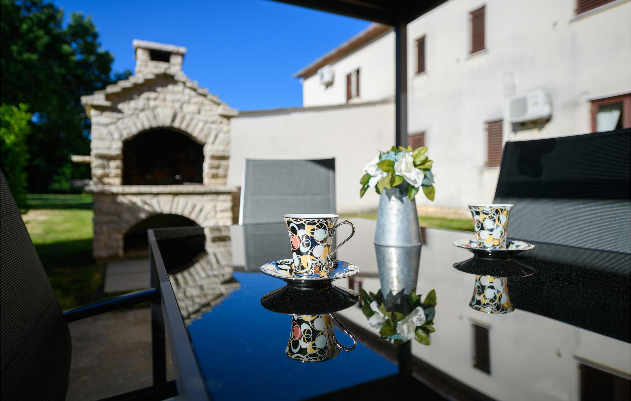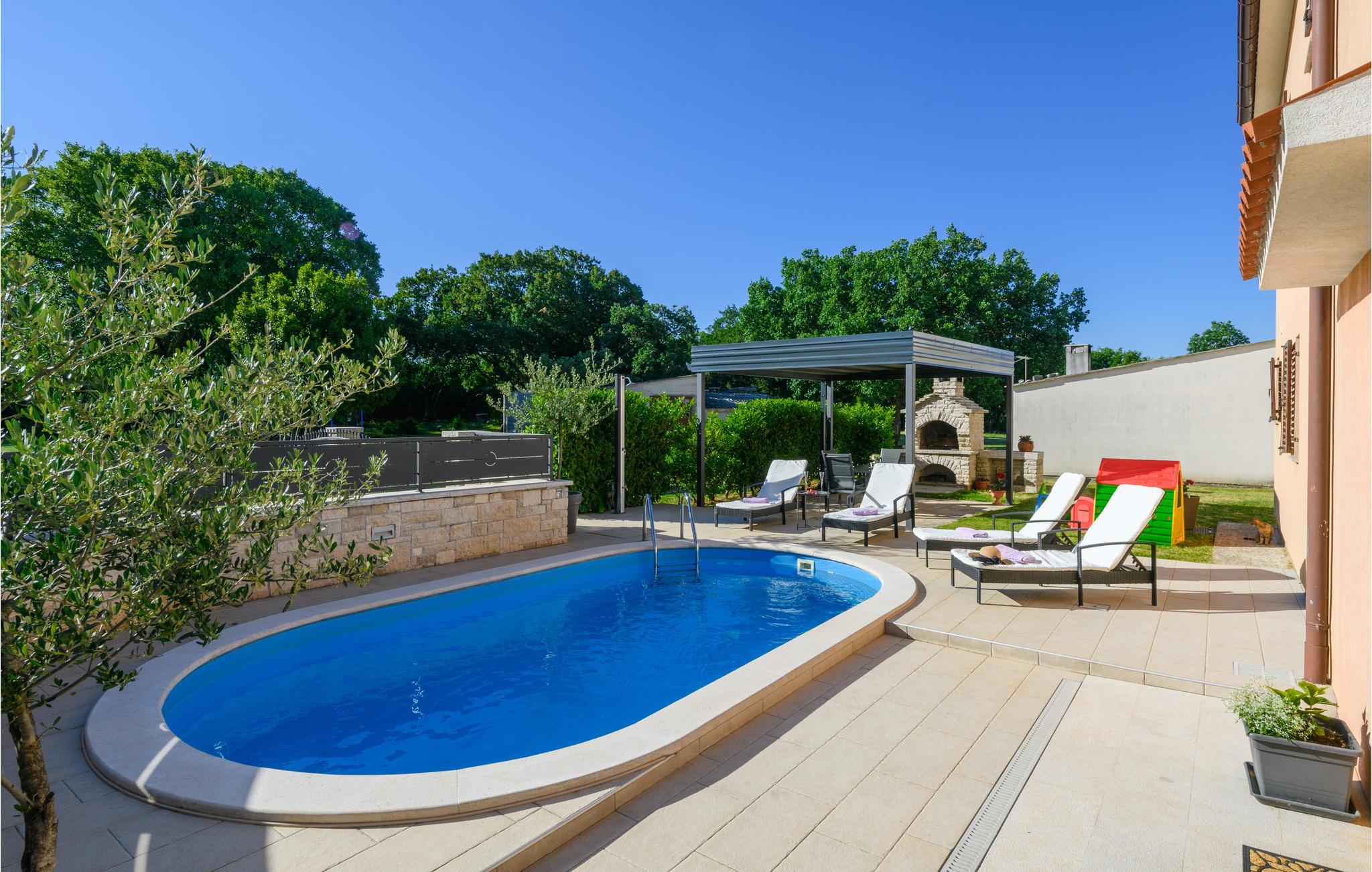 Dieses komplett eingerichtete Ferienhaus mit Pool liegt in einem kleinen Ort nahe Barban und bietet Ihnen alles, was während eines Urlaubs notwendig ist. Erfrischen Sie sich am Nachmittag im zur Verfügung stehenden Pool und entspannen Sie am Abend auf der Terrasse, von der sich ein herrlicher Ausblick auf die ländliche Natur der Umgebung bietet. Aktivurlauber werden Freude an den zur Verfügung stehenden Sportmöglichkeiten finden und ihr Können in Badminton, Fußball und Volleyball unter Beweis stellen. Erkunden Sie die Gegend mit dem Fahrrad und atmen Sie die frische Luft dieser Region ein. Die Etagen sind durch Außentrepppen miteinander verbunden.
