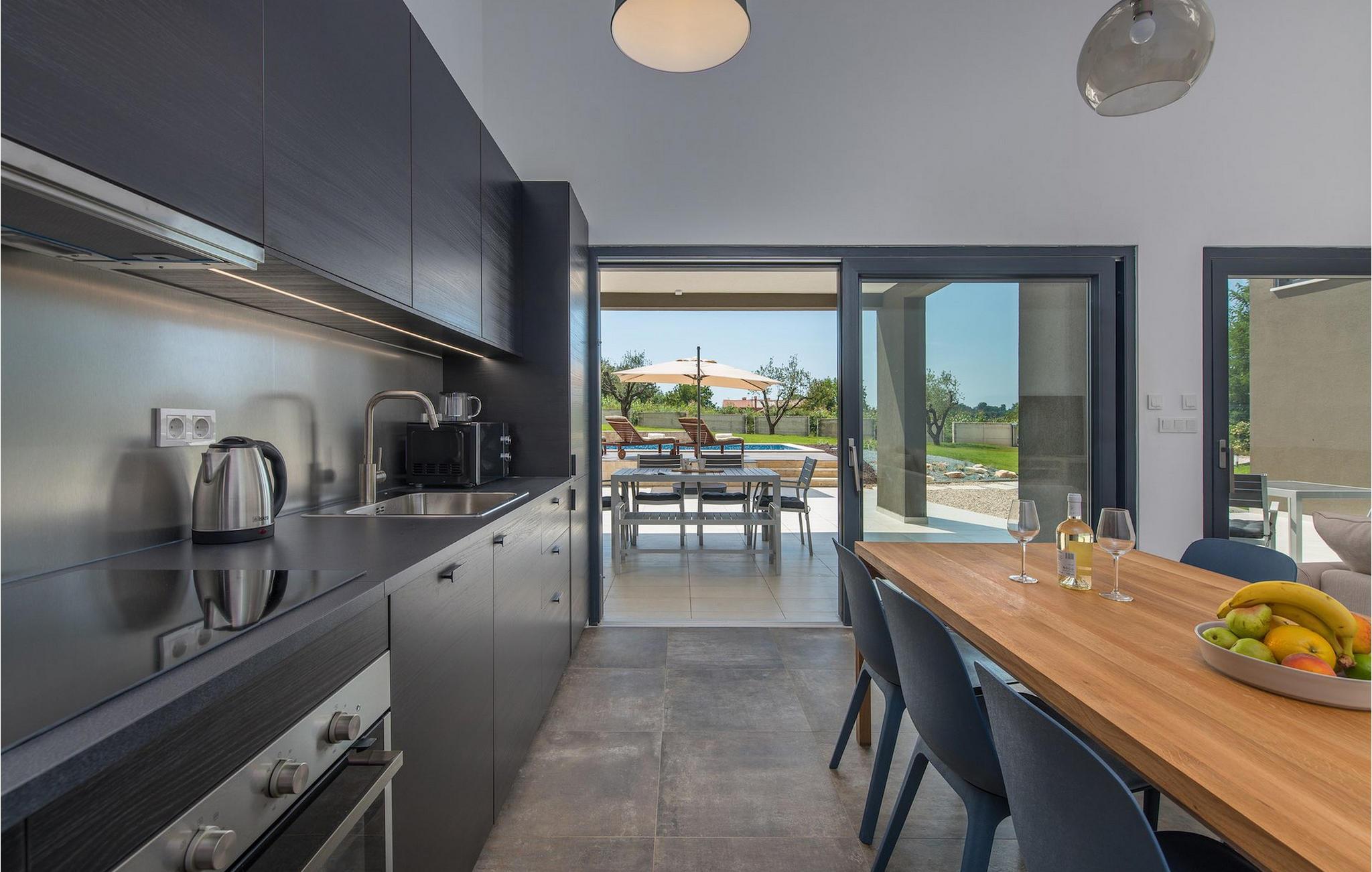 Wenn die Dunkelheit hereinbricht und die Lichter angehen, erhält Ihre Villa ein völlig neues Gewand: magisch und bezaubernd. Sie bereiten ein köstliches Barbecue auf der Terrasse zu, während die Grillen singen und Sie nichts ablenkt, weil Sie nur von Ihren Liebsten umgeben sind. An einem solchen Ort aufwachen und wissen, dass dies Realität ist: ein Luxus, den Ihnen die Villa Terra endlos bietet.Die Villa Terra befindet sich in dem kleinen malerischen Dorf Draguzet in der Gemeinde Barban. Da es sich um den südlichen Teil von Zentralistrien handelt, haben Sie eine fantastische Lage, um alle Naturschönheiten des Inneren der Halbinsel zu erkunden, und gleichzeitig sind Sie nur 15 km vom ersten Kiesstrand der Küstenstadt Trget entfernt.