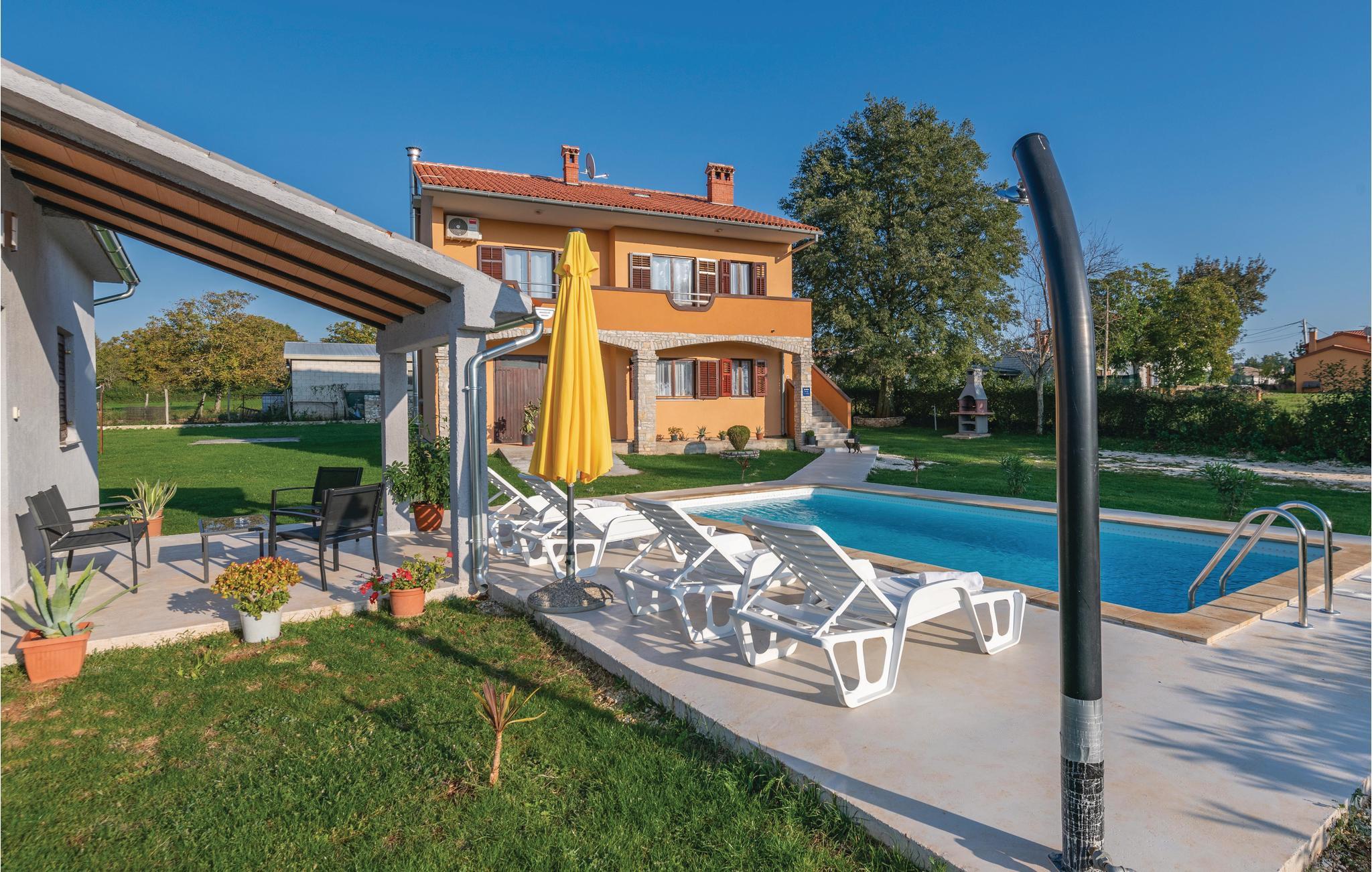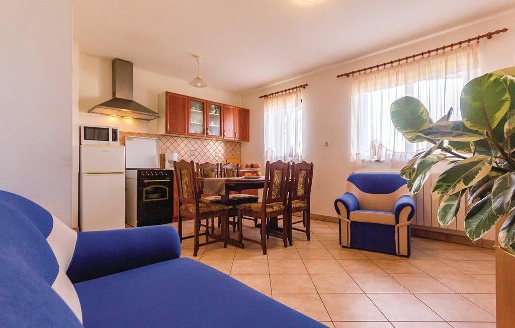 Im kleinen Dorf Grandici, in der Nähe von Barban, befindet sich dieses Ferienhaus mit großem Garten. Es ist ein komfortables und gemütliches Ferienhaus, das aus zwei, über Außentreppen zugängliche Etagen besteht. Im Erdgeschoss ist ein Apartment mit einem Schlafzimmer und im Obergeschoss ist eine Wohnung mit zwei Schlafzimmern. Auf dem gepflegten Grundstück können Ihre Kinder unbeschwert spielen, während Sie auf dem Grill leckere Mahlzeiten zubereiten. Die nächsten Strände befinden sich in der Bucht Blaz oder in den Orten Krnica und Rakalj. Machen Sie Reitausflüge von der Ranch im Ort Manjadvorci oder erleben Sie neue Abenteuer im Adrenalinpark Glavanis. In Barban können Sie Quads mieten und so die schöne Umgebung erkunden.