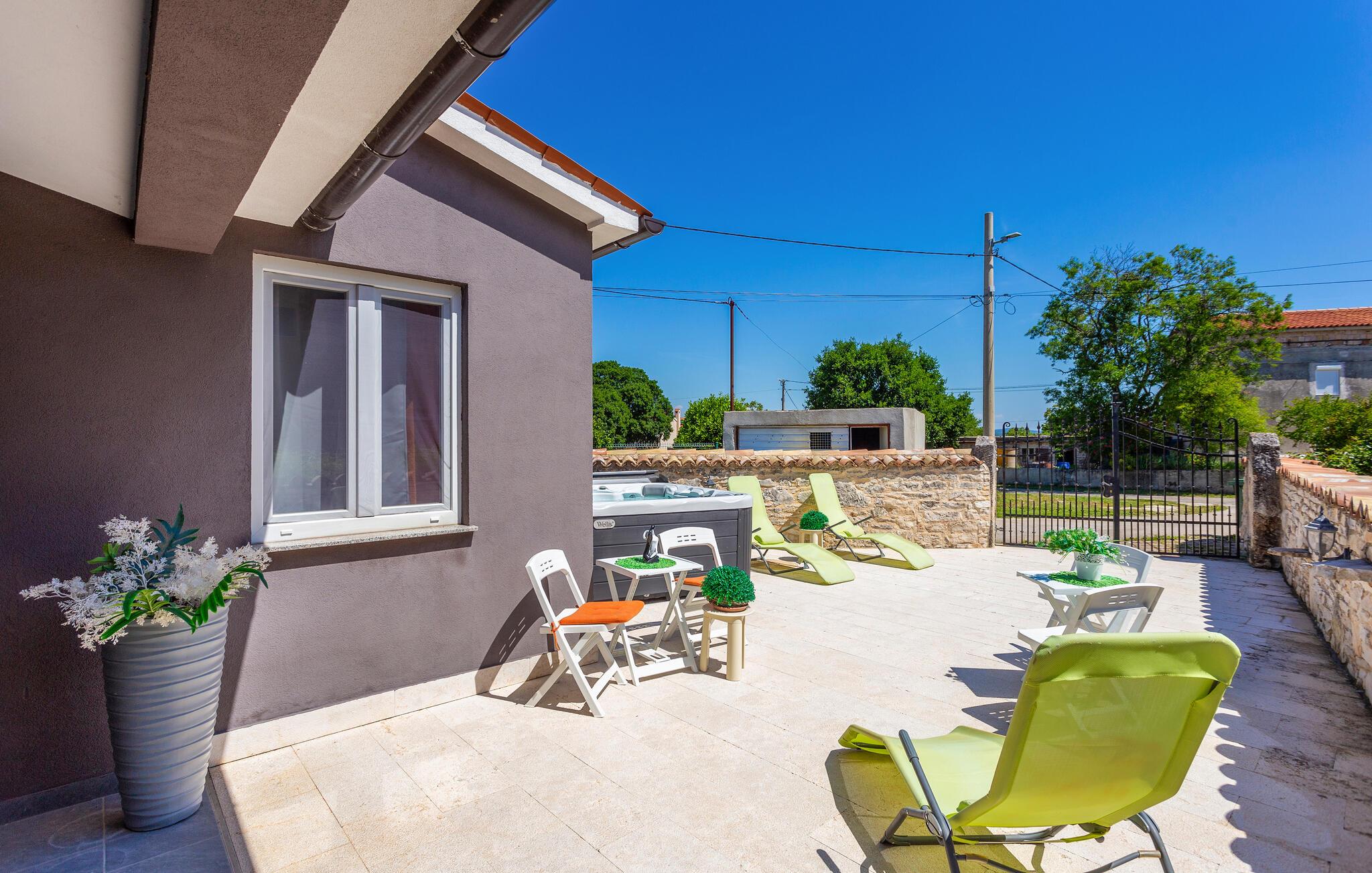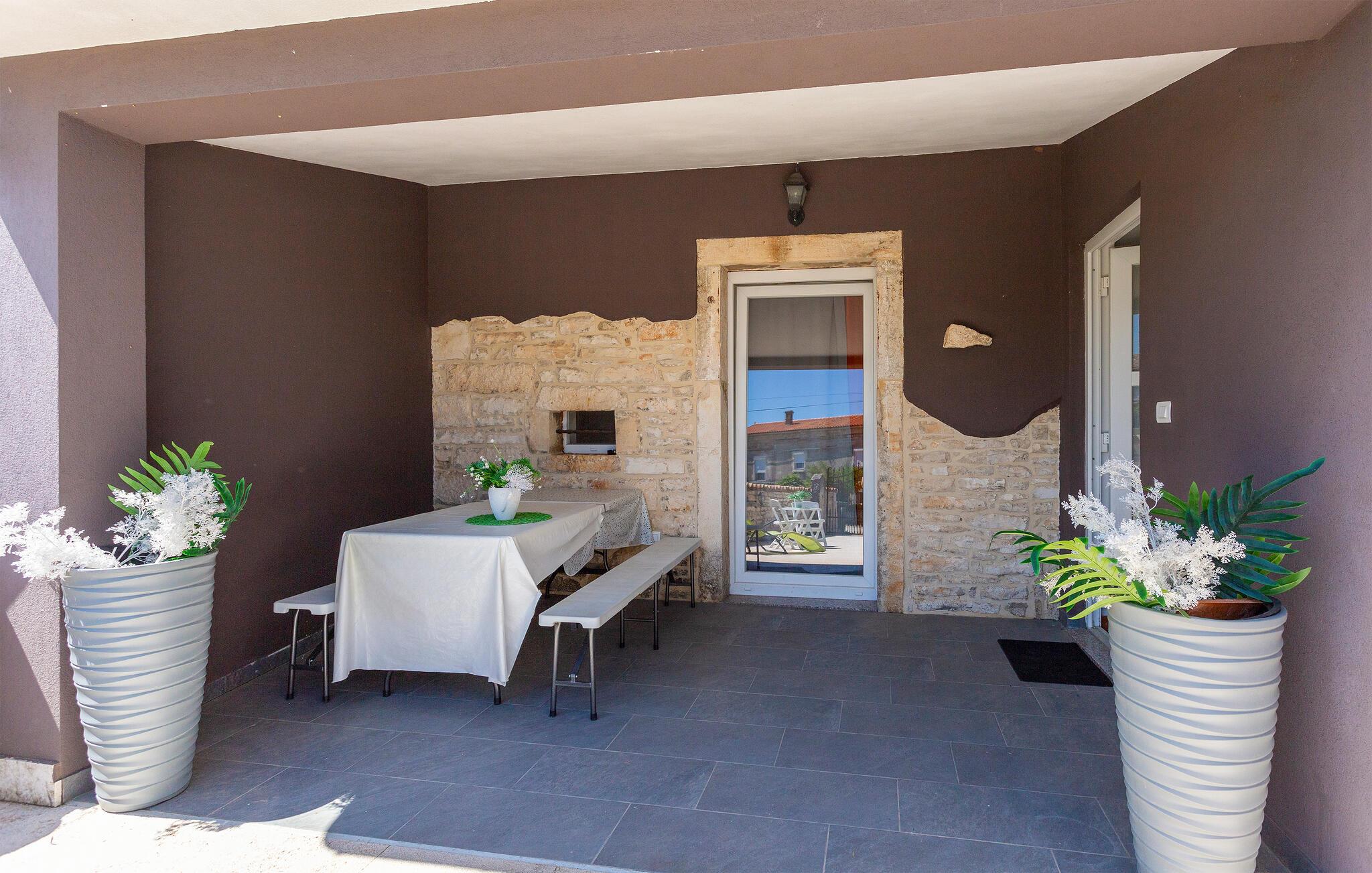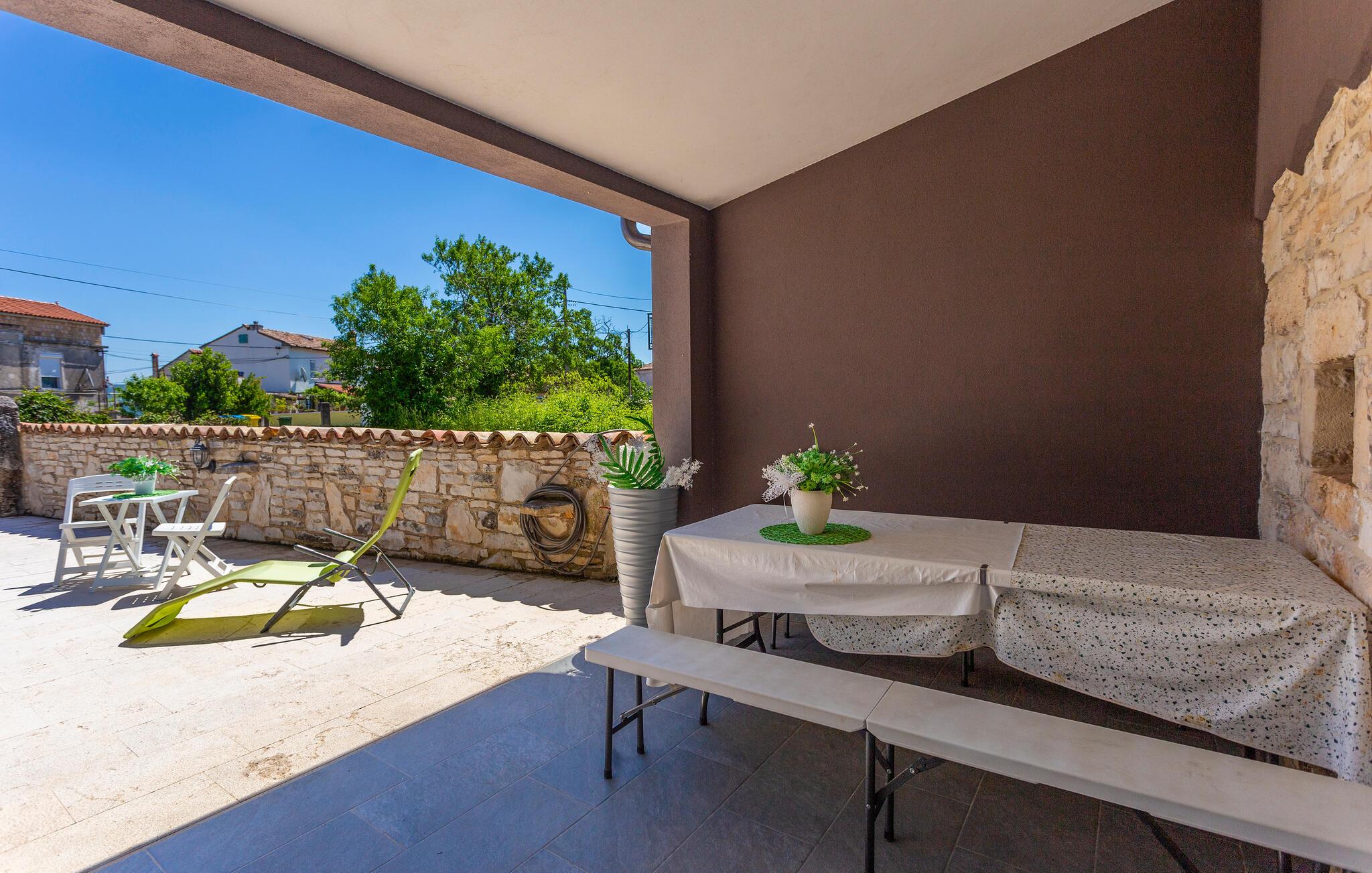 Auf dem eingezäunten Grundstück können Sie auf der teilweise überdachten Terrasse entspannen. Für Ihre Autos stehen hier 2 Parkplätze zur Verfügung. Nur eine kurze Autofahrt trennt Sie von der Küste. Besuchen Sie während Ihres Aufenthaltes auch die Stadt Pula, die ihren Besuchern zahlreiche Attraktionen bietet.