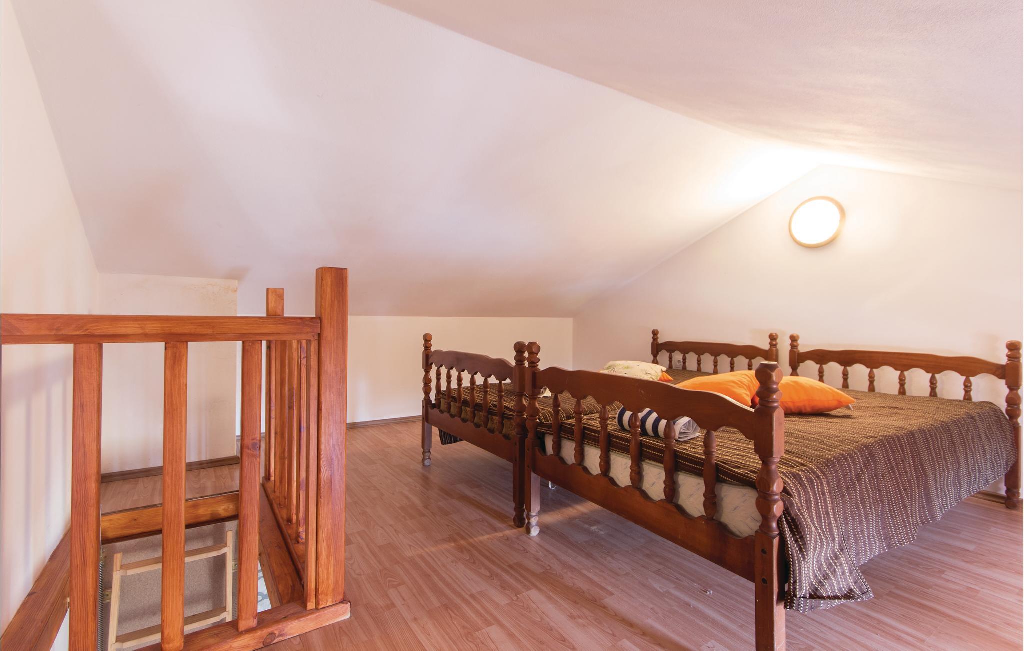 Das charmante Ferienhaus erstreckt sich über zwei Etagen. Die Wohn- und Schlafräume befinden sich im ersten Stock. Ein Schlafraum ist ein Durchgangszimmer mit Treppe zum Dachboden. Hier gibt es eine weitere Unterkunft, die ideal für zwei Personen geeignet ist. Bitte beachten Sie, dass die niedrigsten Dachschrägen nur eine Höhe von circa 70 cm haben.