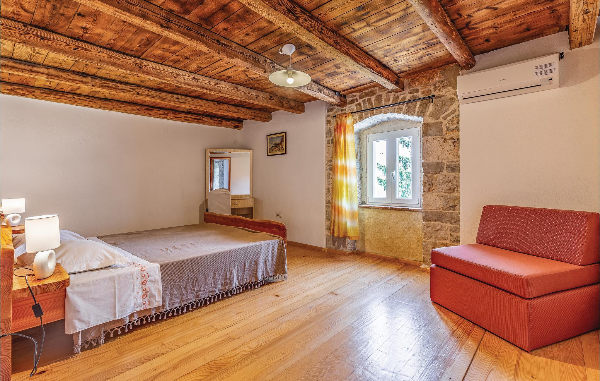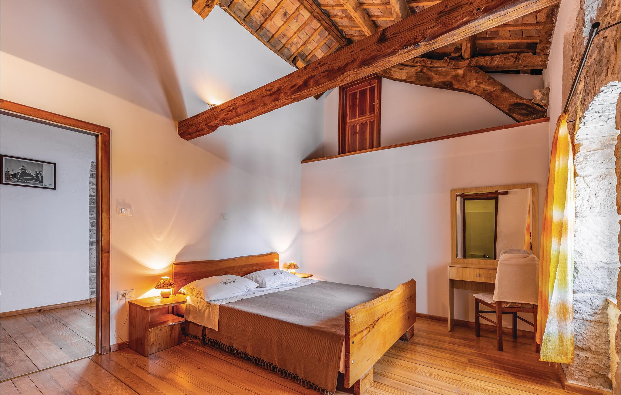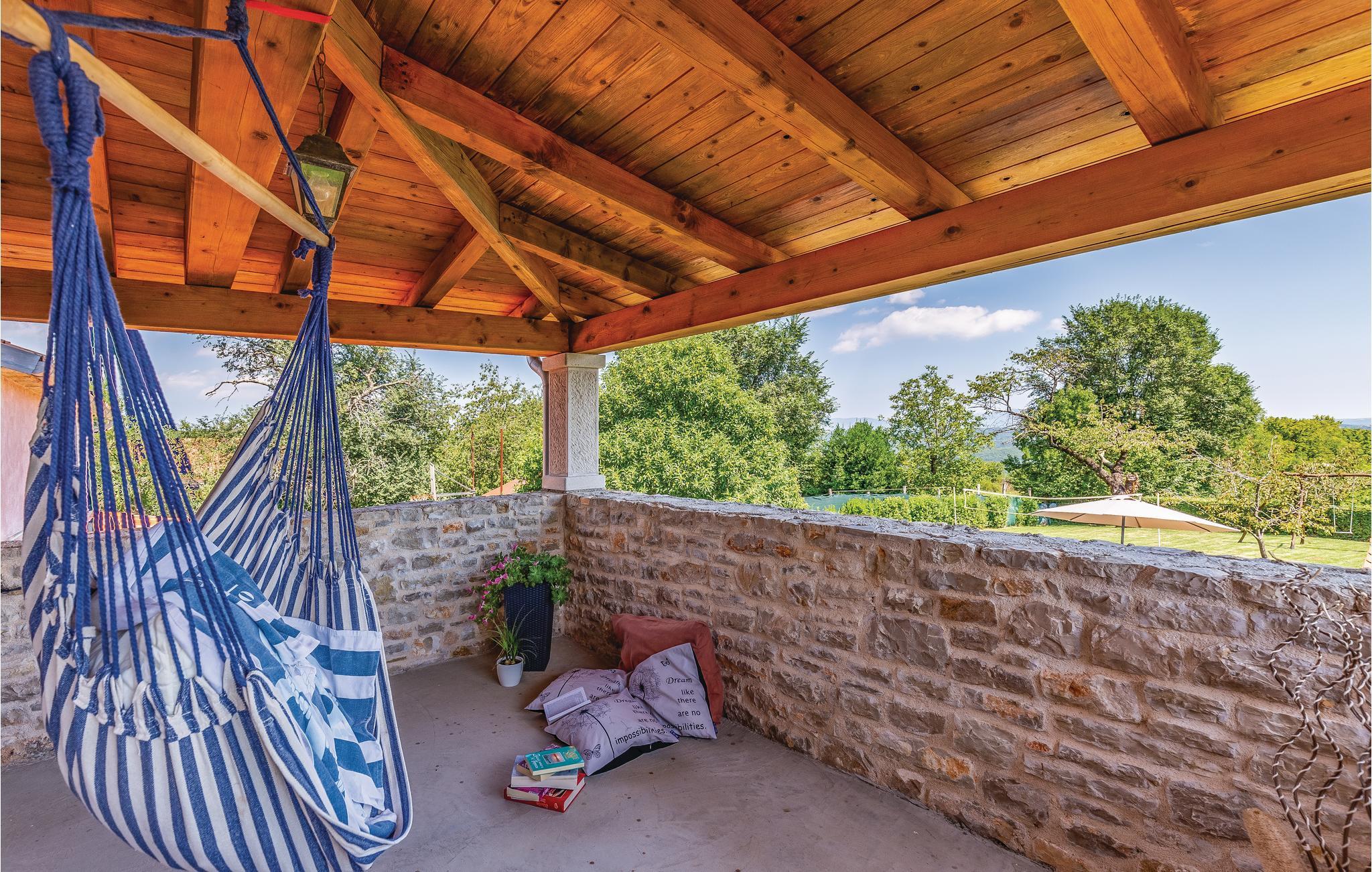 Dieses typisch istrianische Ferienhaus befindet sich in der Nähe der malerischen, mittelalterlichen Stadt Barban. Es ist im rustikalen Stil mit qualitativ hochwertigen Möbeln ausgestattet. Den Gästen stehen vier Schlafzimmer zur Verfügung, jedes mit einem eigenen Bad und einer Klimaanlage. Im Erdgeschoß befinden sich ein großzügiges, klimatisiertes Wohnzimmer mit Kamin, eine komplett ausgestattete Küche mit Essbereich und auf der überdachten Terrasse steht Ihnen ein Grill zur Verfügung auf dem Sie leckere Gerichte zubereiten können. Entspannen sie sich im großen Swimmingpool im Garten und lassen Sie die ländliche Umgebung auf sich wirken. Ihnen steht jederzeit eine drahtlose Internetverbindung zur Verfügung. Auf dem komplett umzäunten Grundstück können Sie Ihren Urlaub genießen und Kinder können hier ausgelassen spielen. In der Nähe befindet sich eine kleine Einkaufsmöglichkeit.