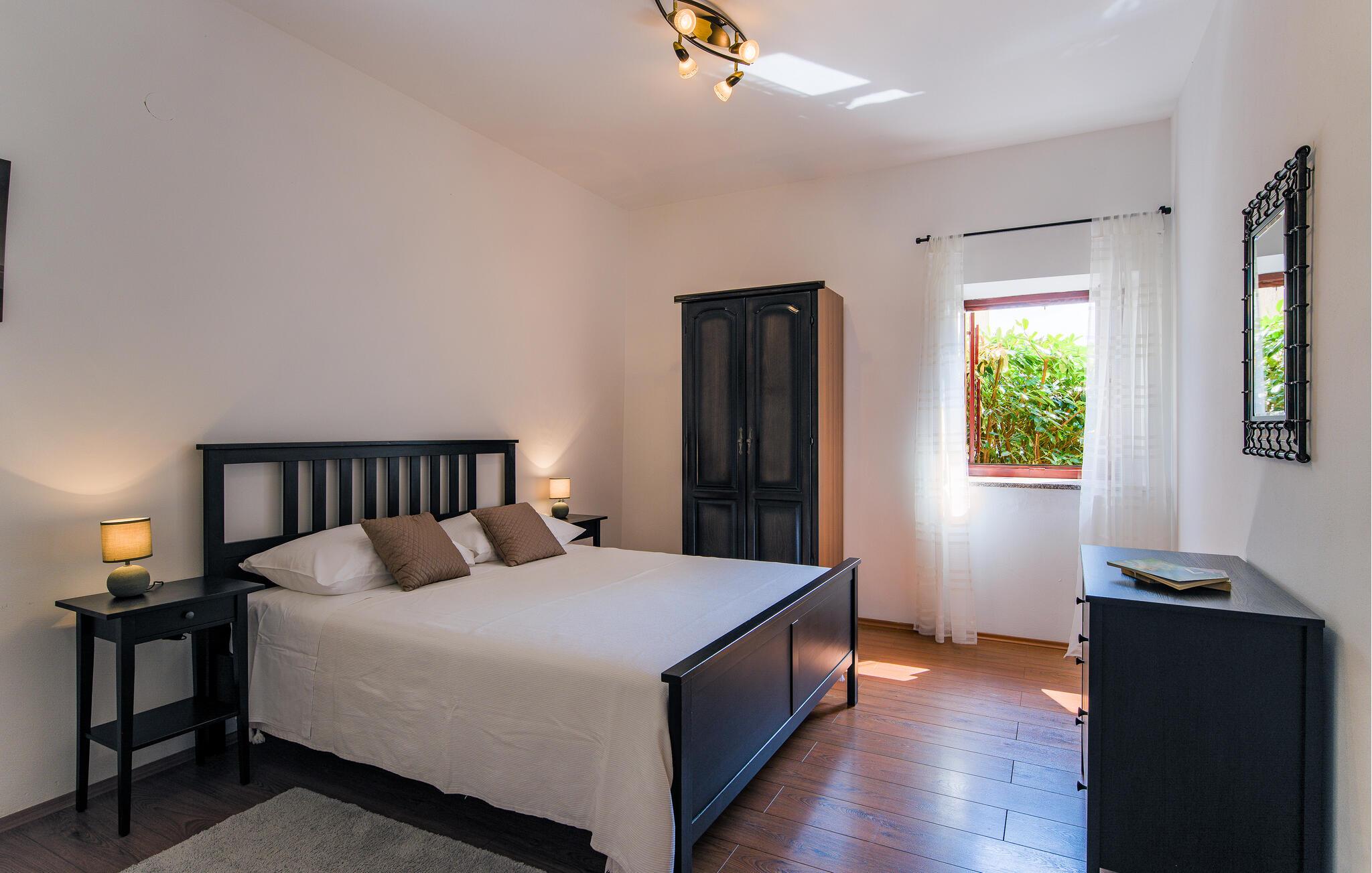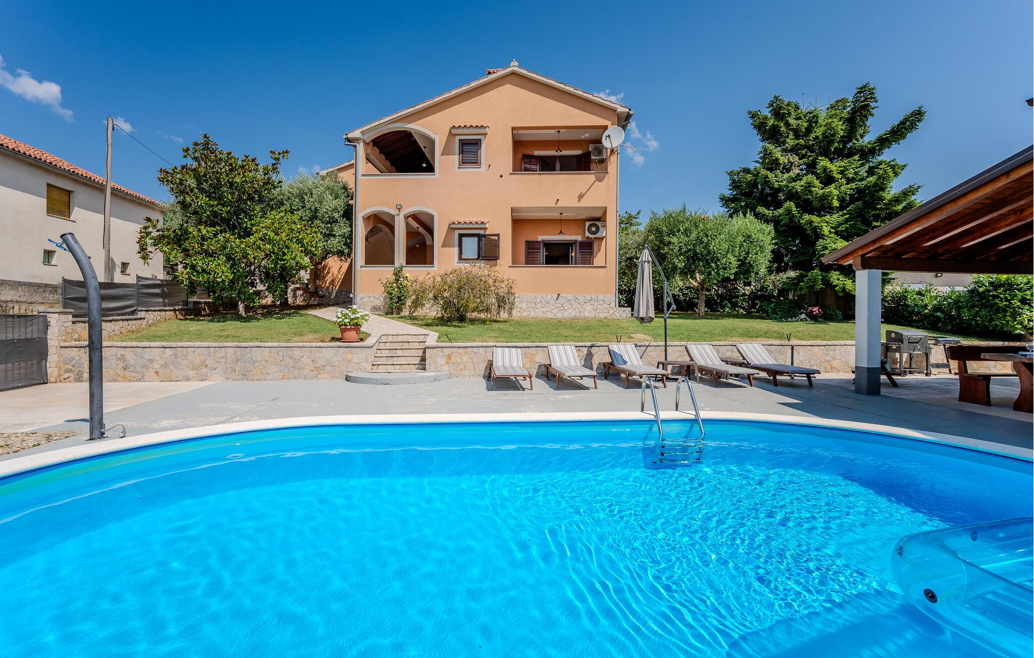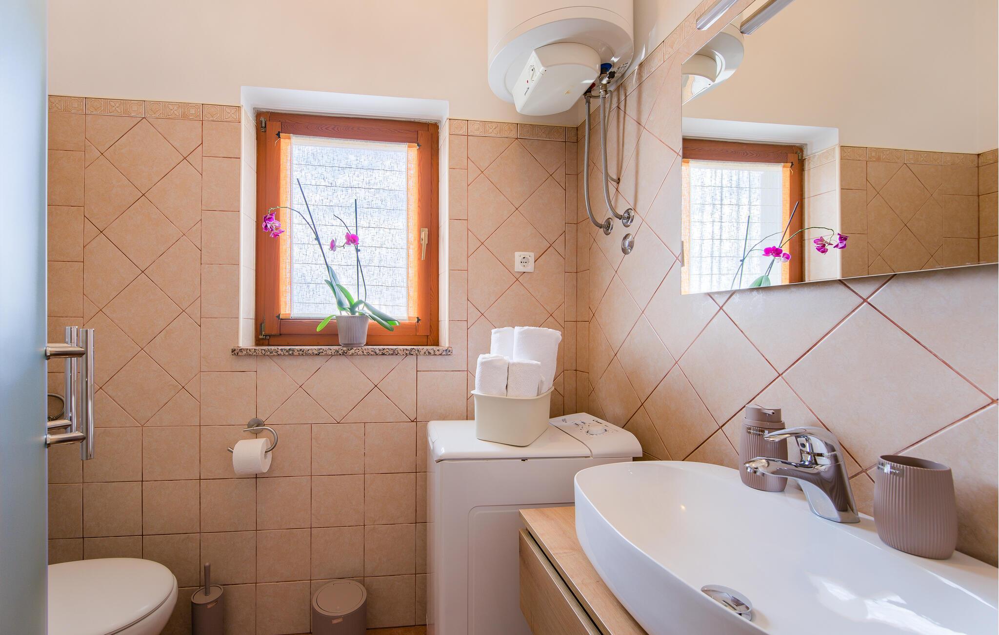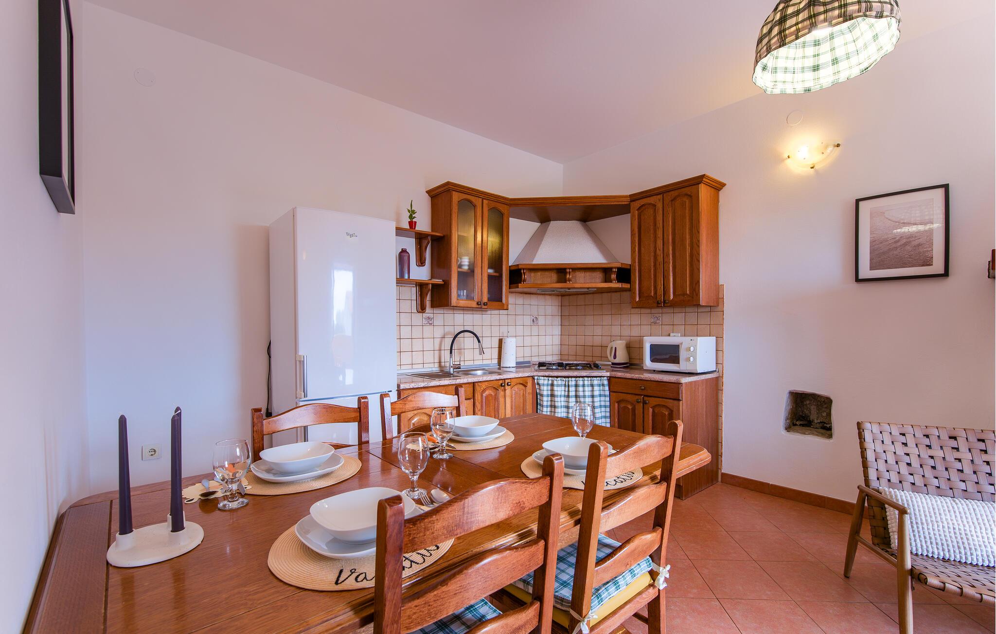 Dieses charmante und rustikal eingerichtete Ferienhaus mit Pool befindet sich am Rande eines kleinen idyllischen Dorfes. Das Doppelhaus besteht aus zwei Wohnungen mit separaten Eingängen, die mit Außentreppen verbunden sind. Der Pool bietet Ihnen die nötige Erfrischung an heißen Sommertagen und auf der Terrasse entspannen Sie sich mit einem guten Buch. Verwöhnen Sie Ihre Liebsten mit Gerichten vom Grill und lassen den Tag schön ausklingen. Dieses Haus bietet Ihnen einen idealen Ausgangspunkt für verschiedene Ausflüge: Besuchen Sie das kleine Fischerdorf Trget mit hervorragenden Fischrestaurants, die historische Altstadt von Labin auf dem Hügel und die herrlichen Kieselstrände im Touristenort Rabac. Aktiven Urlaub erleben Sie im Adrenalinpark Glavani, in der Pferderanch in Manjadvorci oder im Quad Club in Draguzeti. Sie sollten außerdem nicht versäumen, die antike Stadt Pula, den Nationalpark auf der Insel Brioni, sowie viele weitere malerische Destinationen in Istrien zu besuchen. Entdecken Sie die schöne Natur und die schmackhafte Küche des Landes.