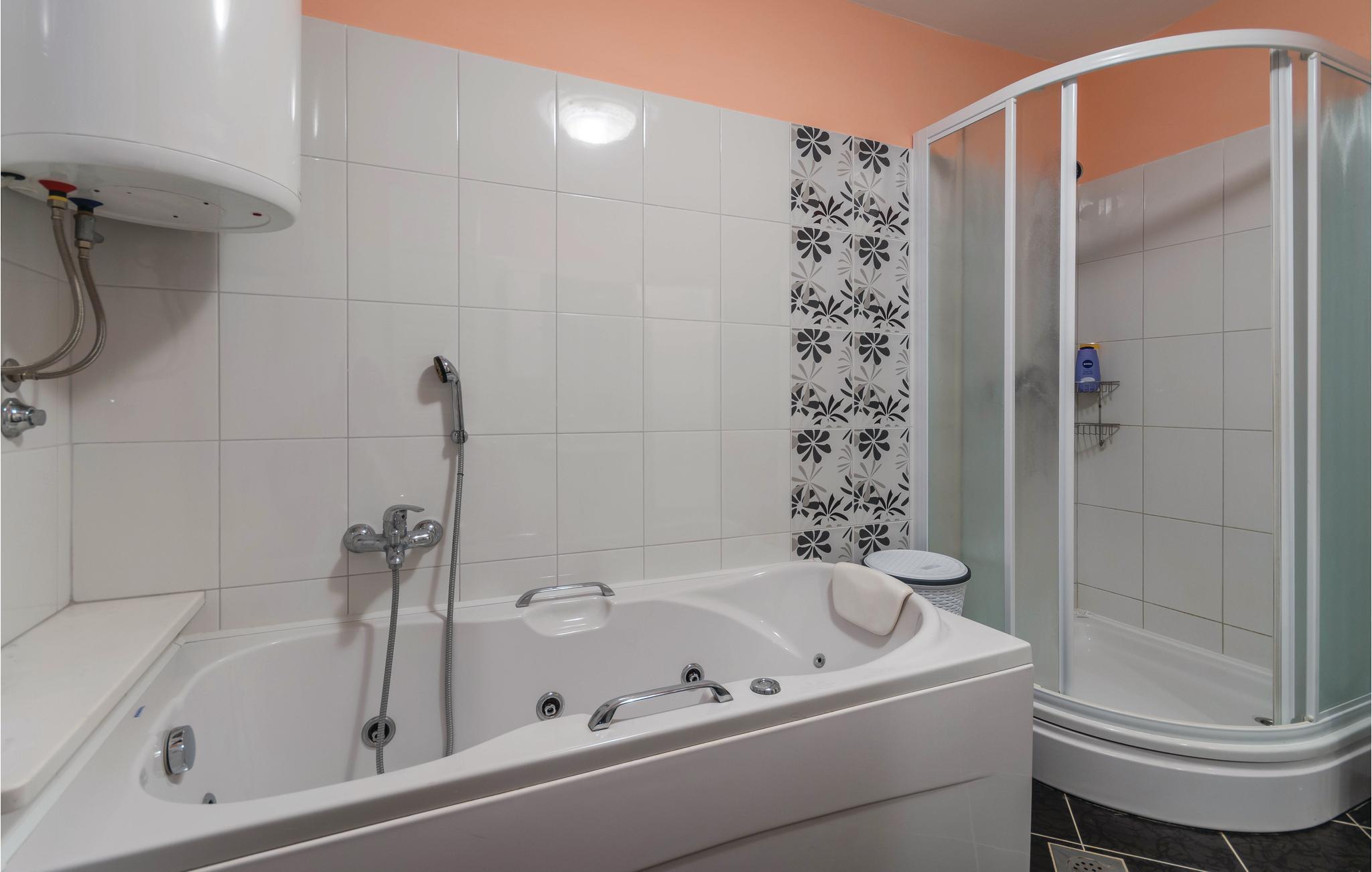 Badezimmer (nr. 1) - WC. Warmes und kaltes Wasser. Dusche und Badewanne